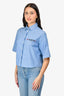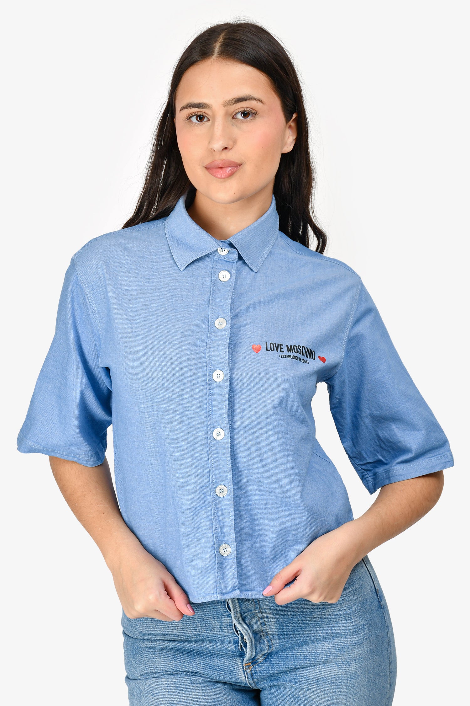 Love Moschino Blue Denim Logo Embroidered 3/4 Sleeve Button Up Shirt Size 6 US