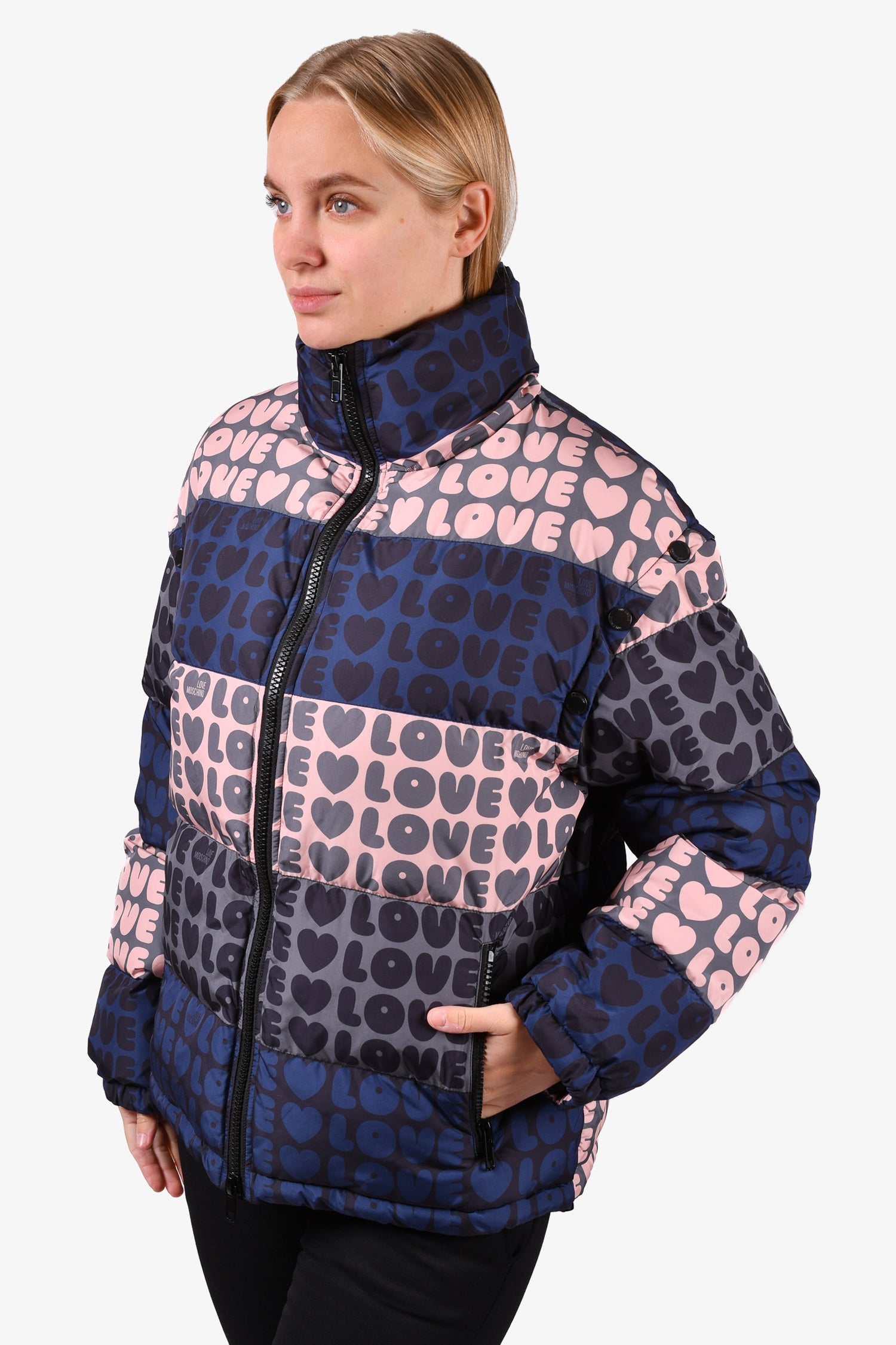 Love Moschino Purple/Pink 'Love' Printed Puffer Jacket Size 6