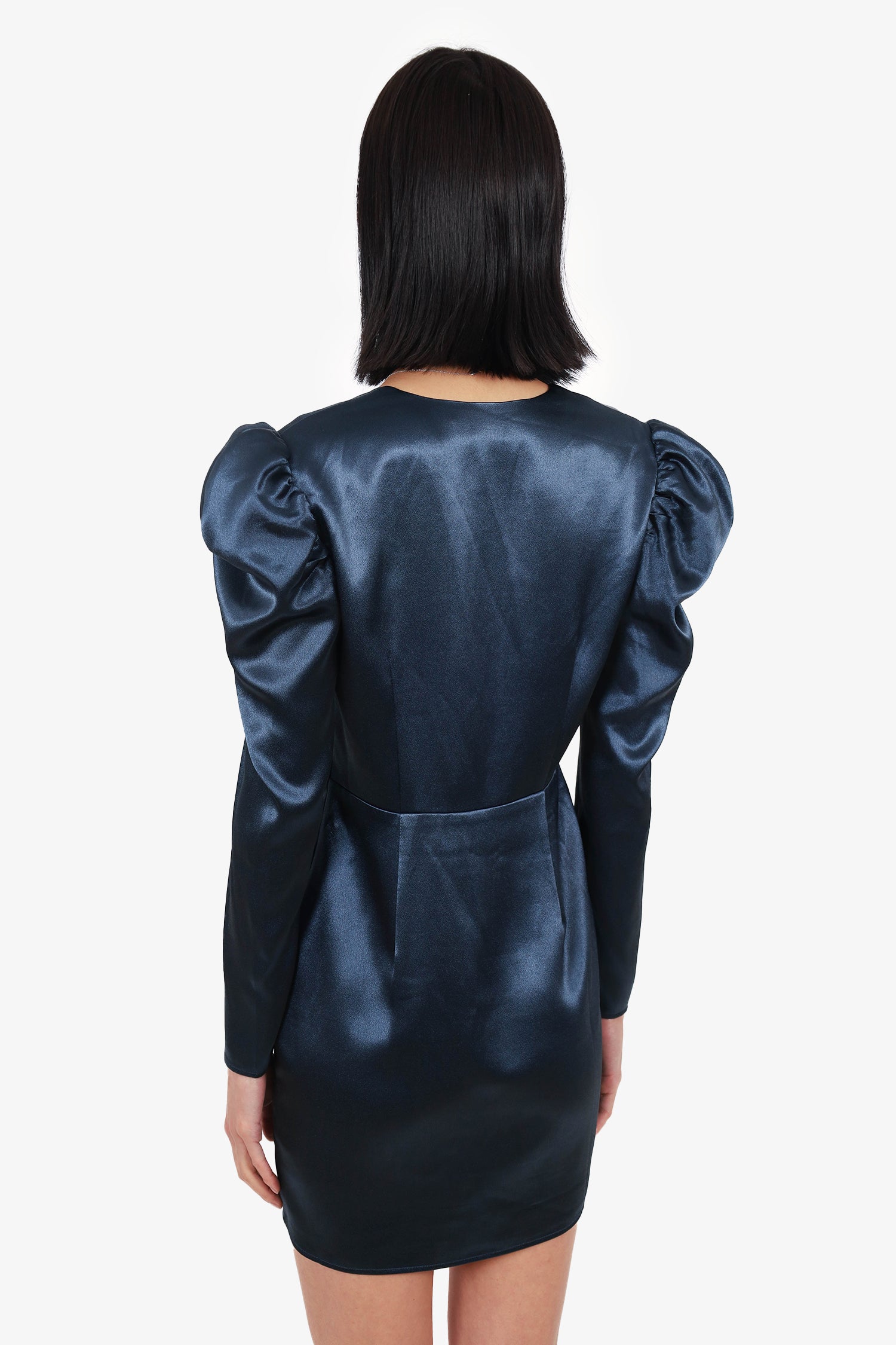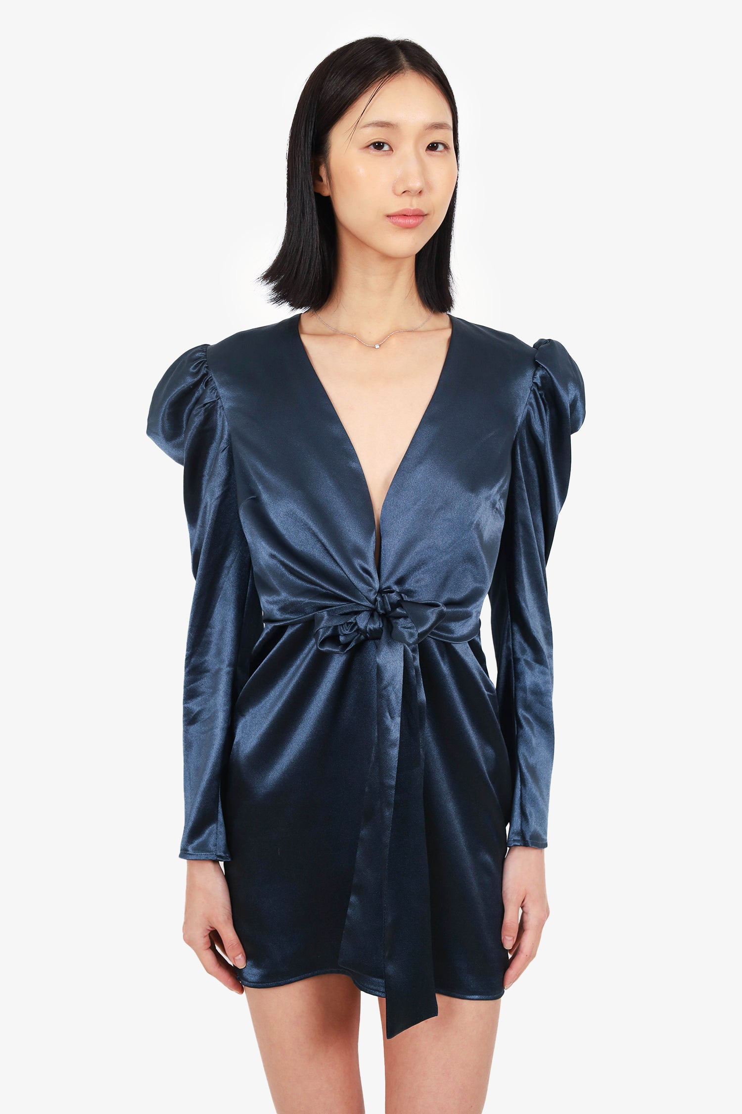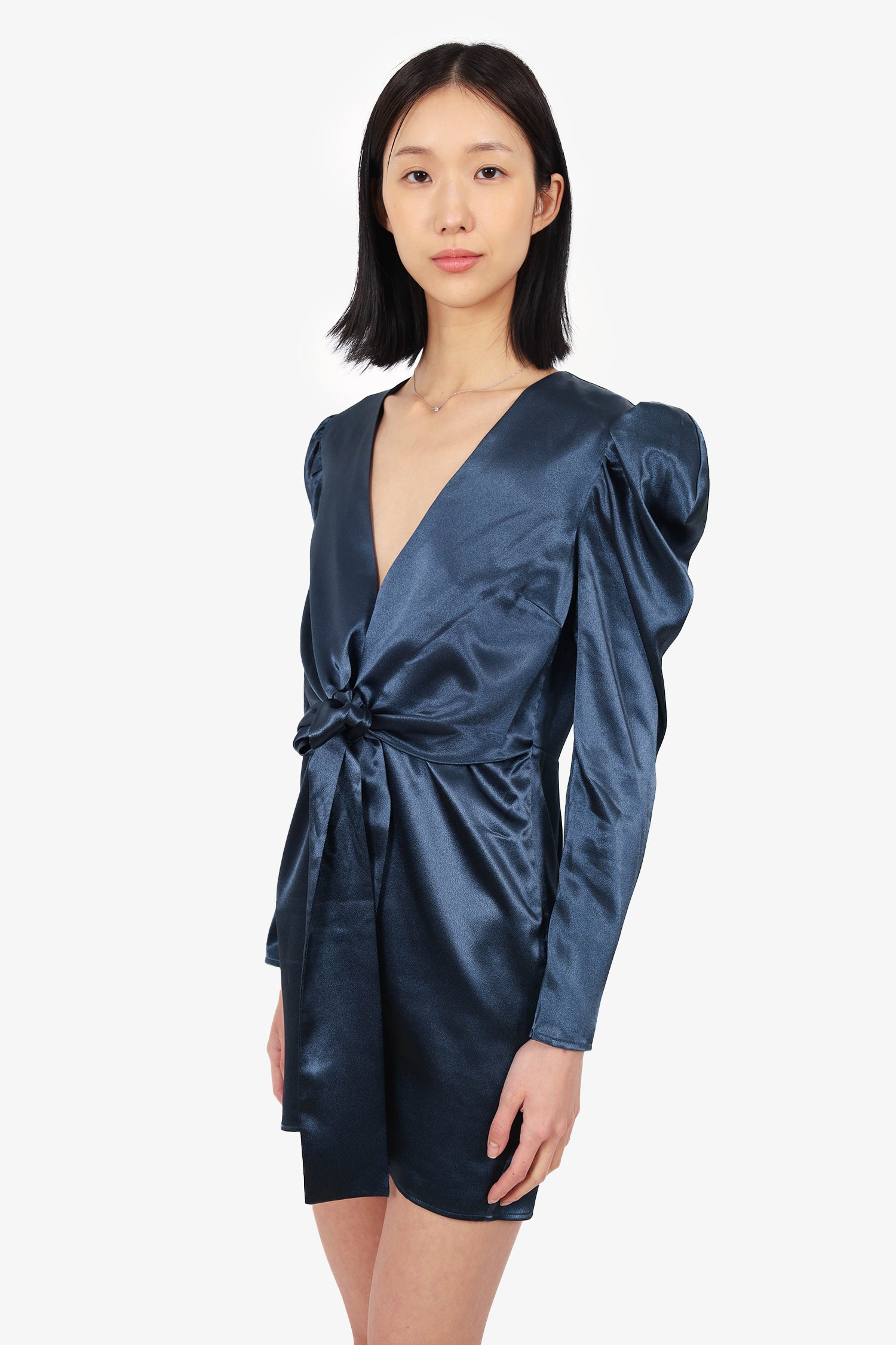 Lovers + Friends Blue V-Neck Bow Detail Long-Sleeve Dress Size S