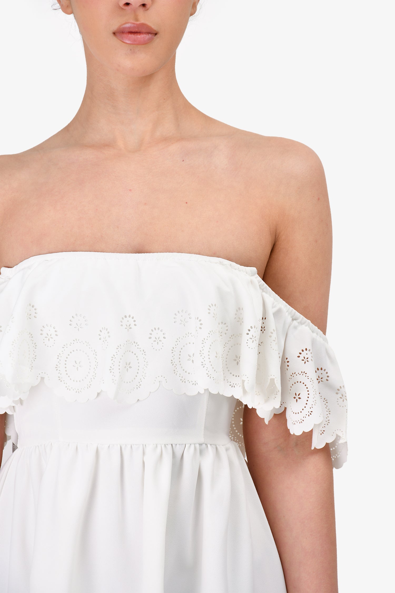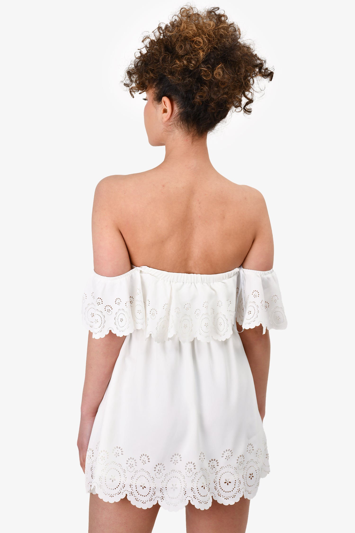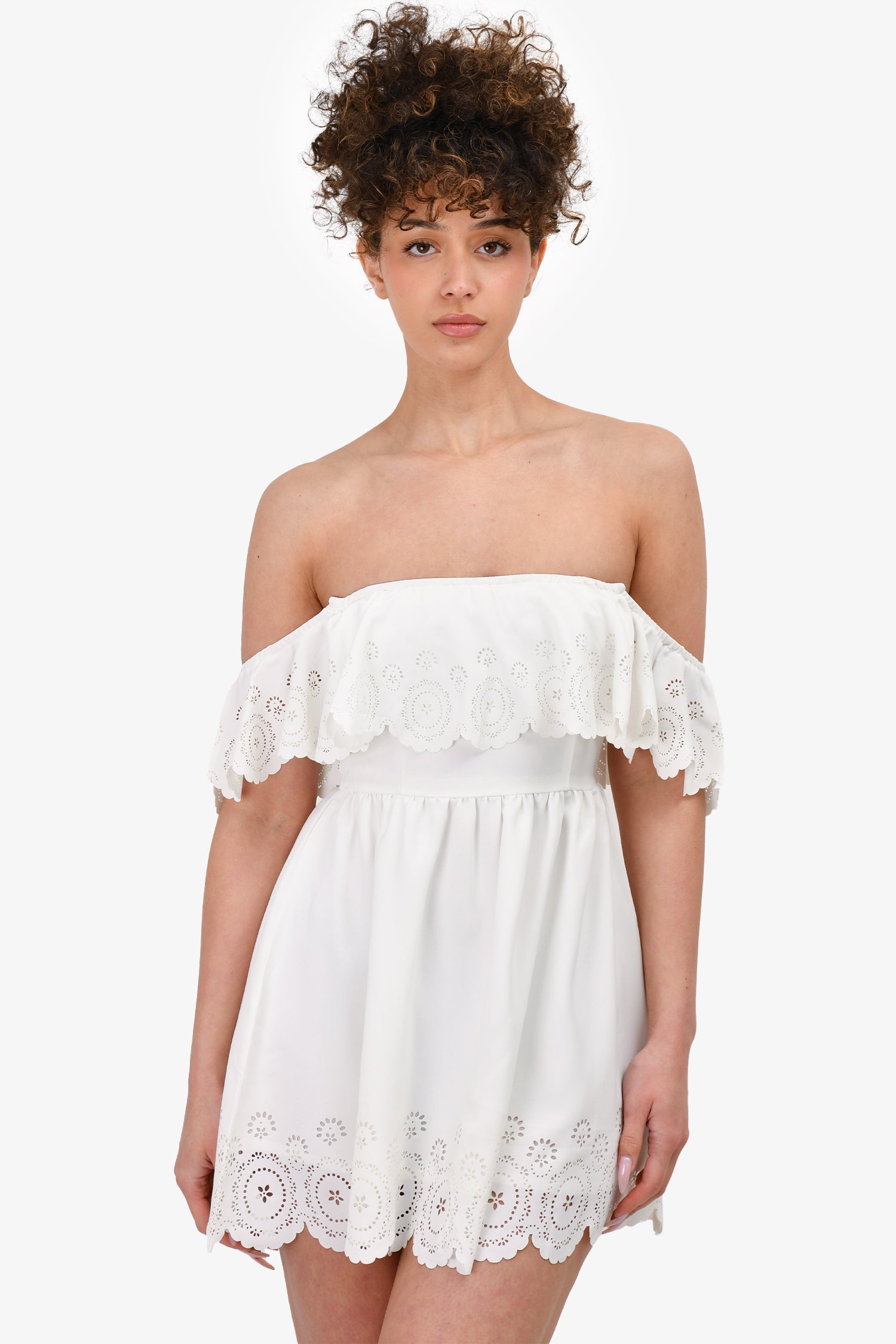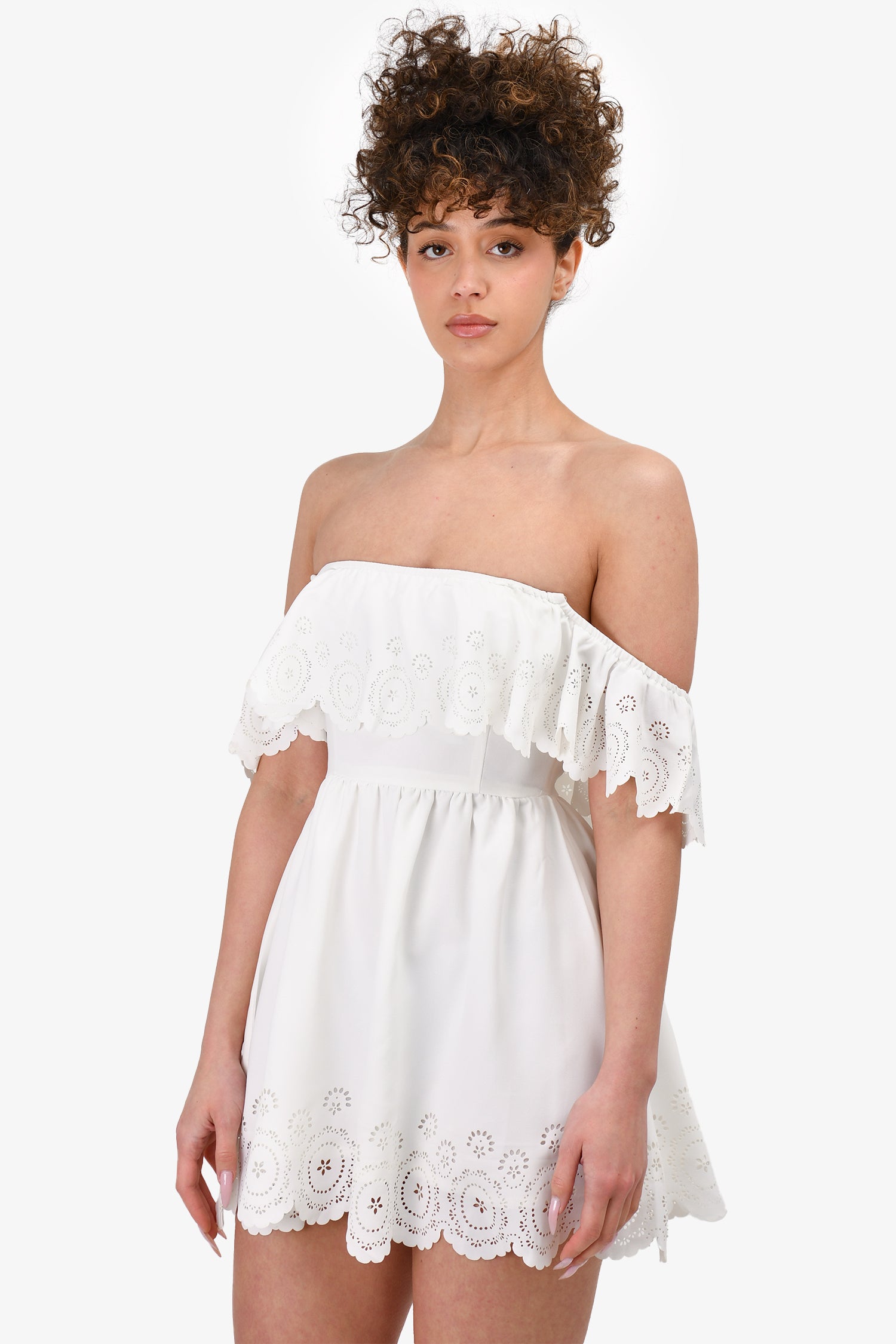 Lovers + Friends White Eyelet Detail Off The Shoulder Mini Dress Size XS