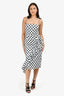 Lovers + Friends White/Navy Polka Dot Sleeveless Ruffled Midi Dress Size S