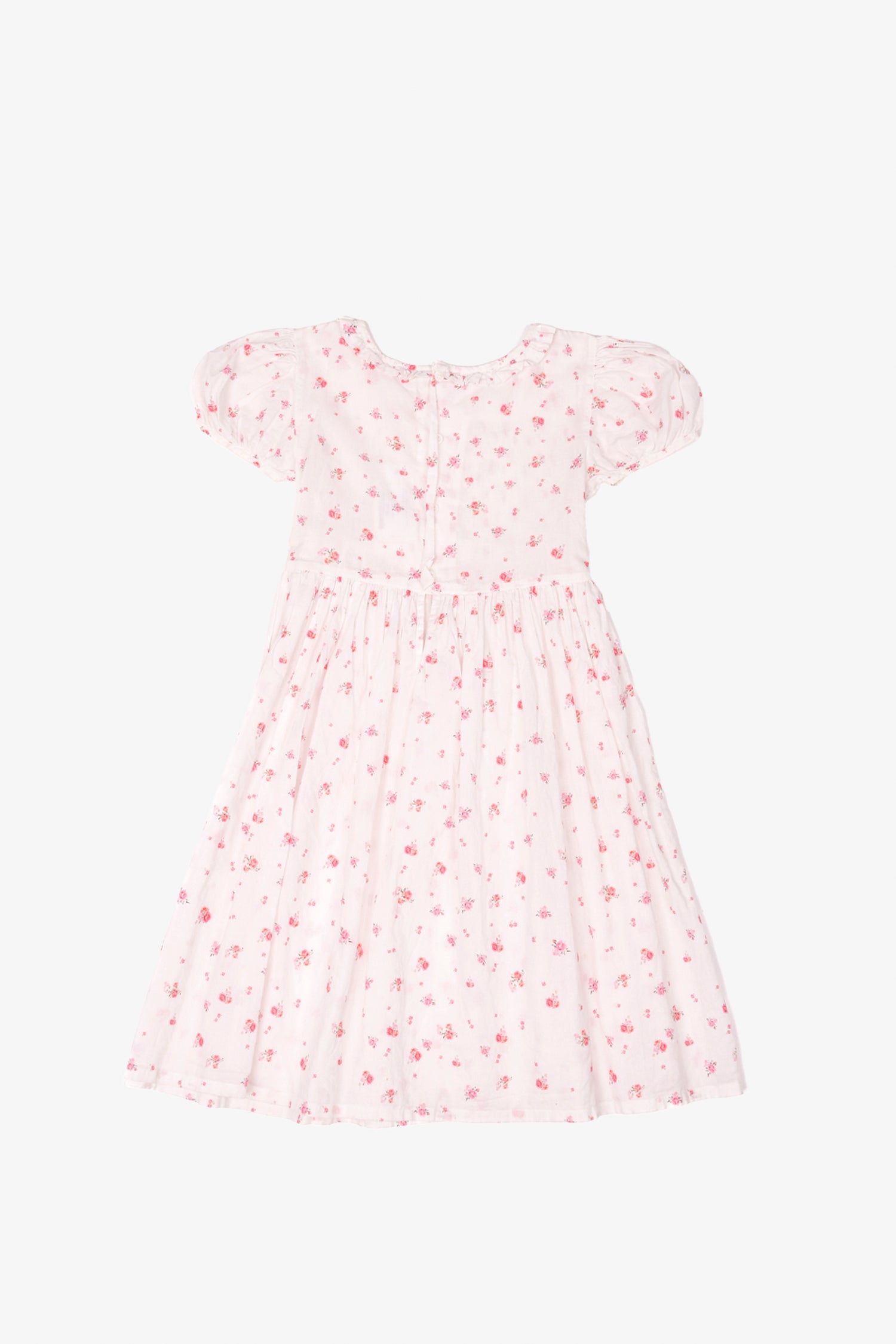 Refresh availabilityLoveShackFancy White/Pink Rose Print Puff Sleeve Dress. Round neck. Rear button-up closure. Tonal stitching.