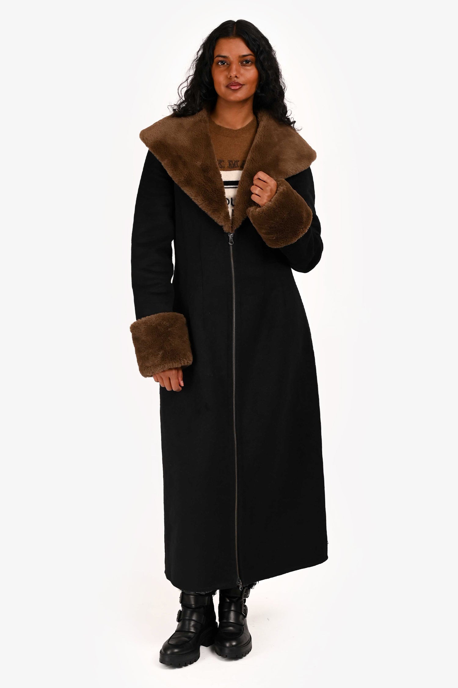 LPA Black/Brown Wool Blend 'Giovanna' Coat Size S