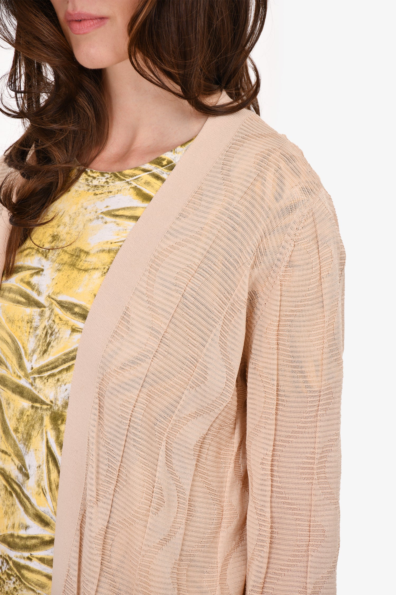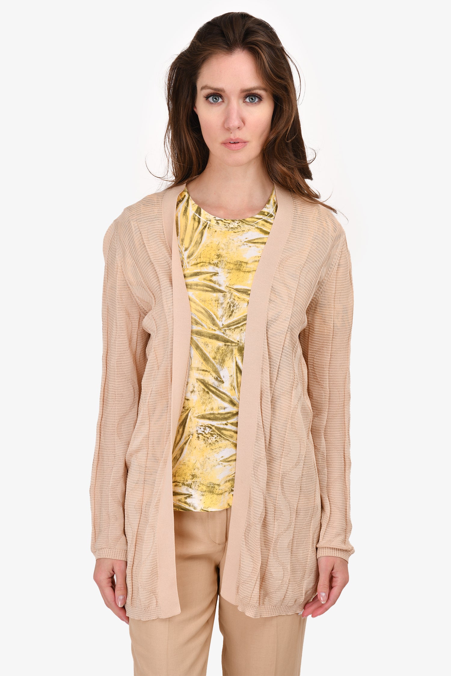Refresh availabilityM Missoni Beige Wavy Knit Cardigan. Open front. Unlined. Tonal stitching.