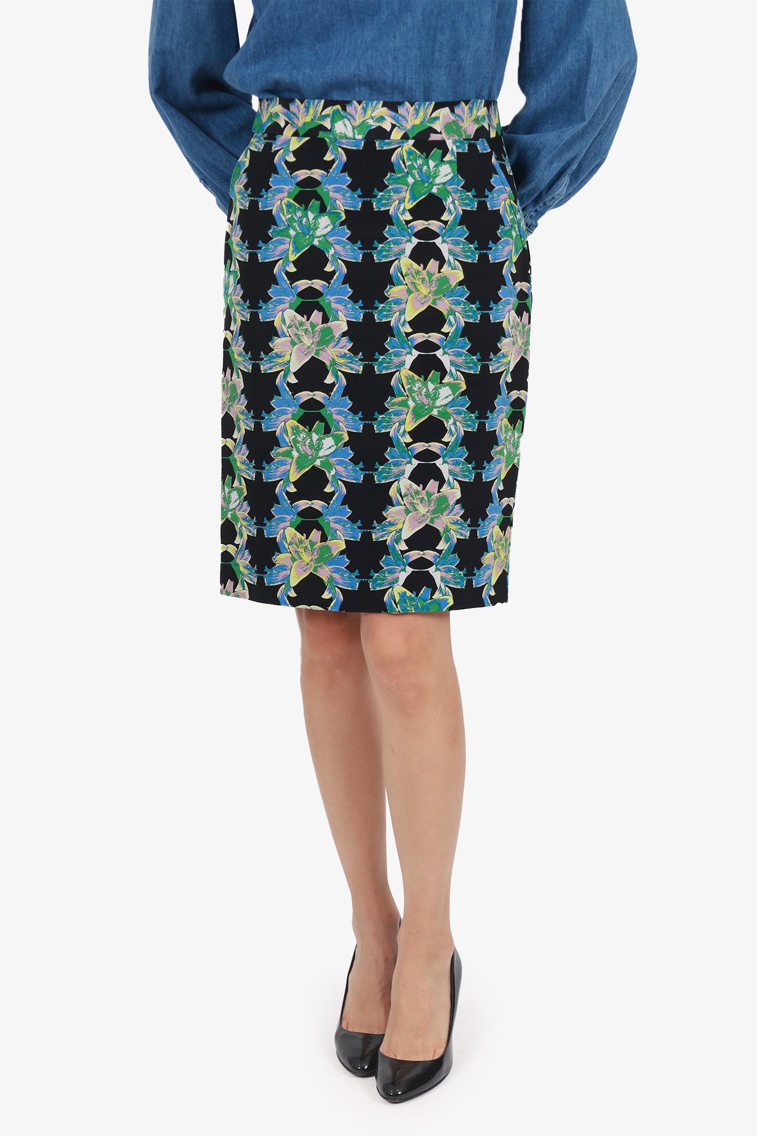Refresh availabilityM Missoni Black/Green Floral Print Knee Length Skirt. Slip-on. Rear zip closure. Lined interior. Tonal stitching.