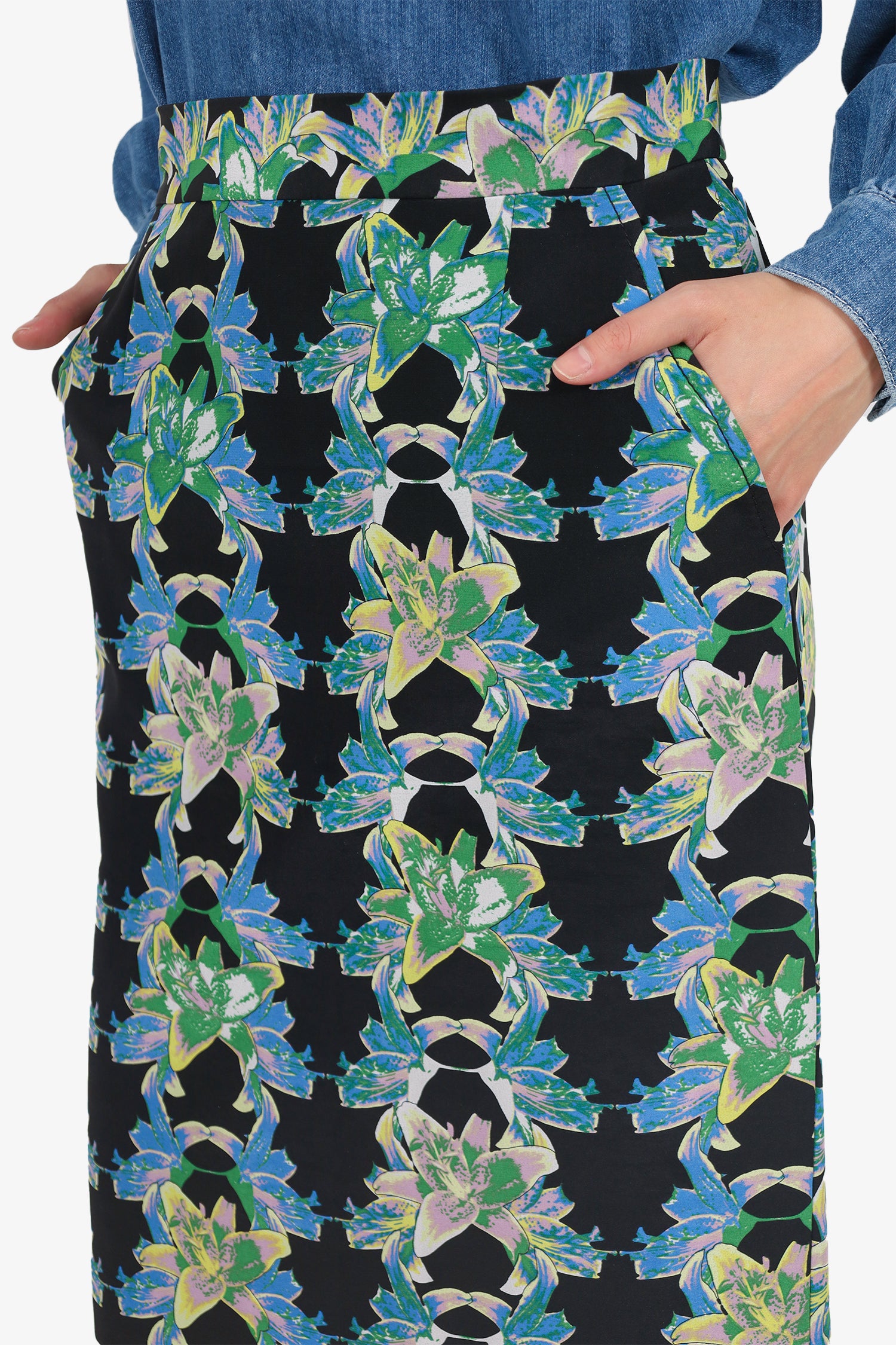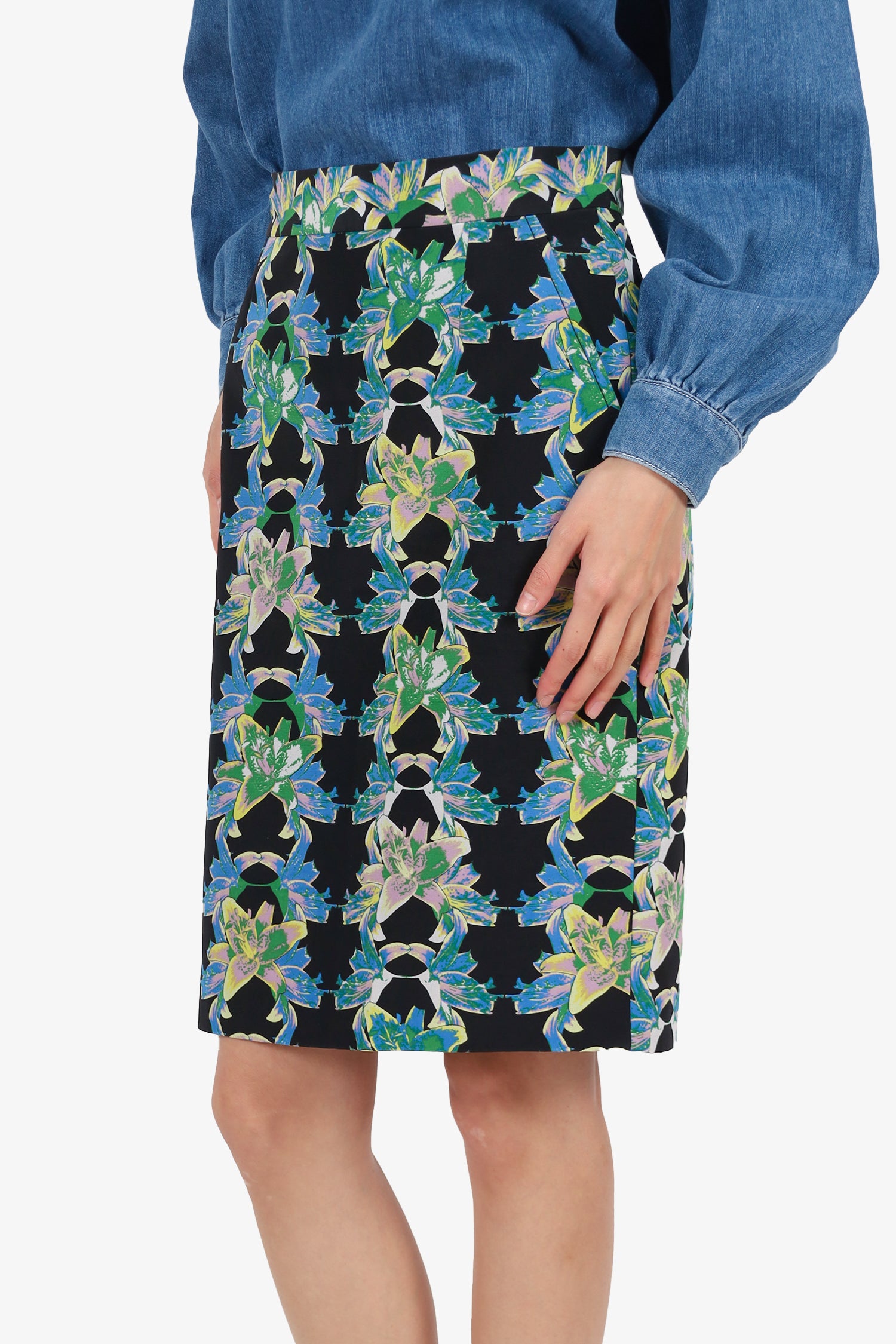M Missoni Black/Green Floral Print Knee Length Skirt Size 40