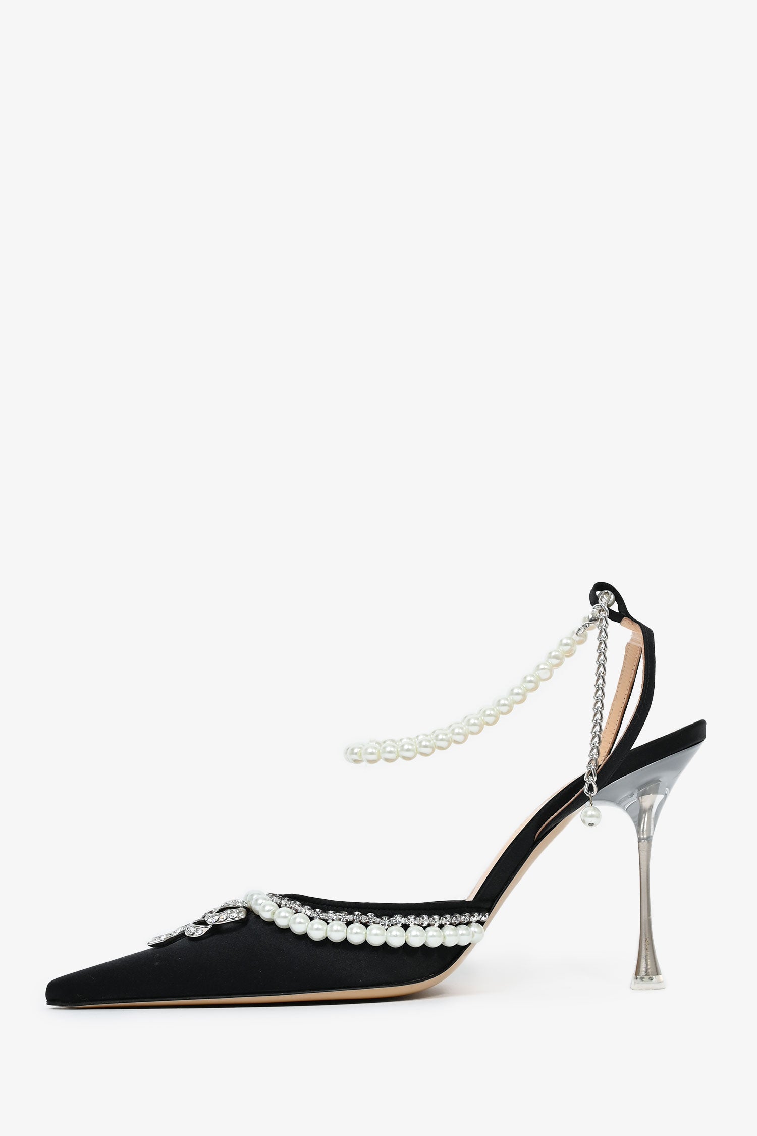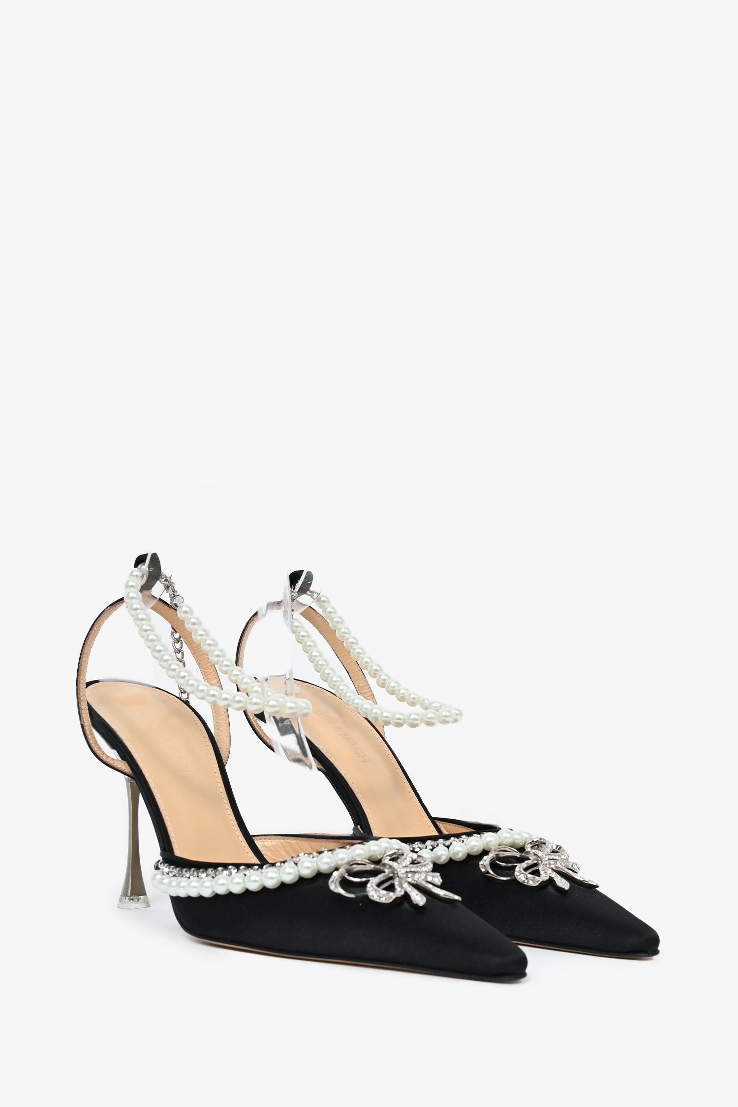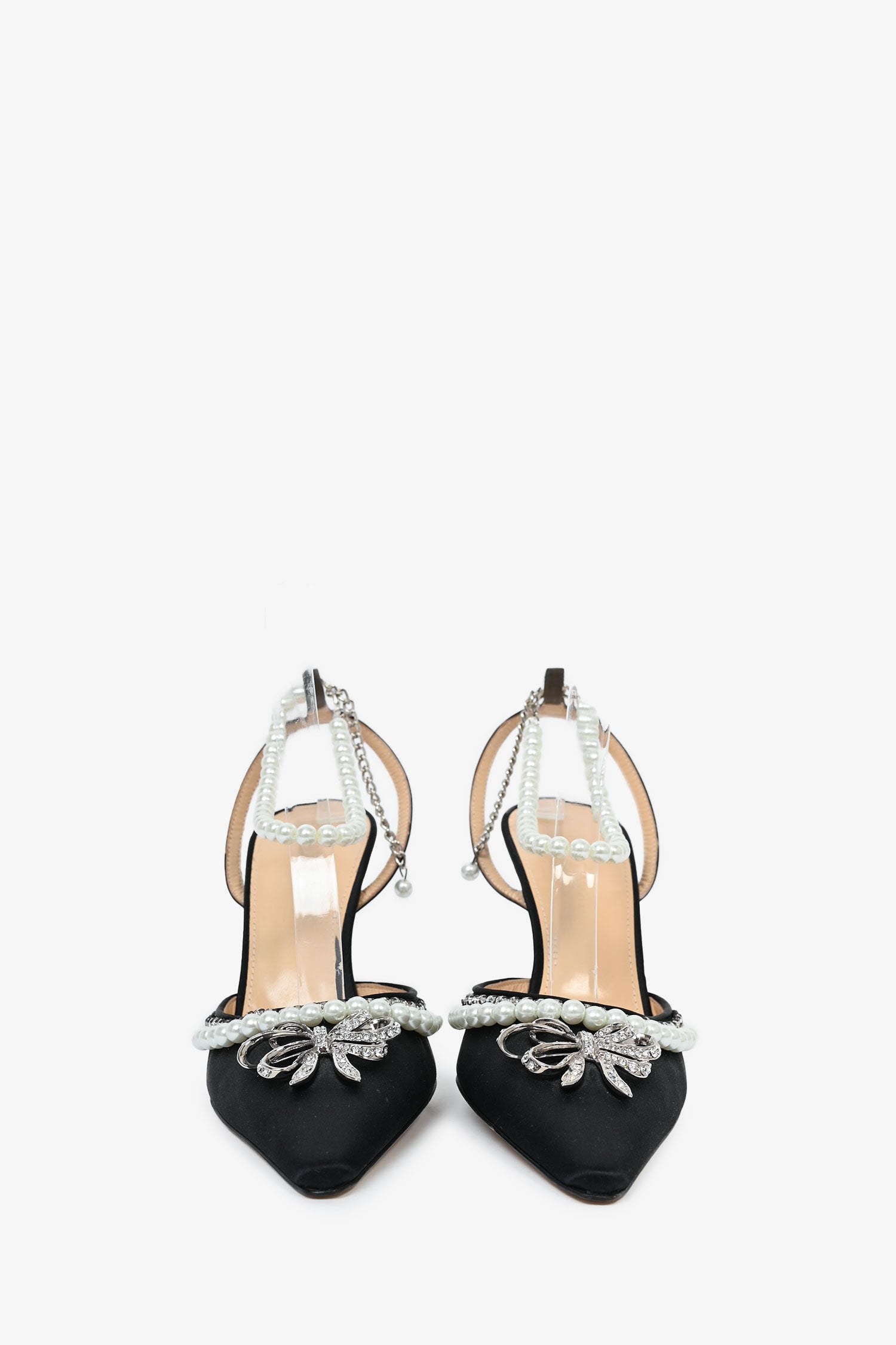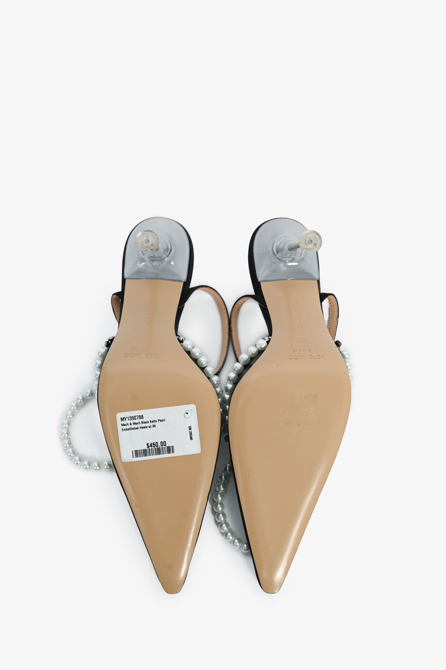 Mach & Mach Black Satin Pearl Embellished Heels Size 39