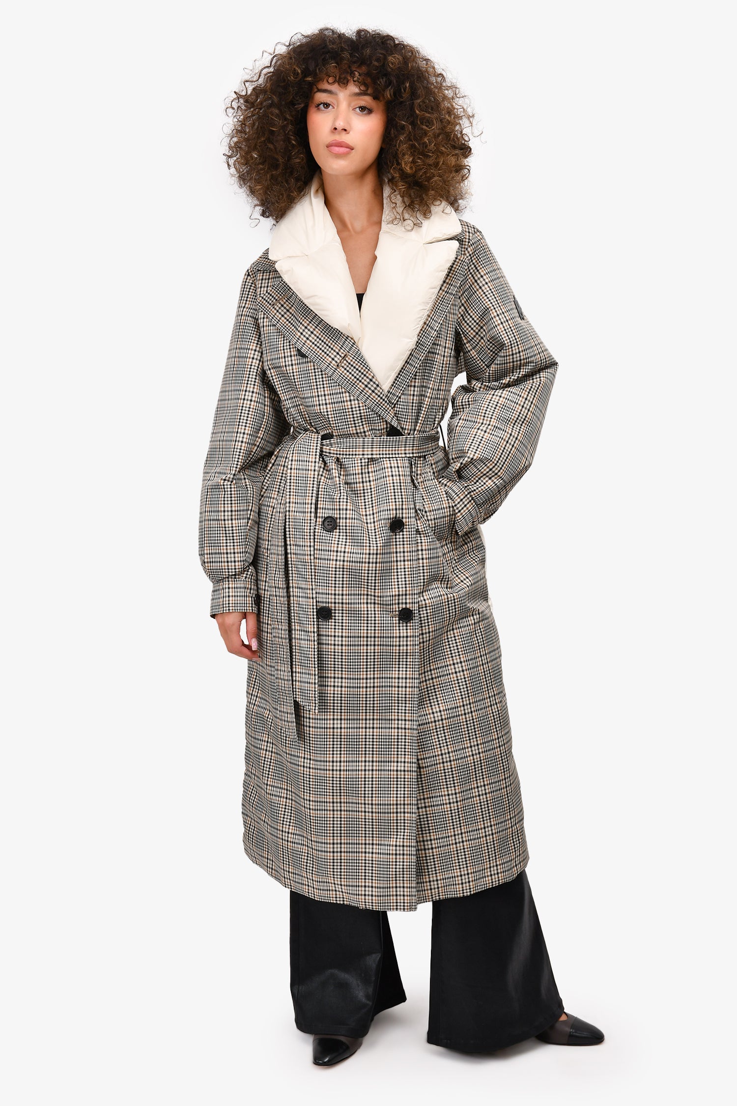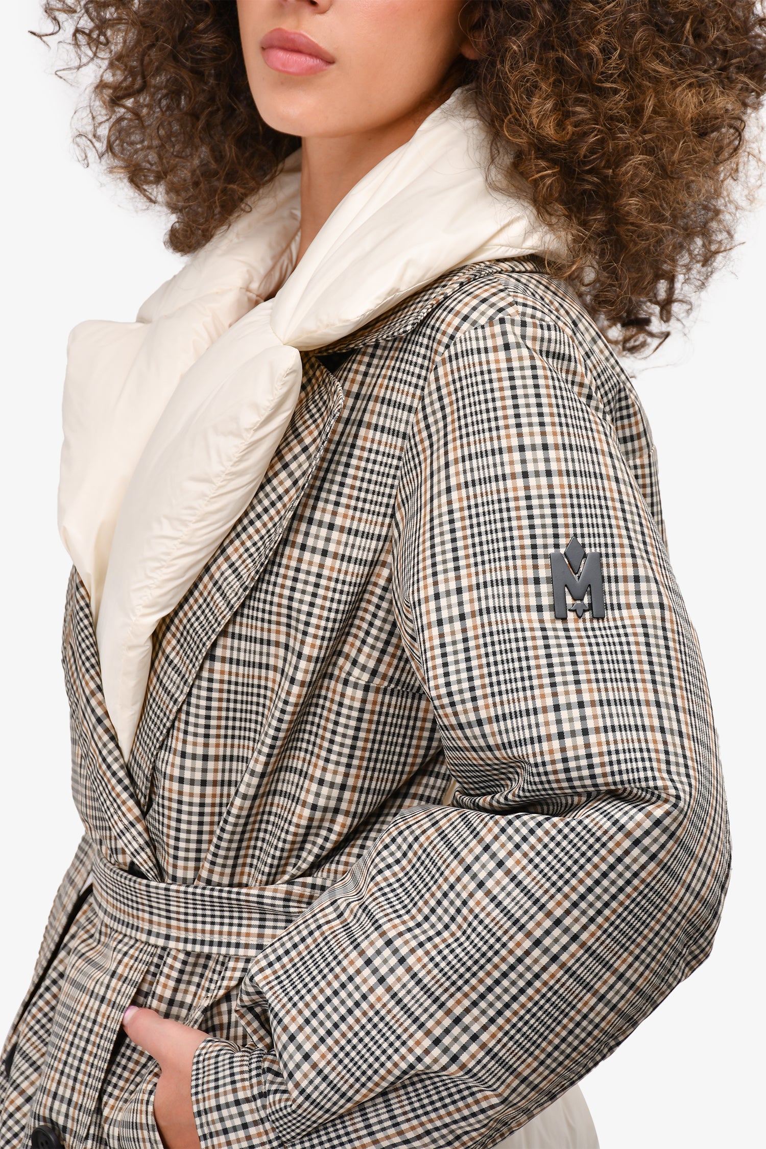 Mackage Beige Check/Cream Nylon 'Sage' Long Parka Coat With Belt Size M