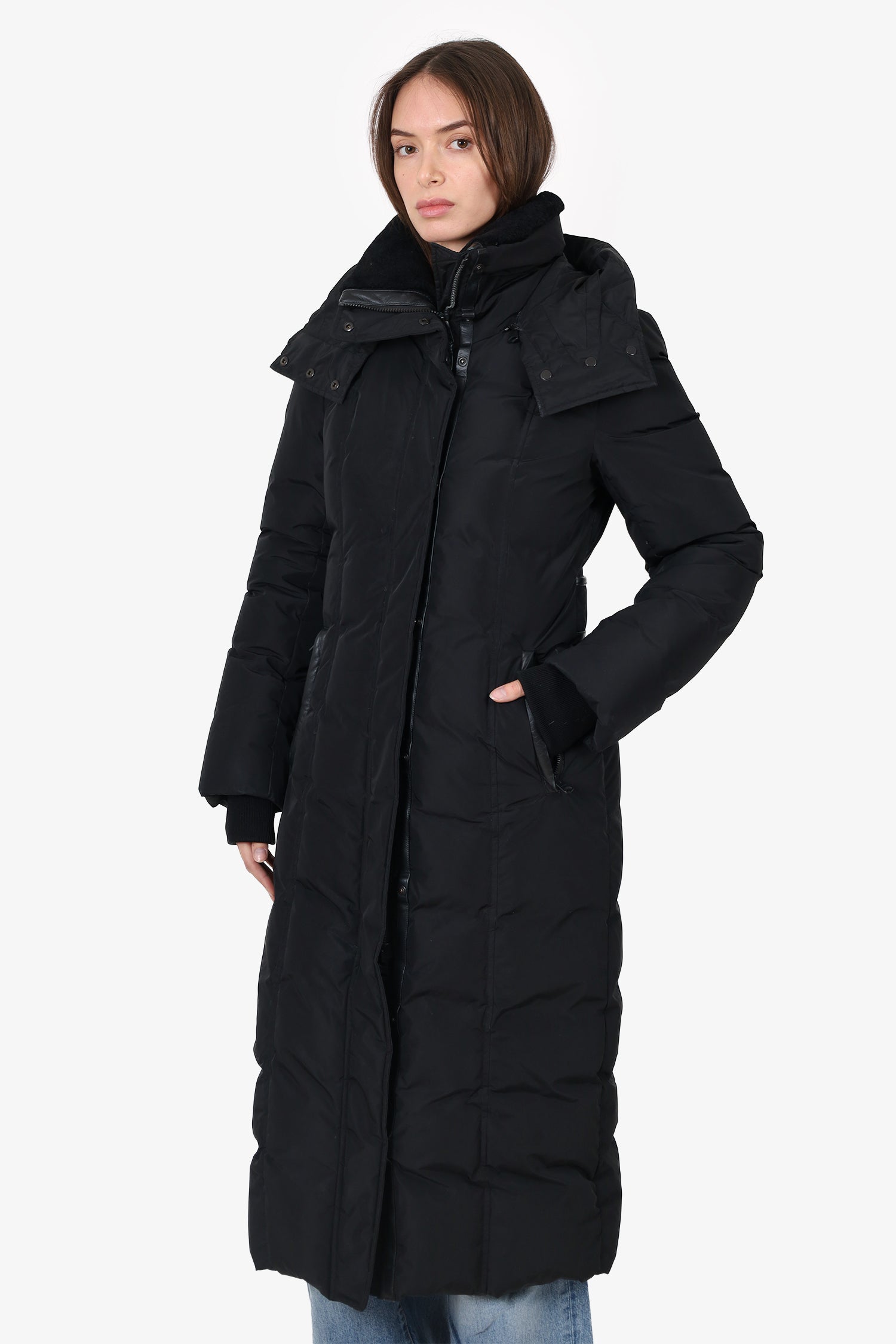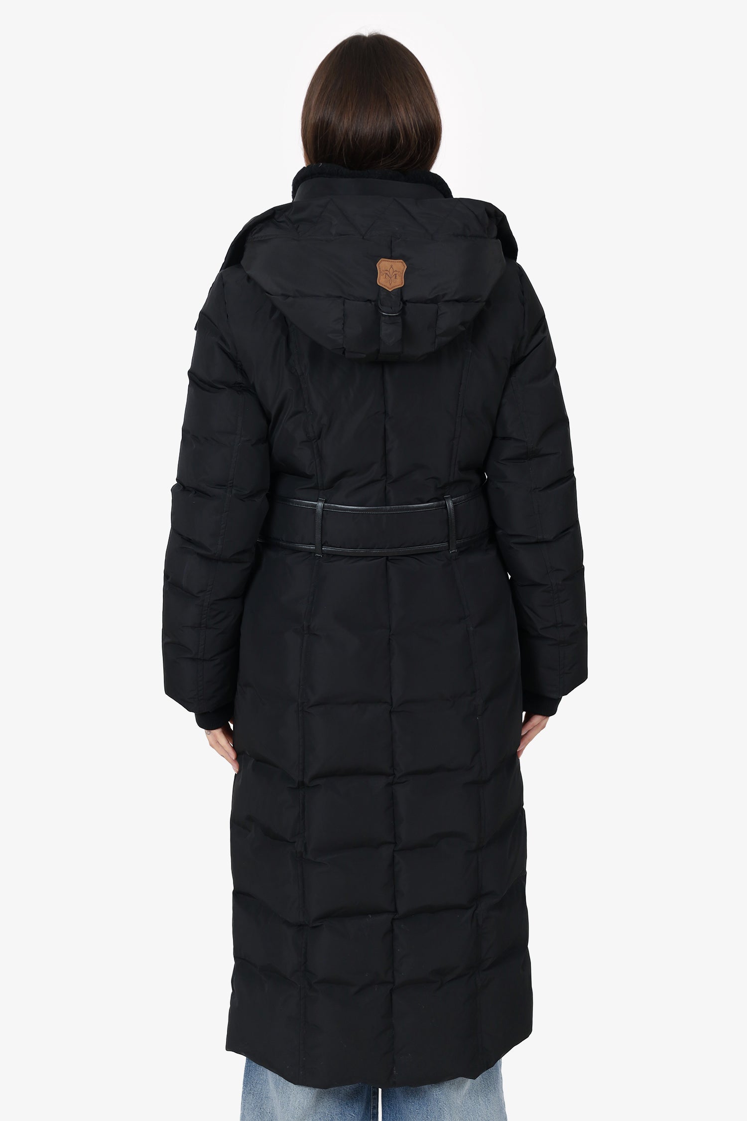Mackage Black Hooded Belted Long Puffer Coat Size S