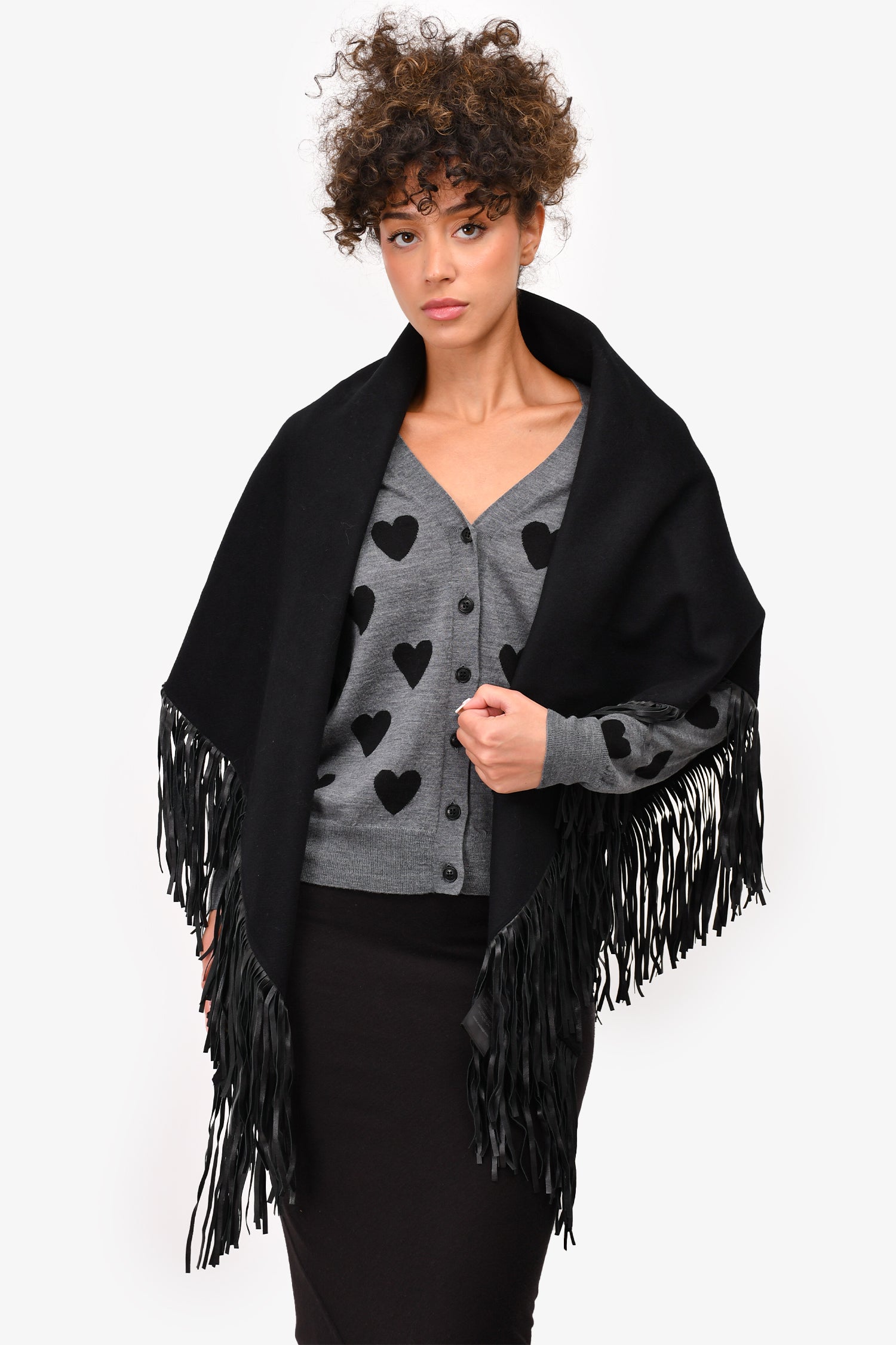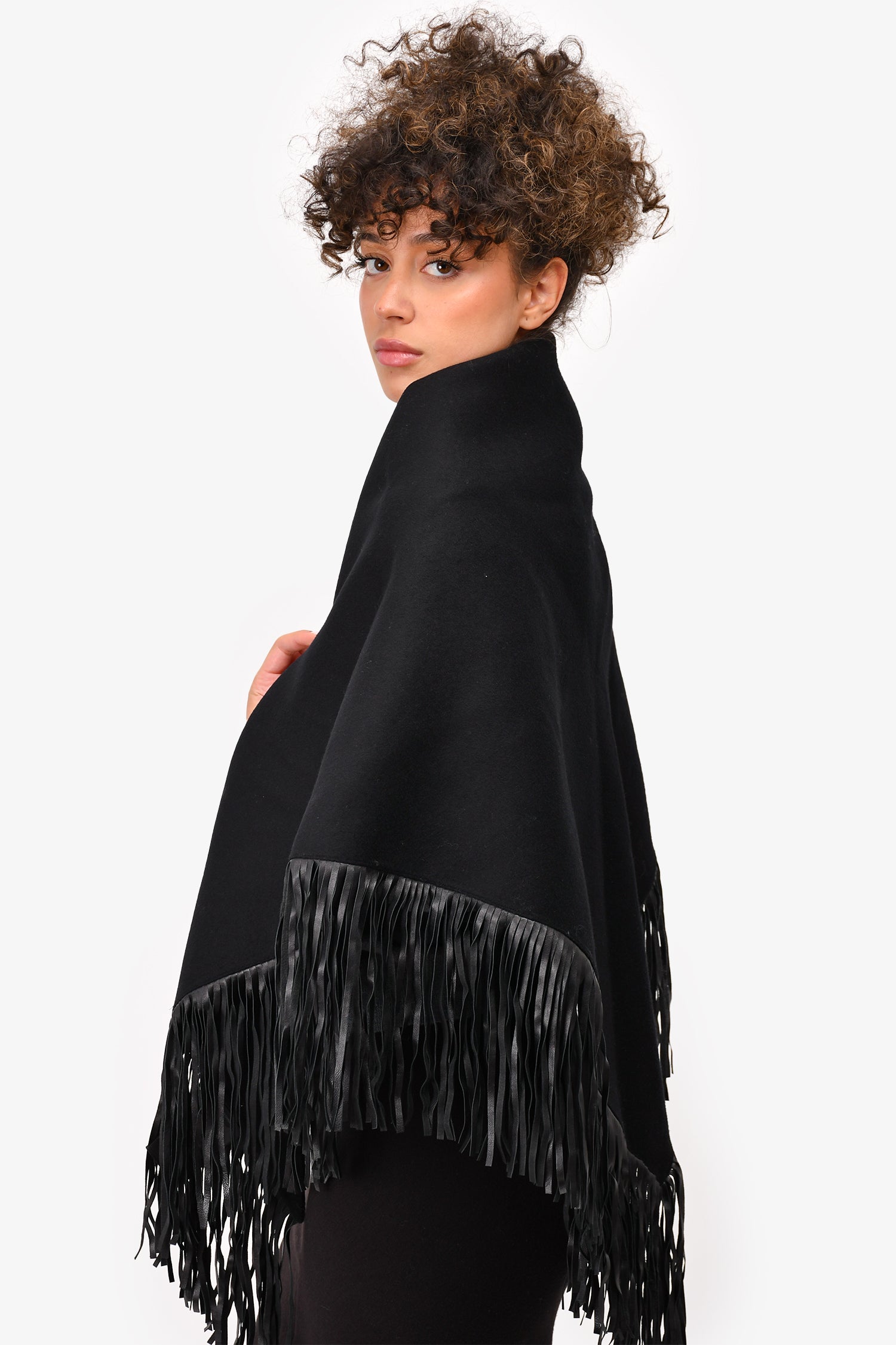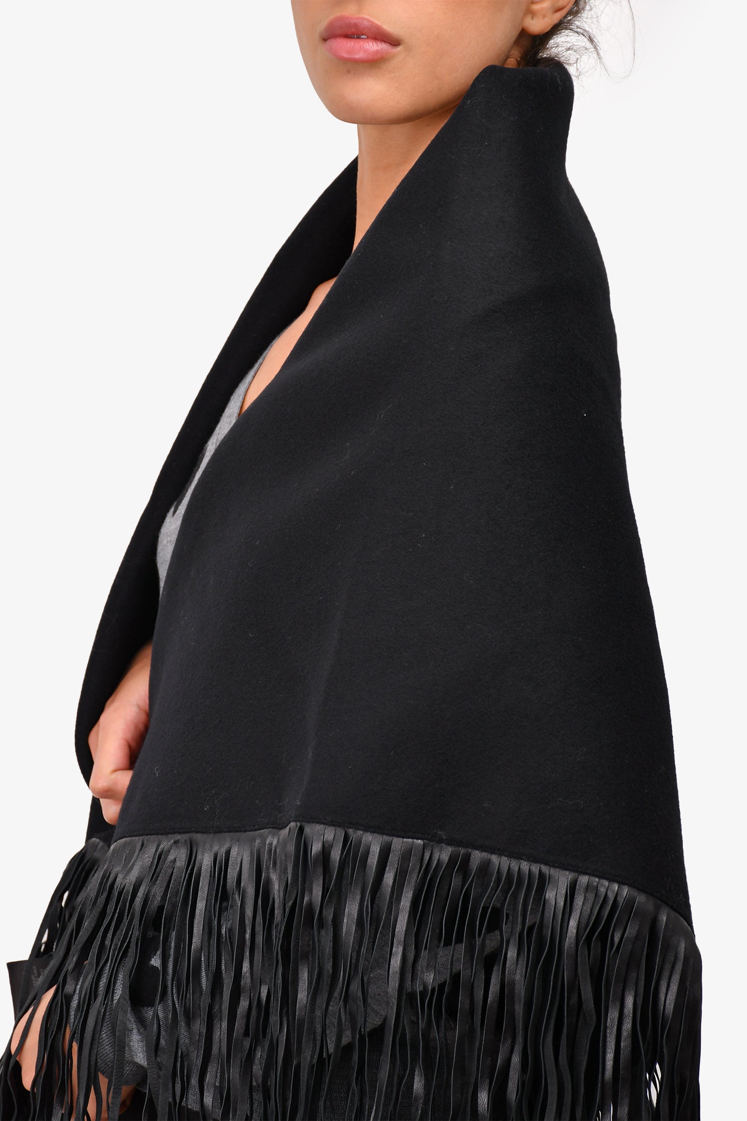 Refresh availabilityMackage Black Leather Fringe Cape. Open front.