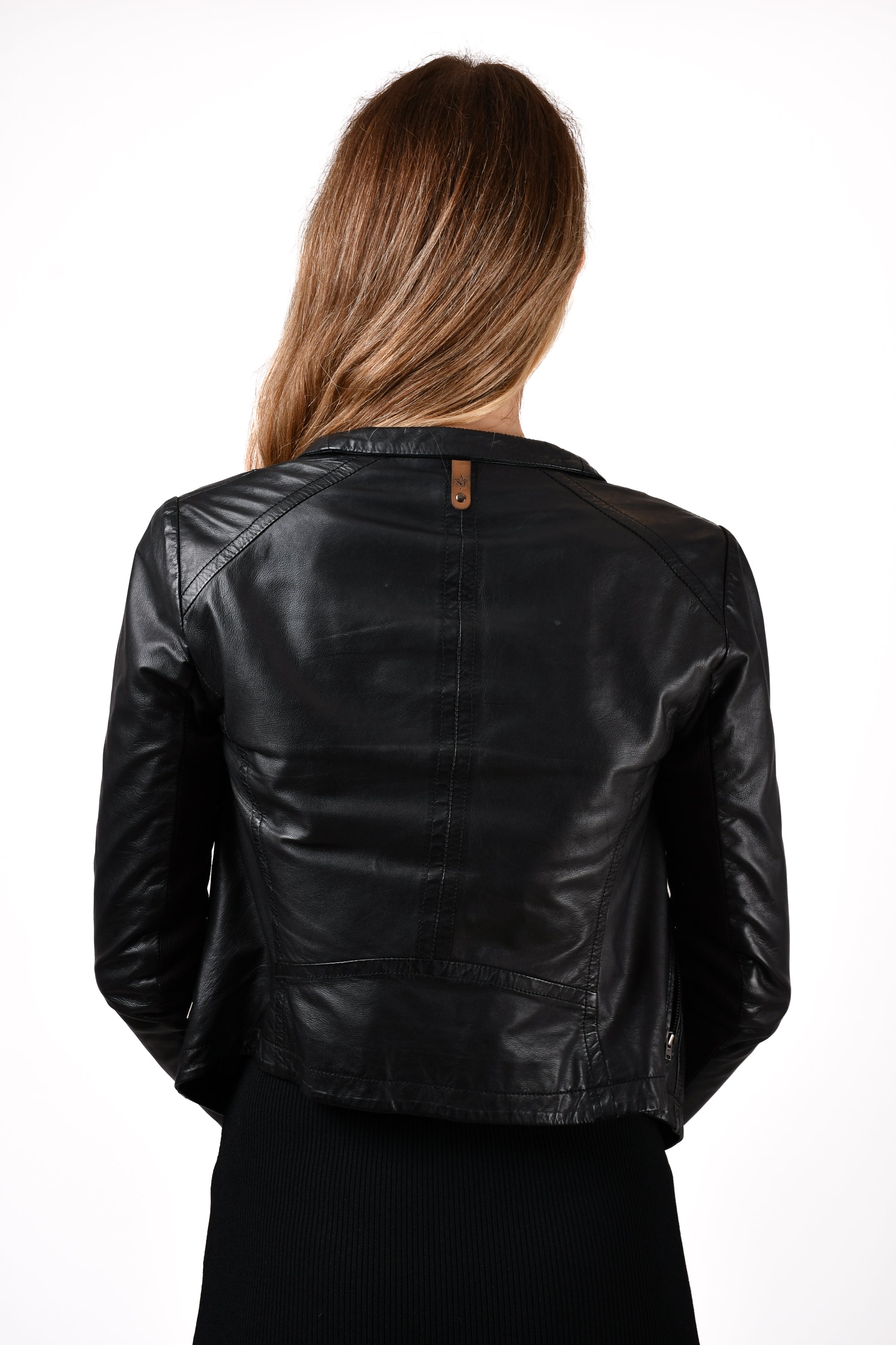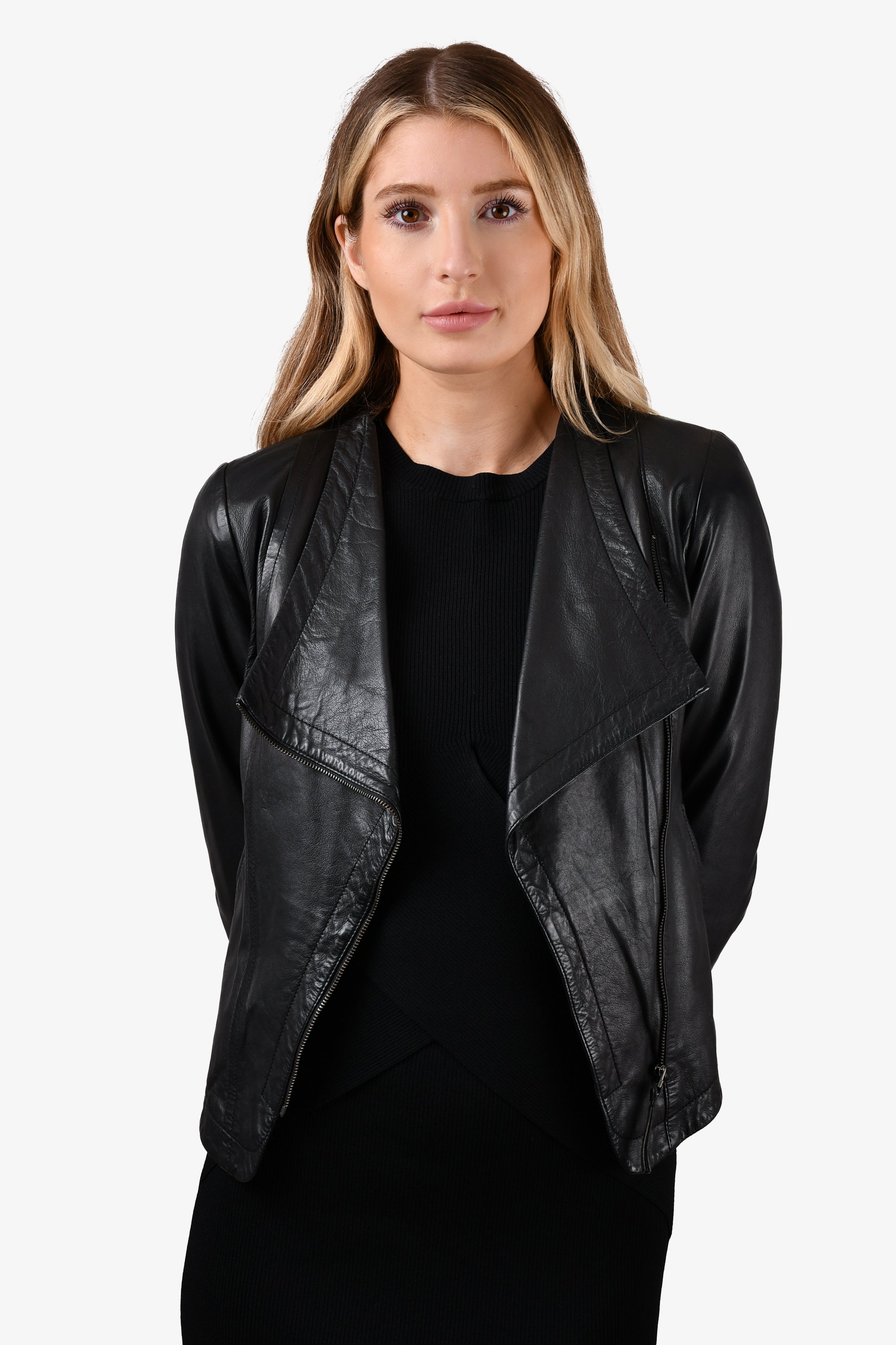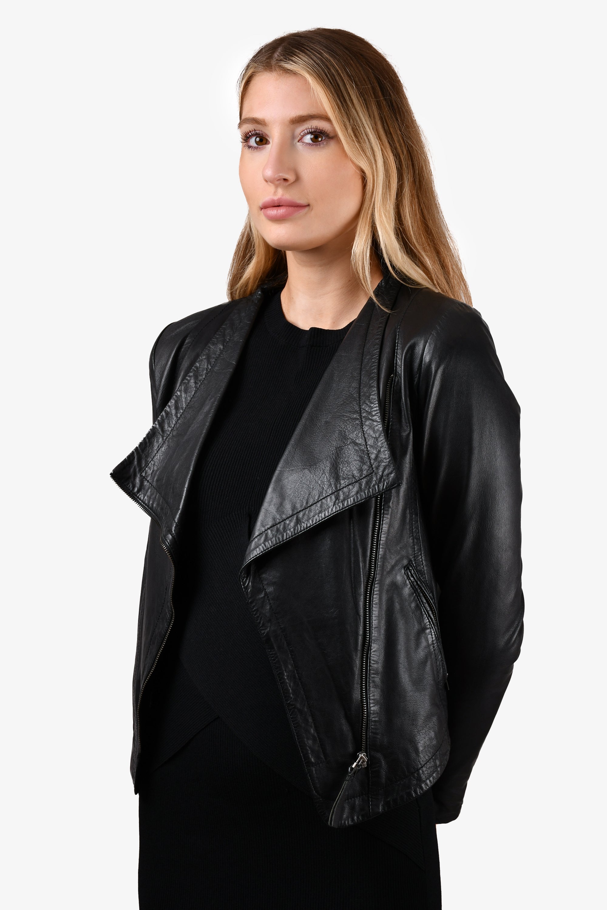 Refresh availabilityMackage Black Leather Moto Jacket. Zipper closure. Front pockets with zipper closure. Interior lining. Tonal stitching.