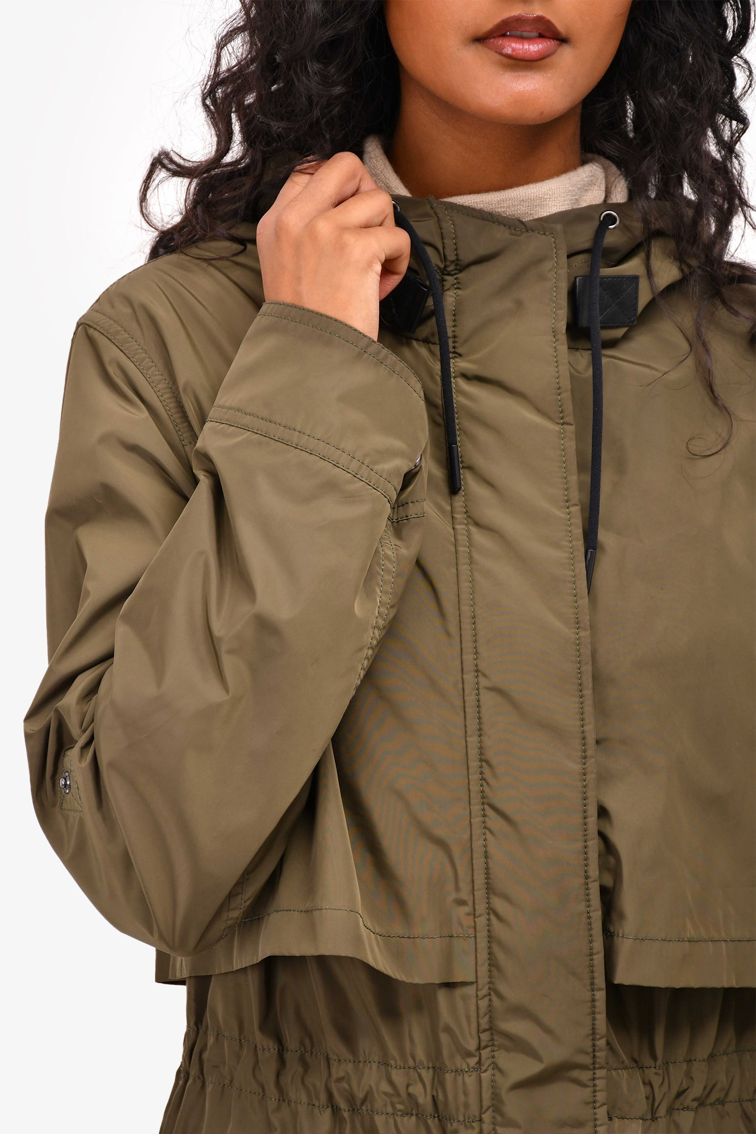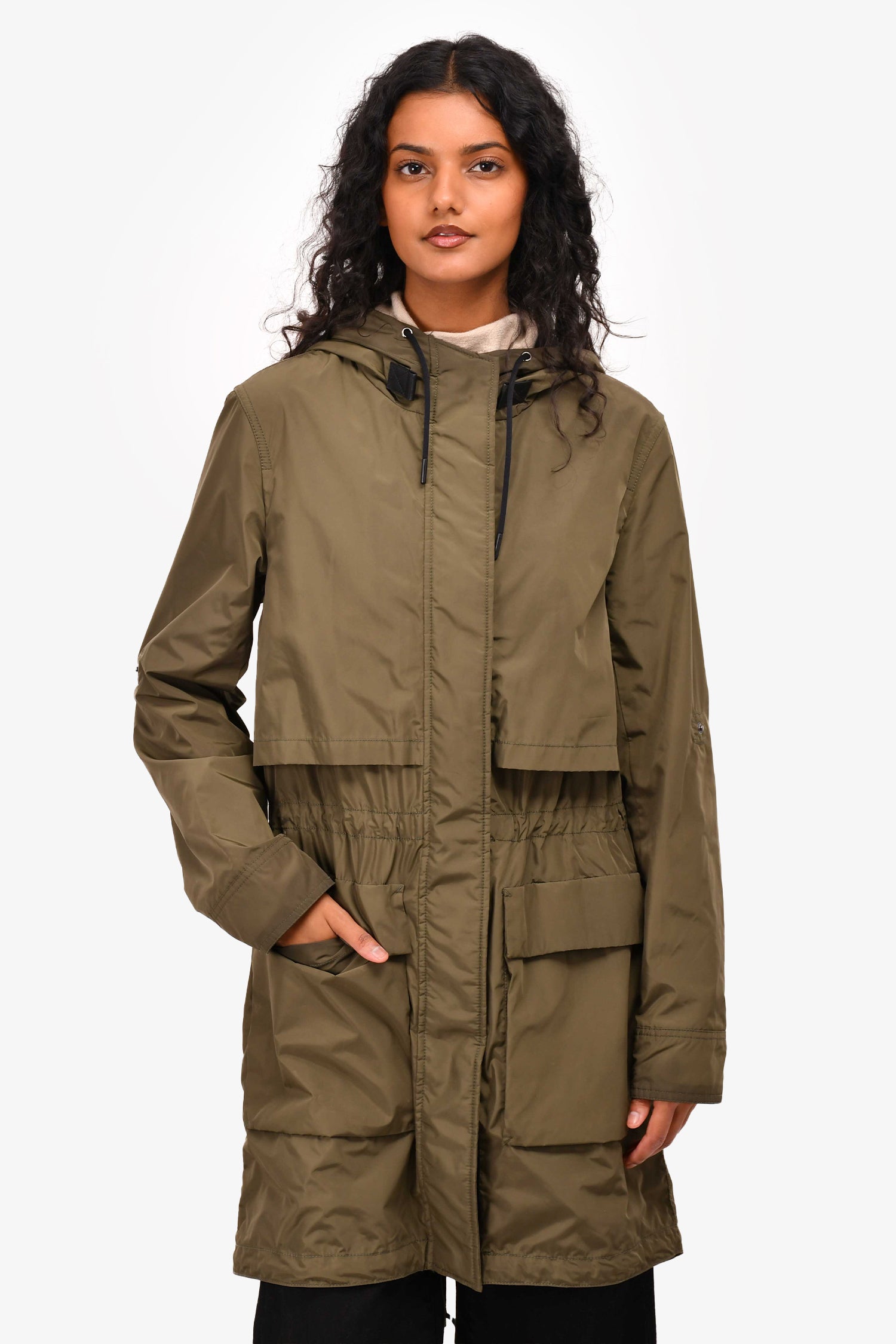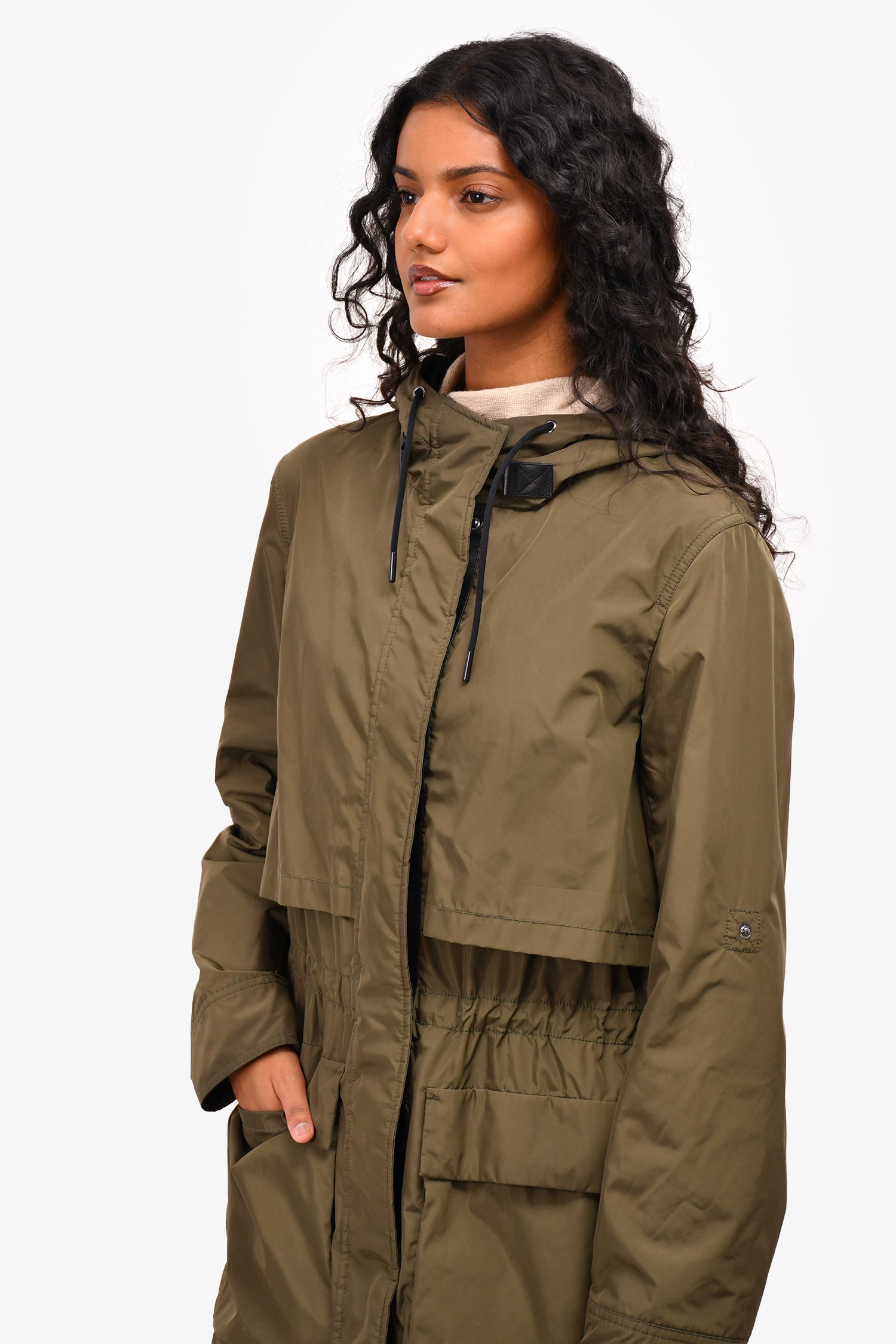 Refresh availabilityMackage Green Nylon Cinched Waist Lightweight Coat. Front two-way zip and snap-button closures. Front pockets. Snap-button closure on the cuffs.