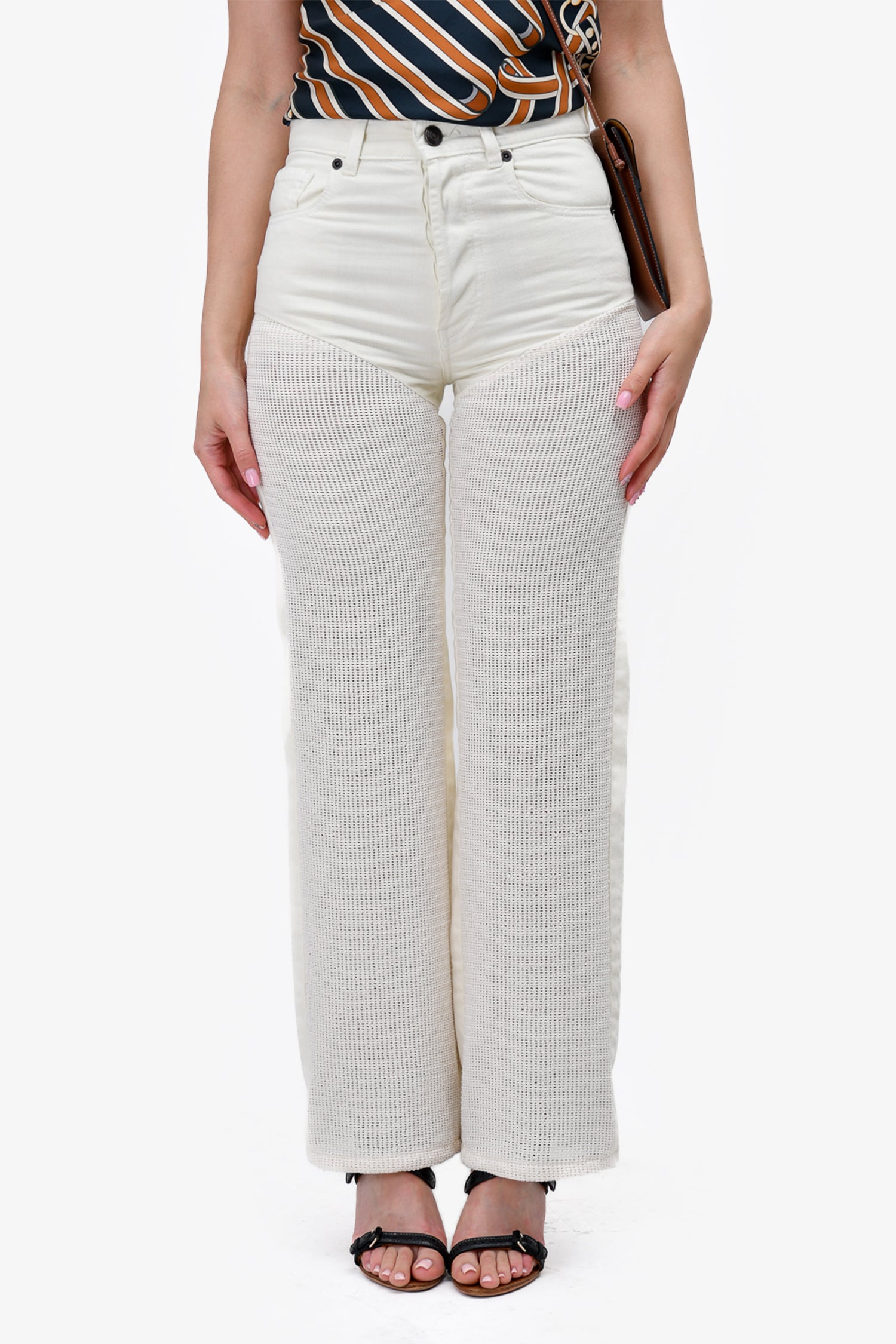 Magda Butrym 2022 White Cotton/Crochet Wide Leg Pants Size 34