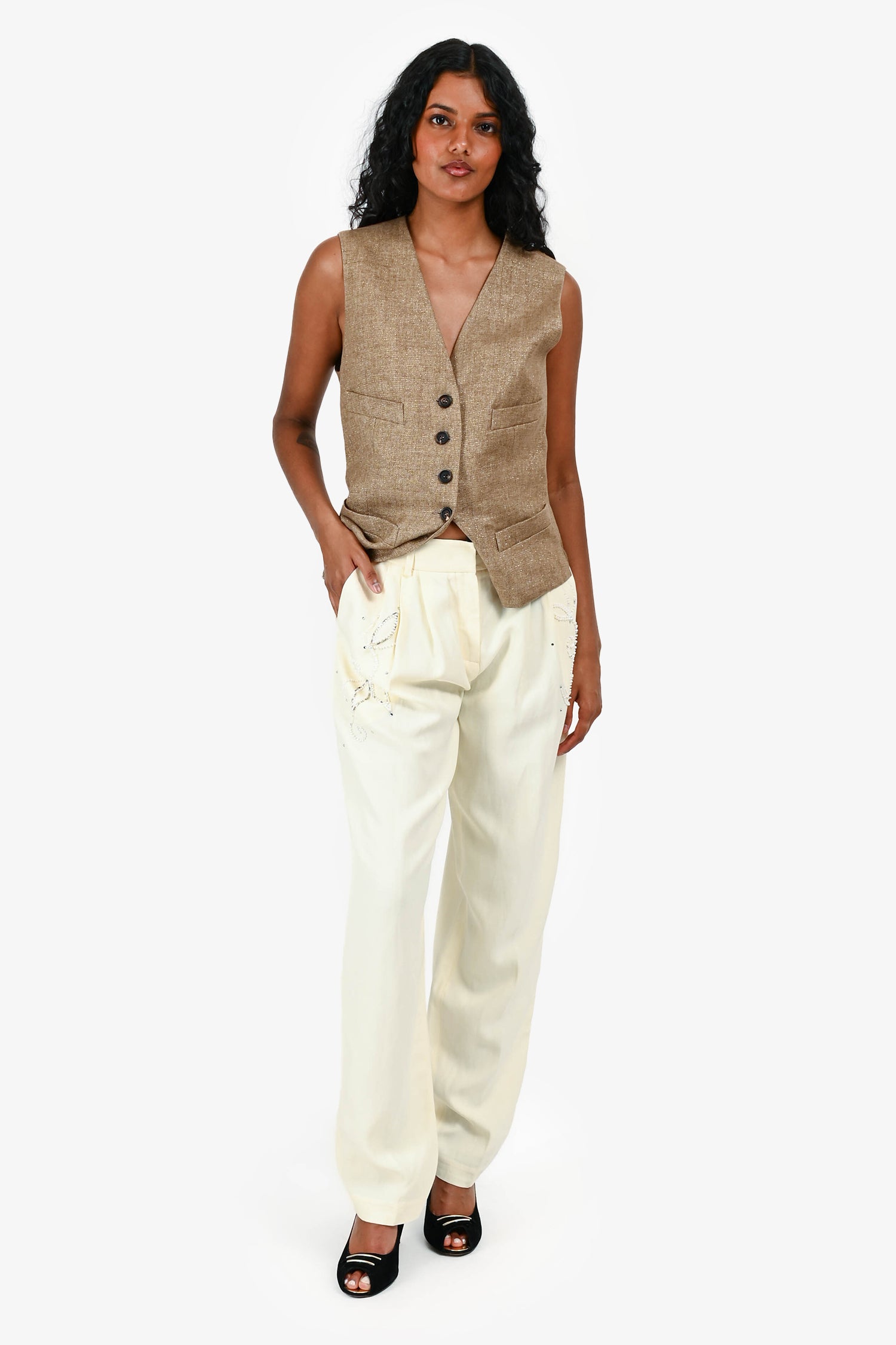 Magda Butrym Cream Beaded Trousers Size 36