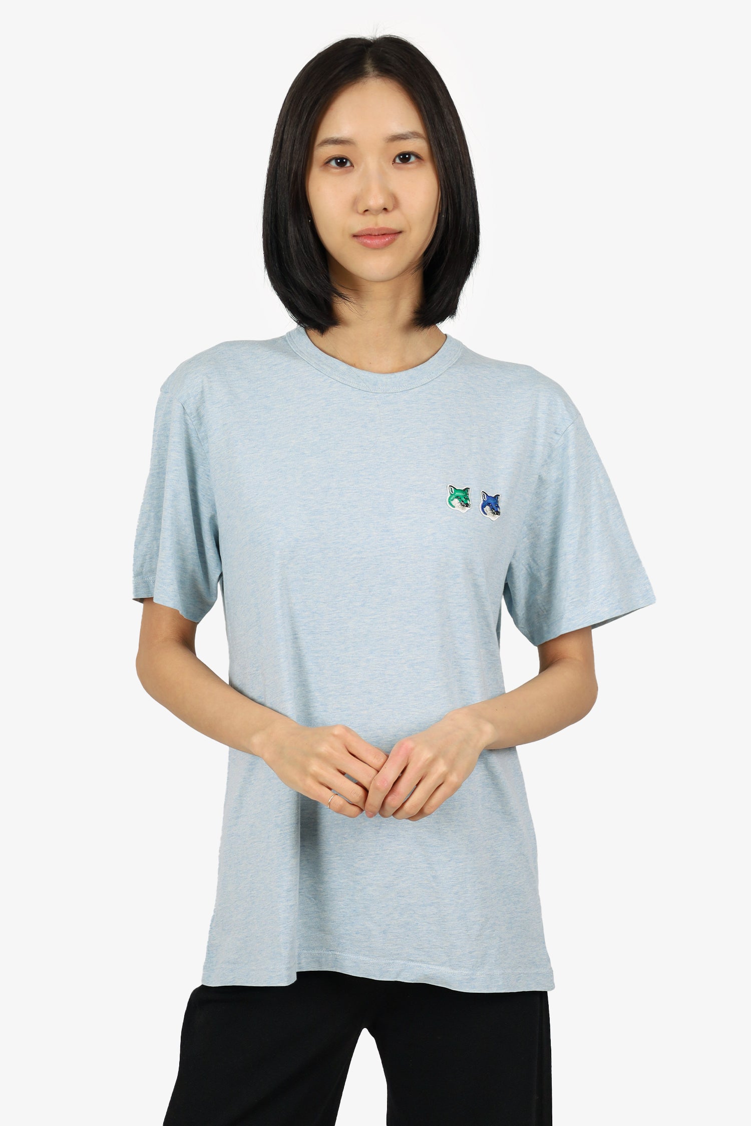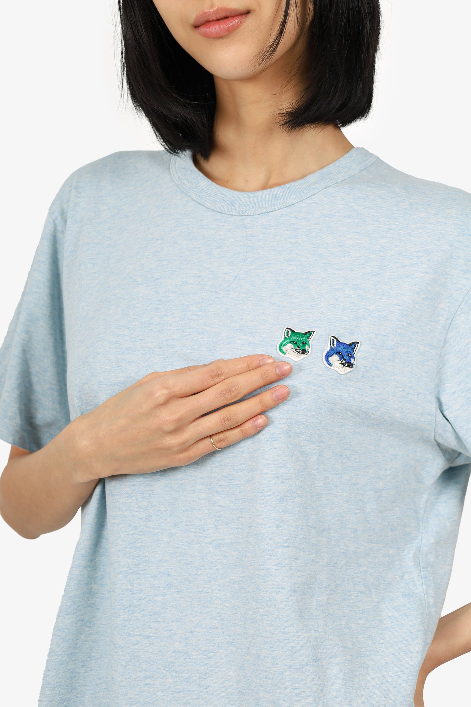 Refresh availabilityMaison Kitsune Blue Fox Head Patch T-shirt. Pull-on. Round-neckline. Tonal stitching.