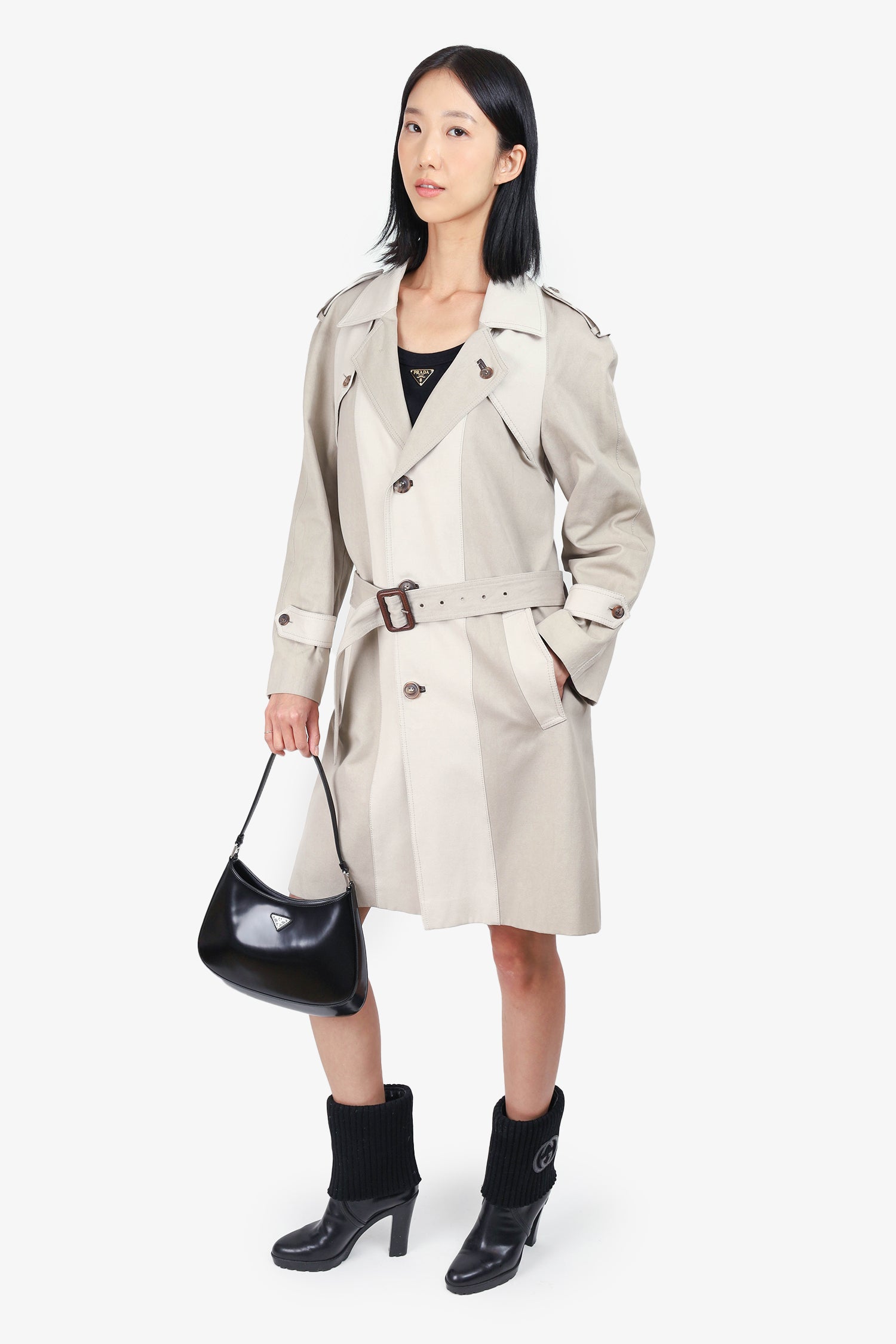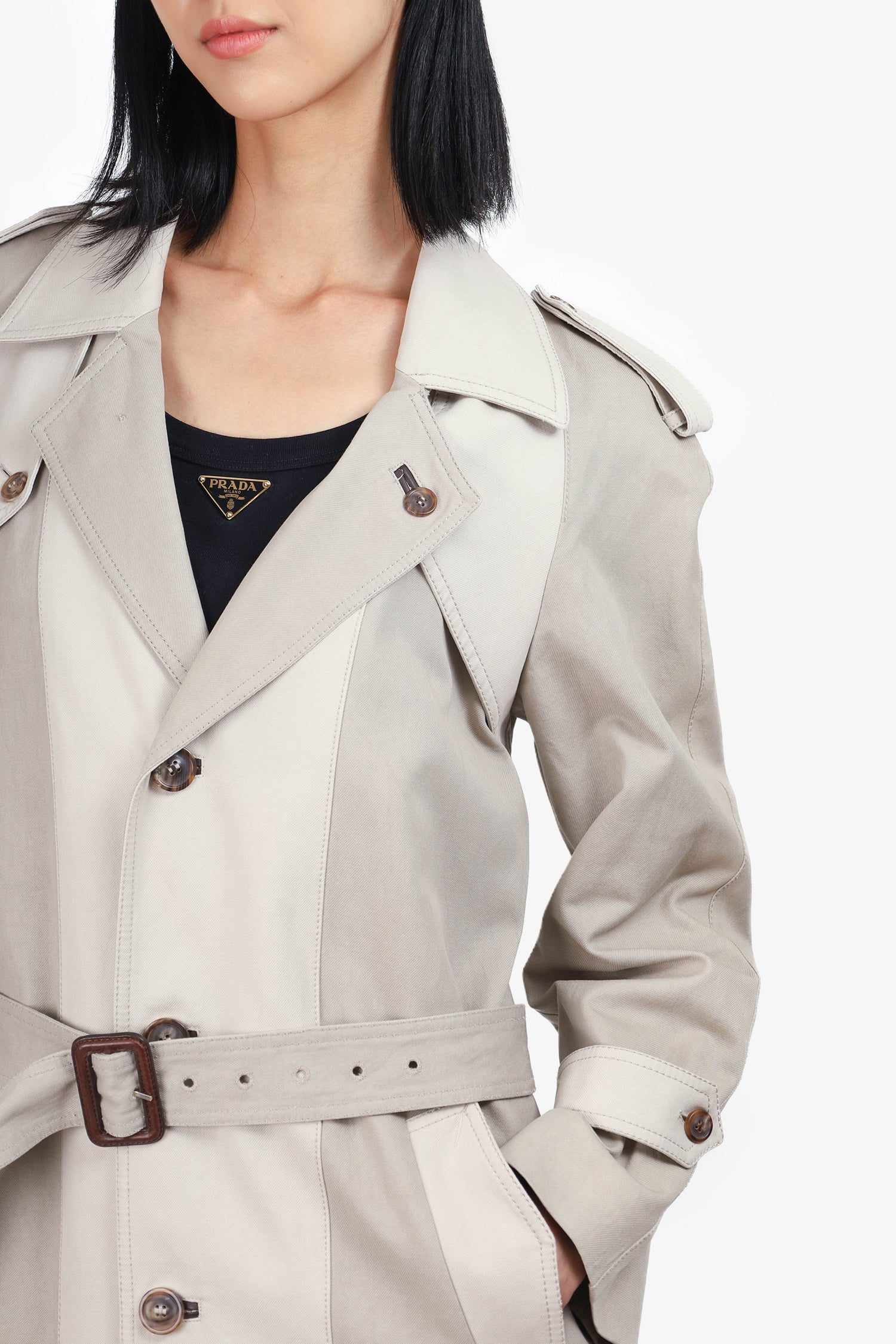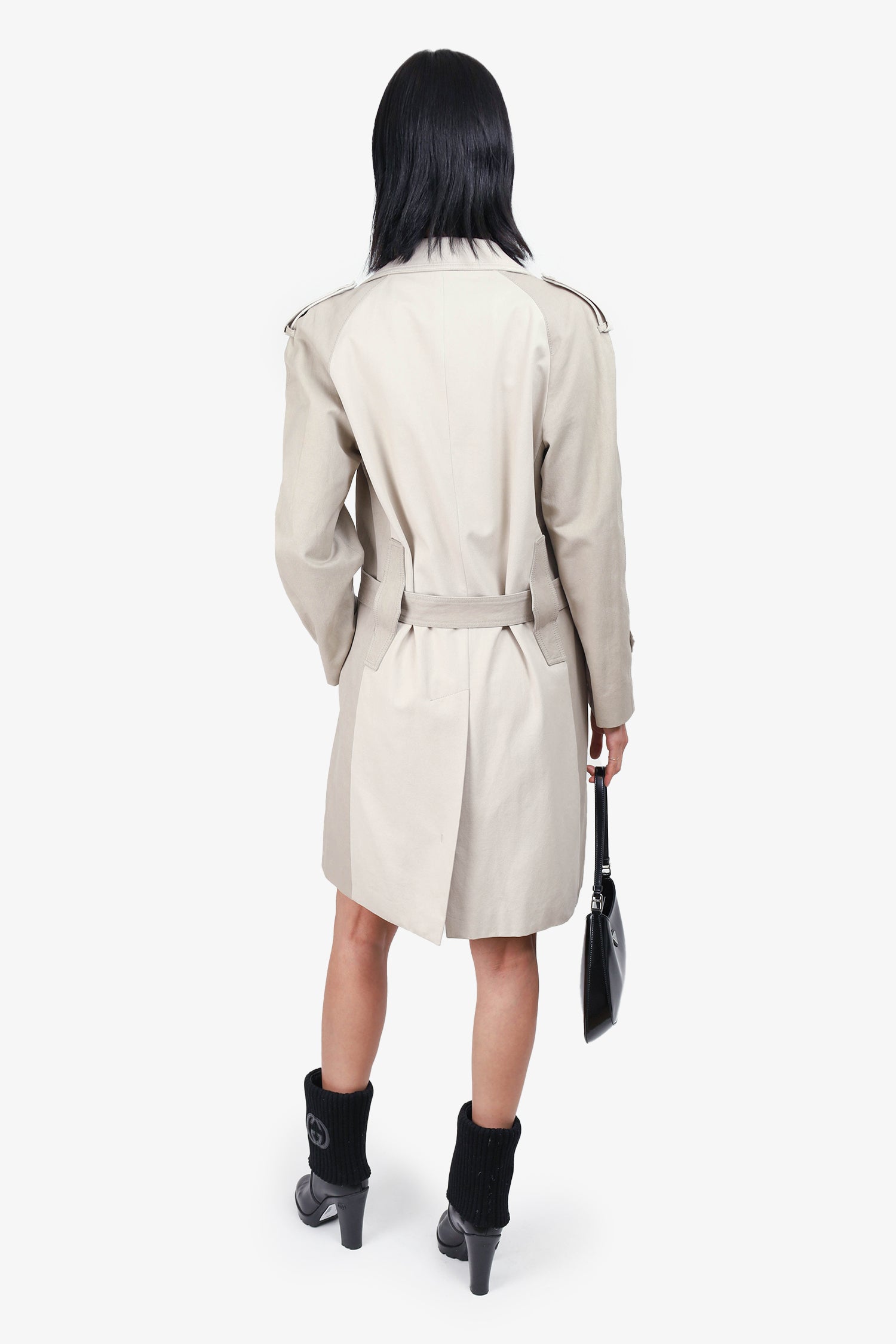 Refresh availabilityMaison Margiela Beige Belted Trench Coat. Collared v-neckline. Front button-up closure. 2 side slip pockets. Removable/adjustable pull-through belt. Button-up closure on sleeve cuffs. Lined. Tonal stitching.