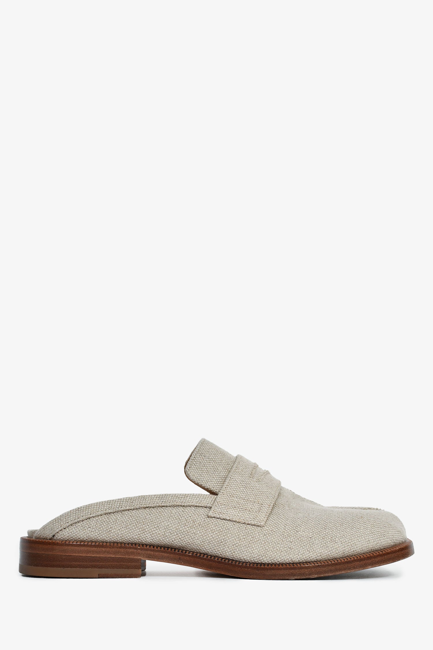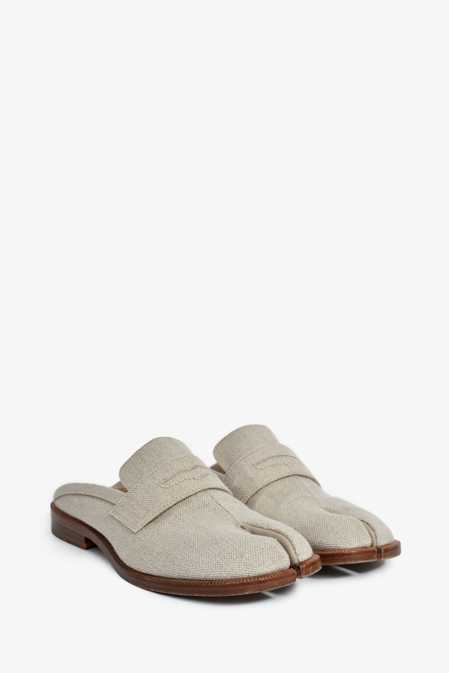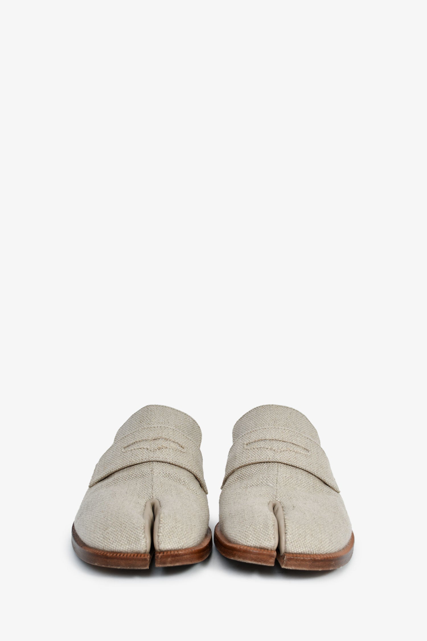 Refresh availabilityMaison Margiela Beige Linen 'Tabi City' Loafer. Slip-on. Split toe. Lined leather insole. Tonal stitching.