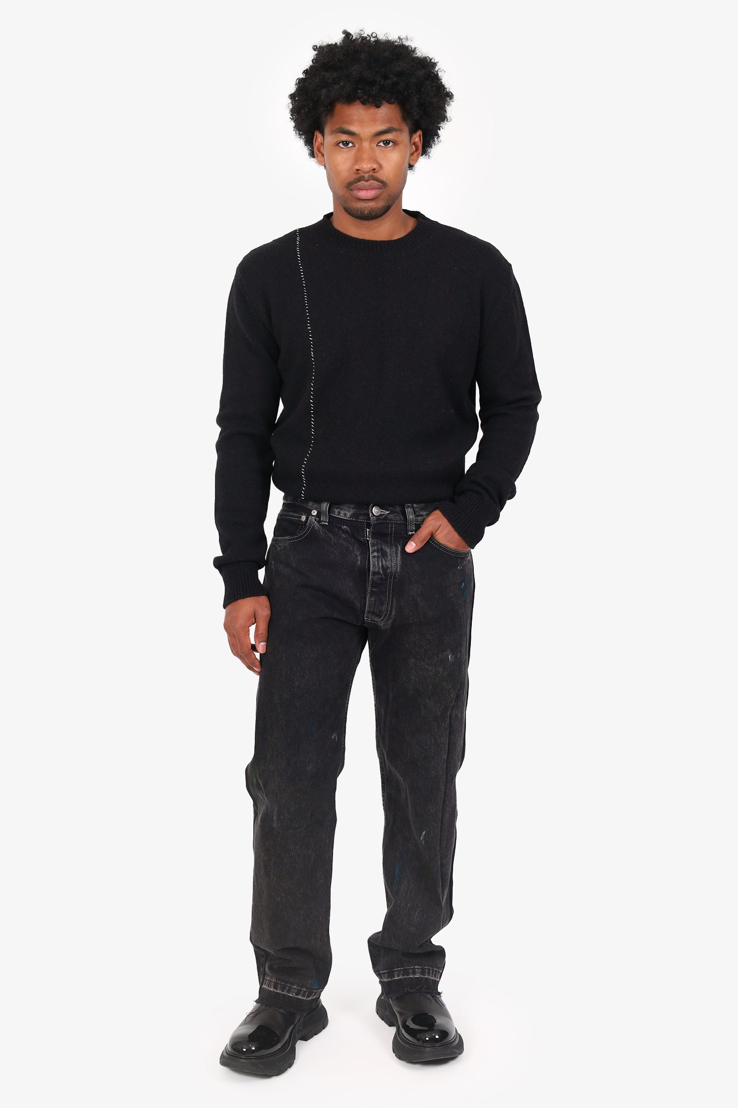 Maison Margiela Black Denim Distressed Straight Leg Jeans Size 32 Mens