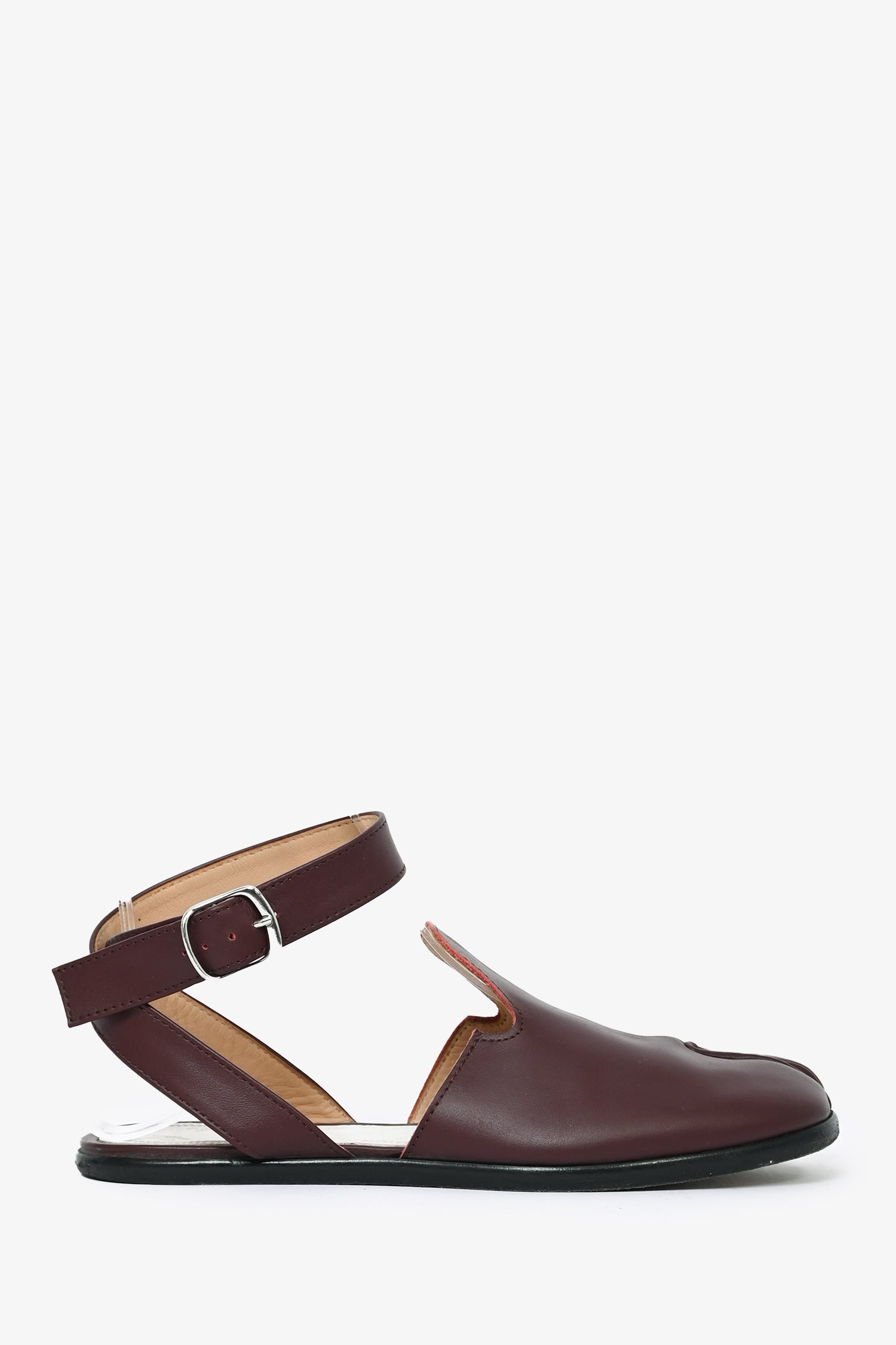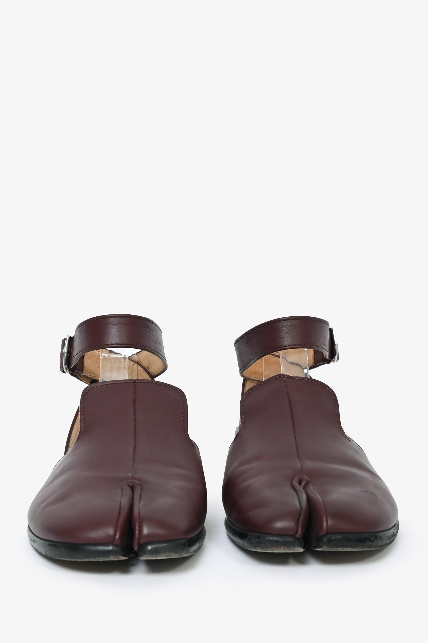 Maison Margiela Burgundy Tabi Ankle Strap Flats Size 36