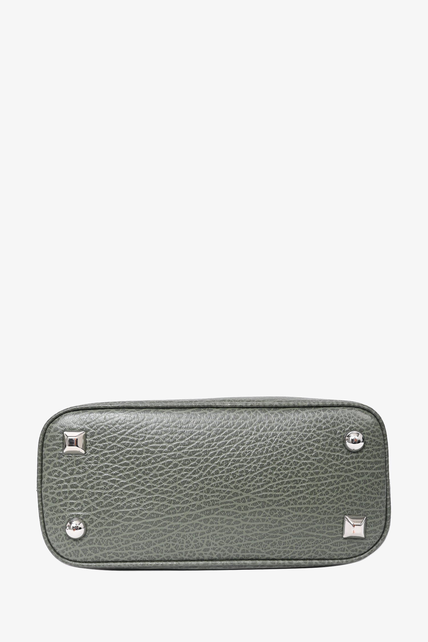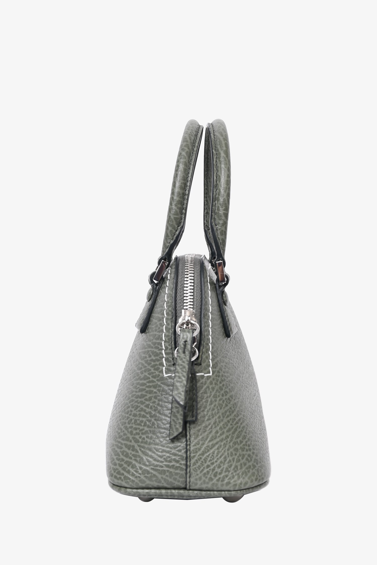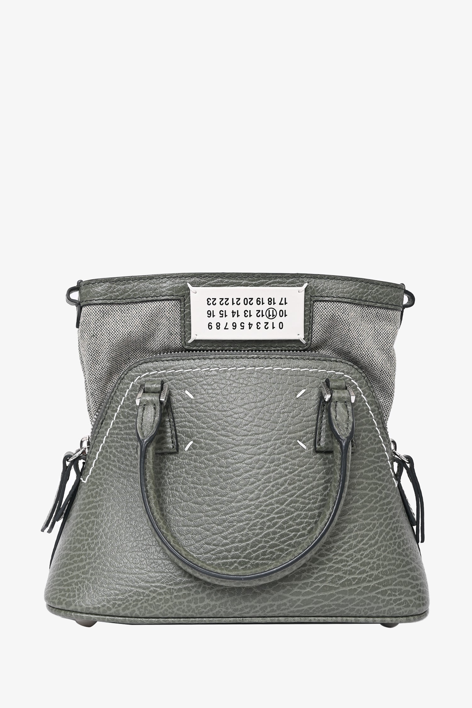 Refresh availabilityMaison Margiela Green Leather/Canvas Micro 5ac Classique Top Handle with Strap. Top zip closure. 4 protective studs on bottom. Silver-tone hardware. Contrast stitching.