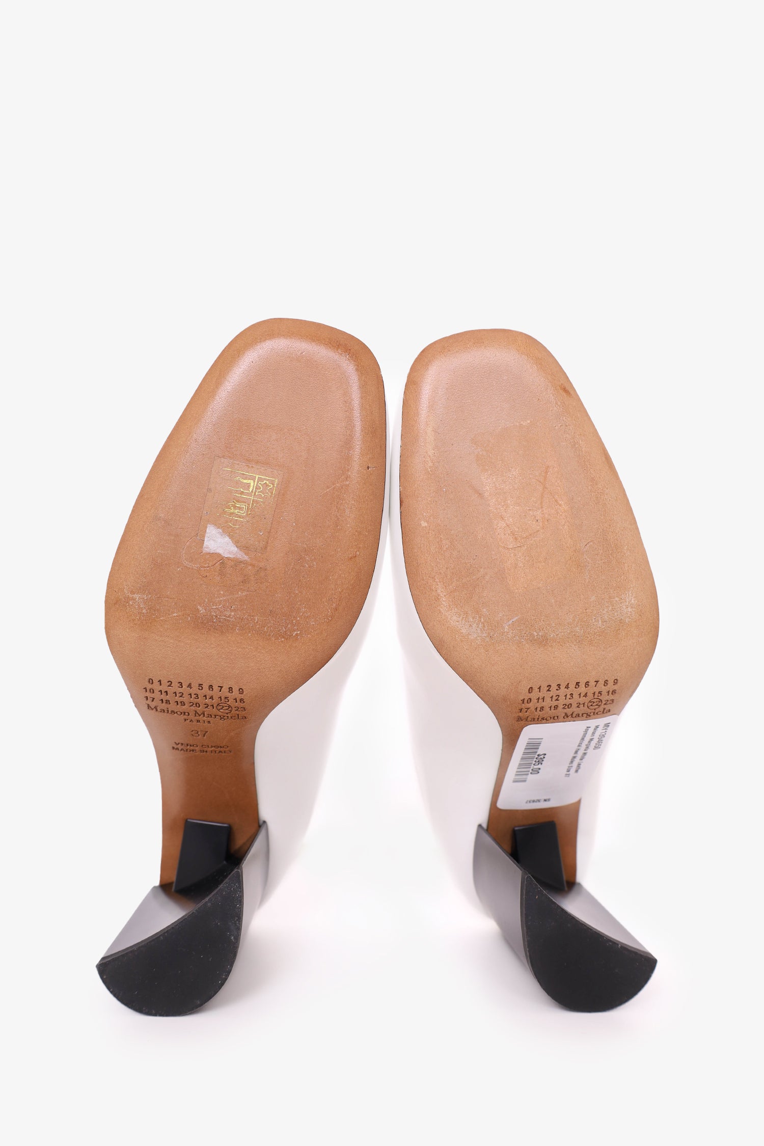 Maison Margiela White Leather Asymmetrical Heel Mules Size 37