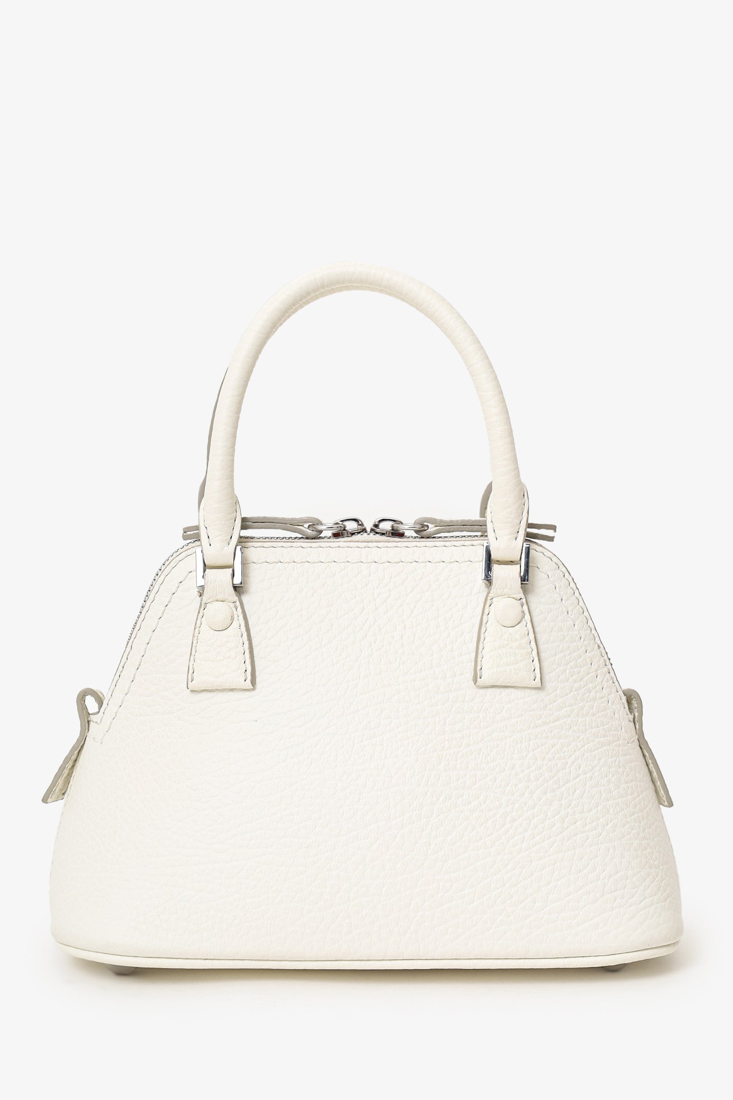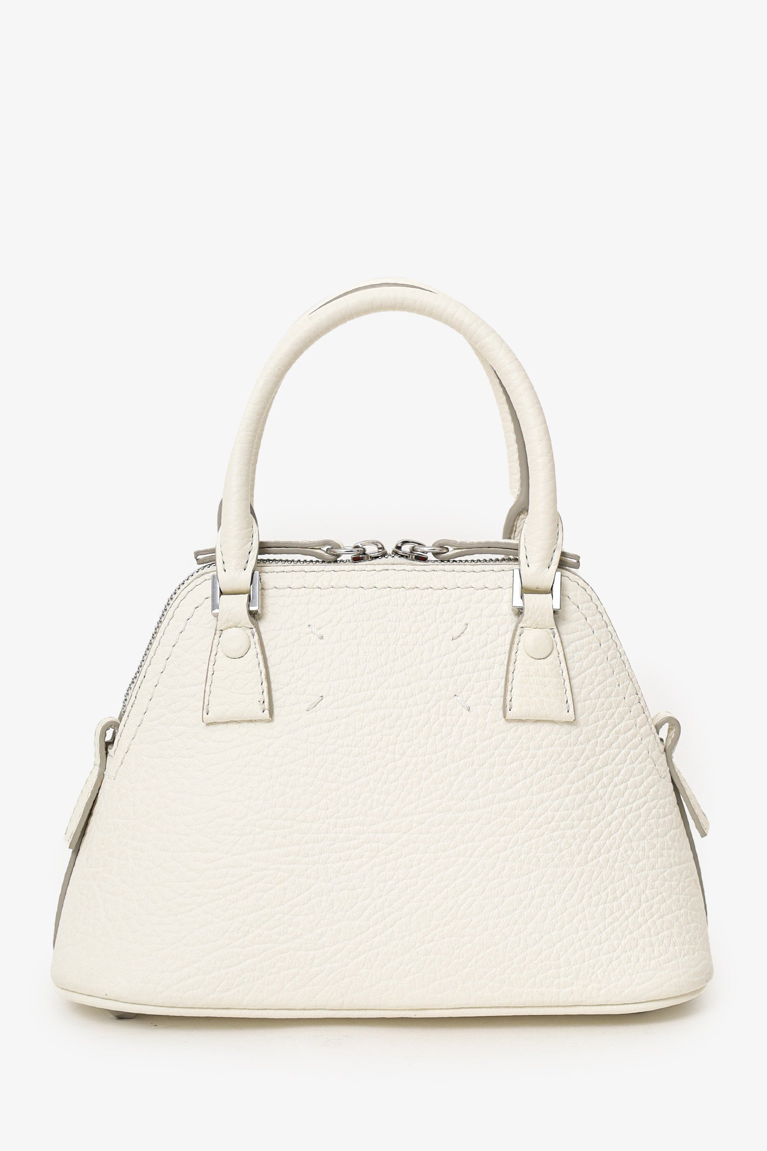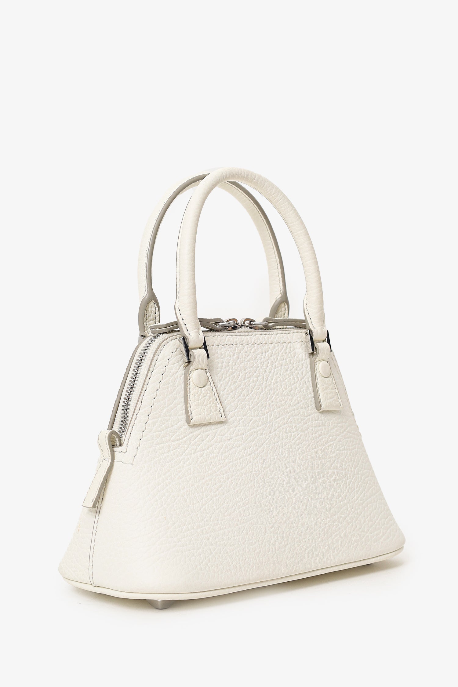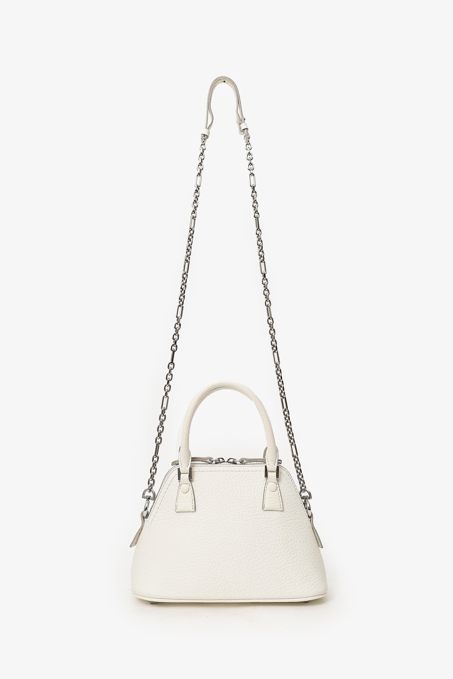 Refresh availabilityMaison Margiela White Leather Micro 5Ac Classique Bag. Top 2-way zip closure. Twin top handles. Removable chainlink crossbody strap. Protective base studs. Lined interior. Silver-tone hardware. Tonal stitching.