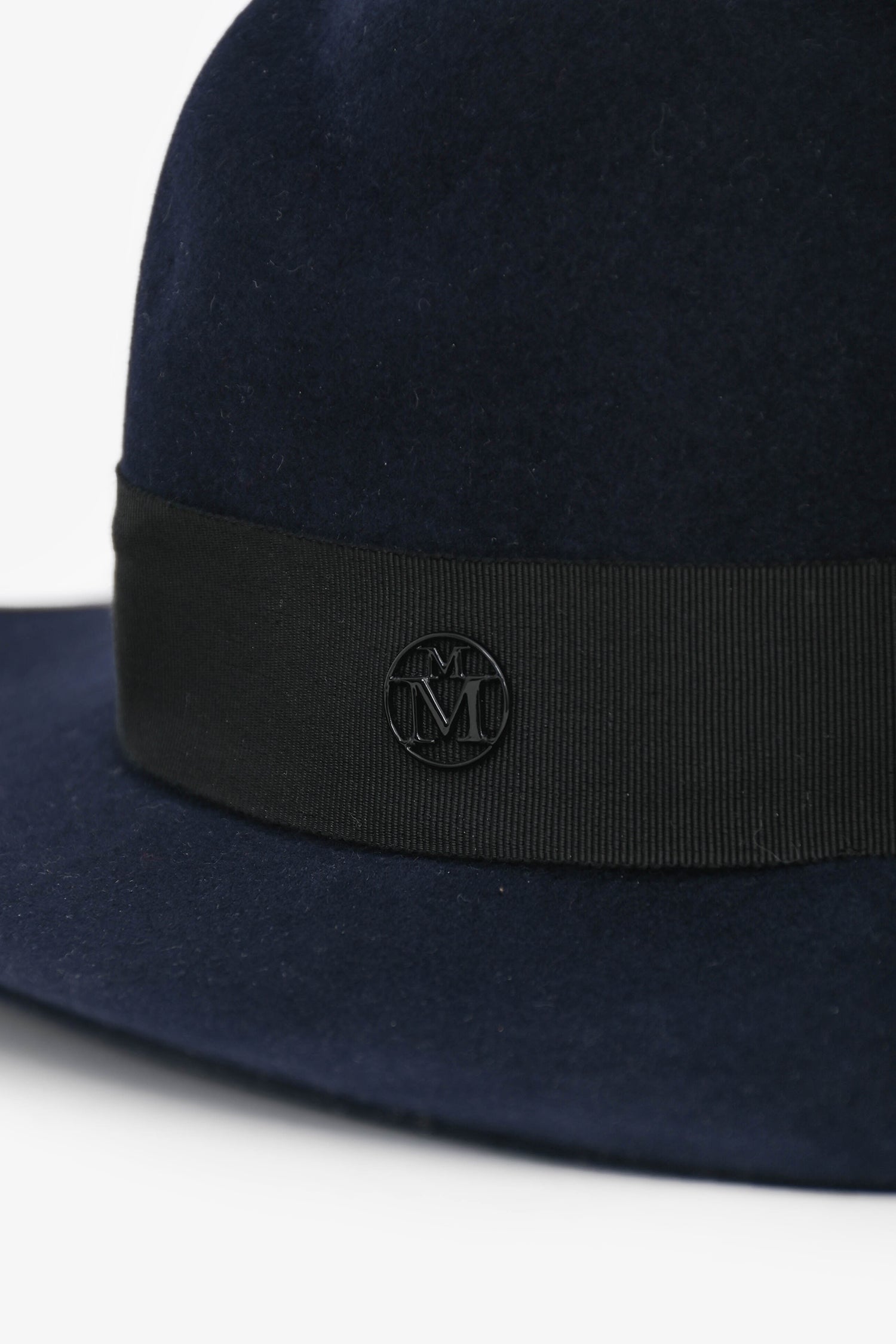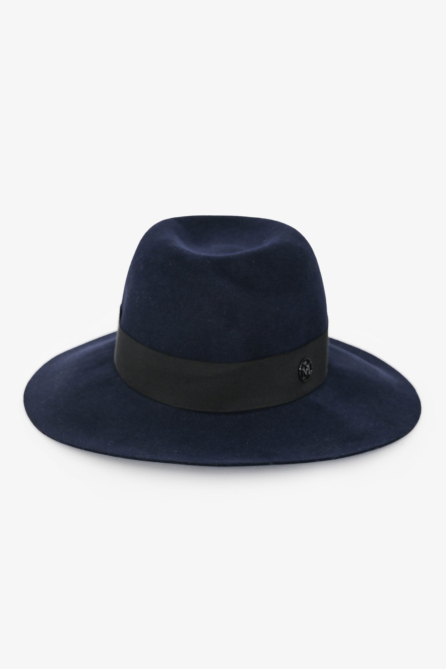 Refresh availabilityMaison Michel Navy Fedora Hat. Slip-on. Grosgrain ribbon trim. Structured brim. Tonal stitching.