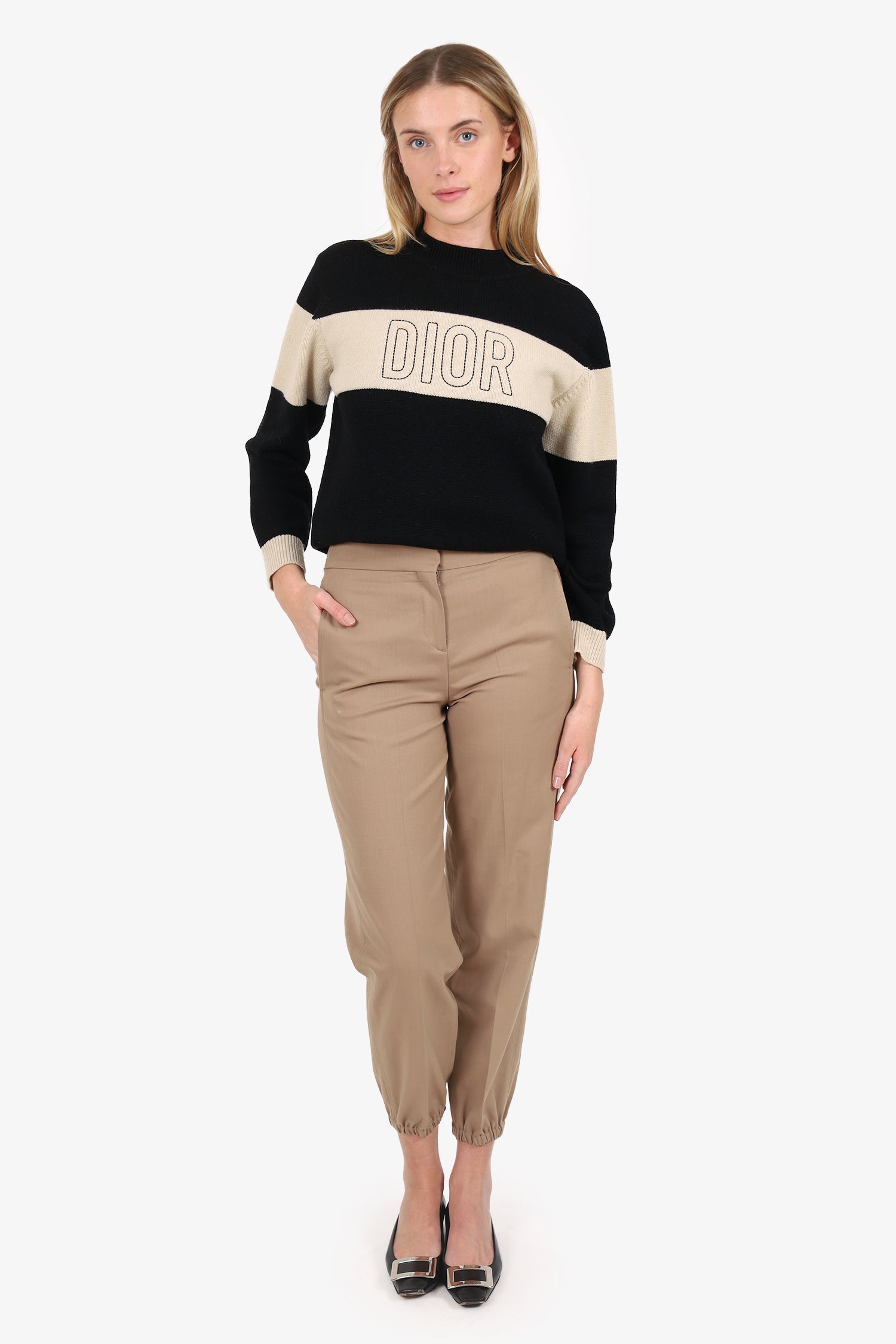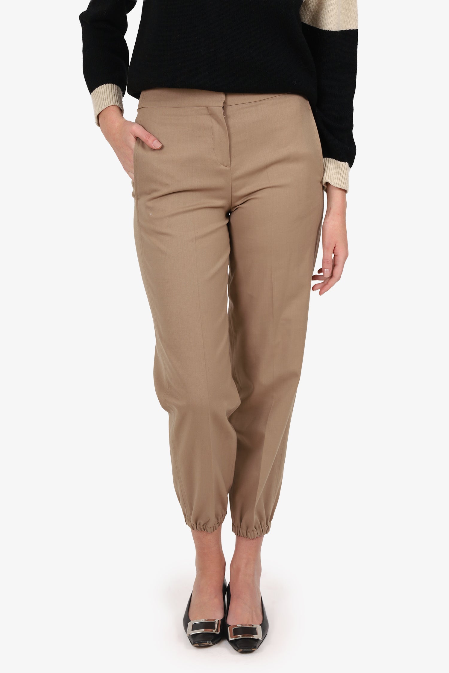 Refresh availabilityMaje Beige Elastic Hem Pants. Pull on. Front zip with hook and button-up closure. Elasticated waistband and ankle cuffs. 2 exterior slip pockets. Silver-tone hardware. Tonal stitching.