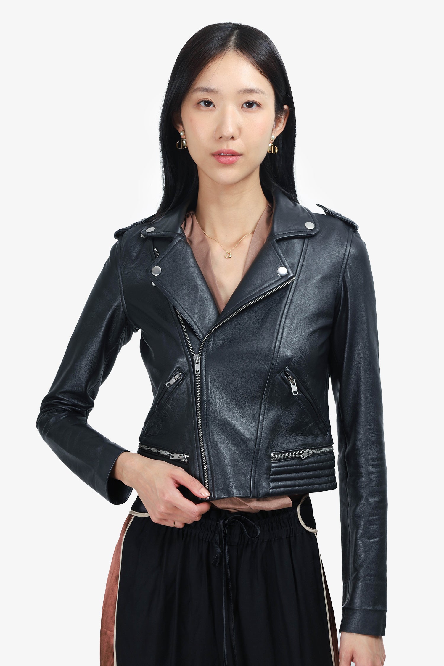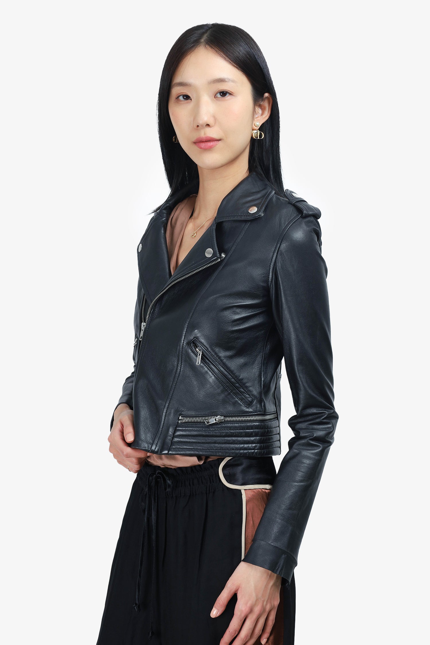 Refresh availabilityMaje Black Leather Biker Jacket. Front zip closure. Two front pockets. Silver-tone hardware. Unlined. Tonal stitching.