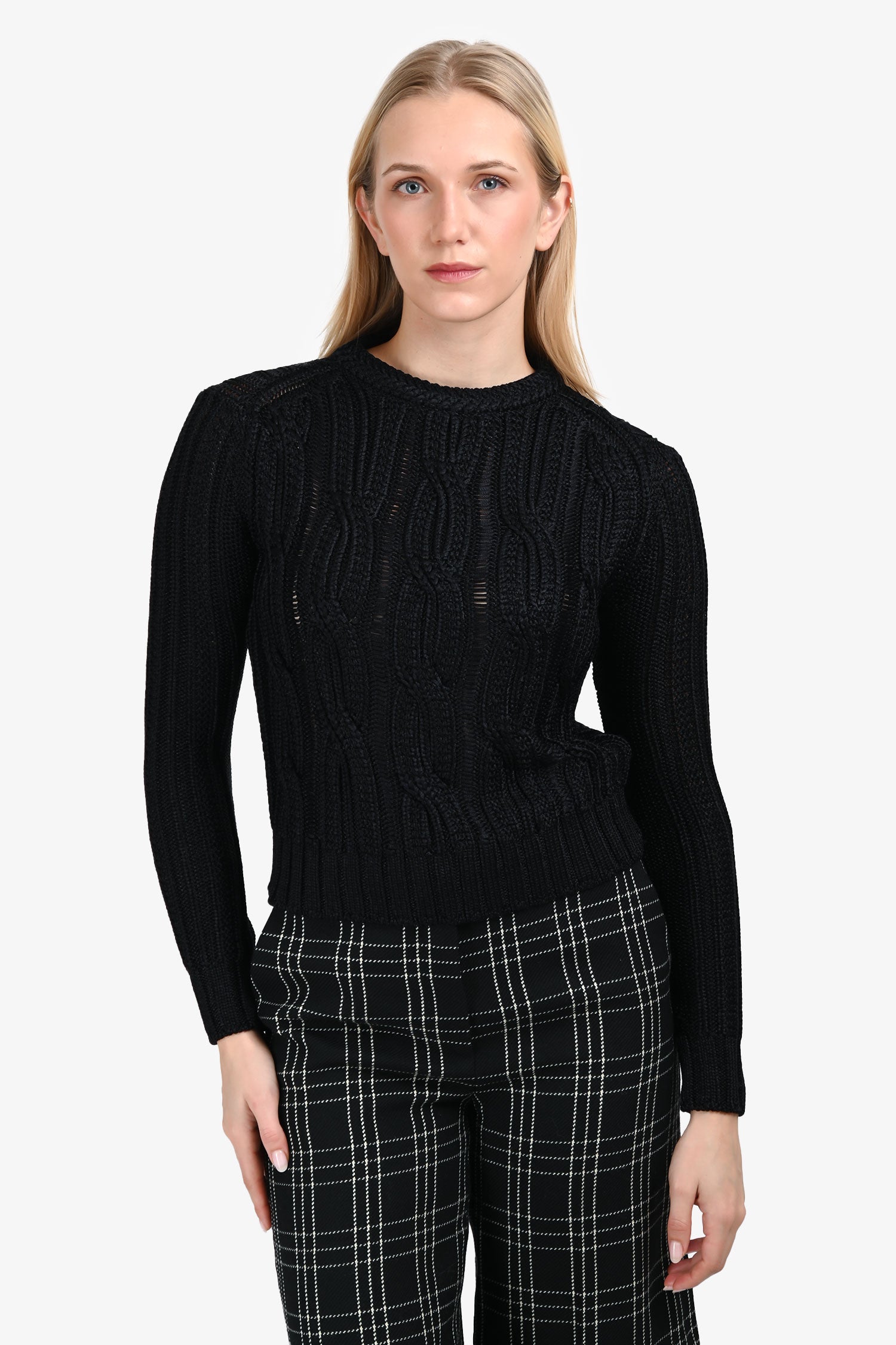 Refresh availabilityMaje Black Cable-Knit Sweater. Crew neckline. Tonal stitching.