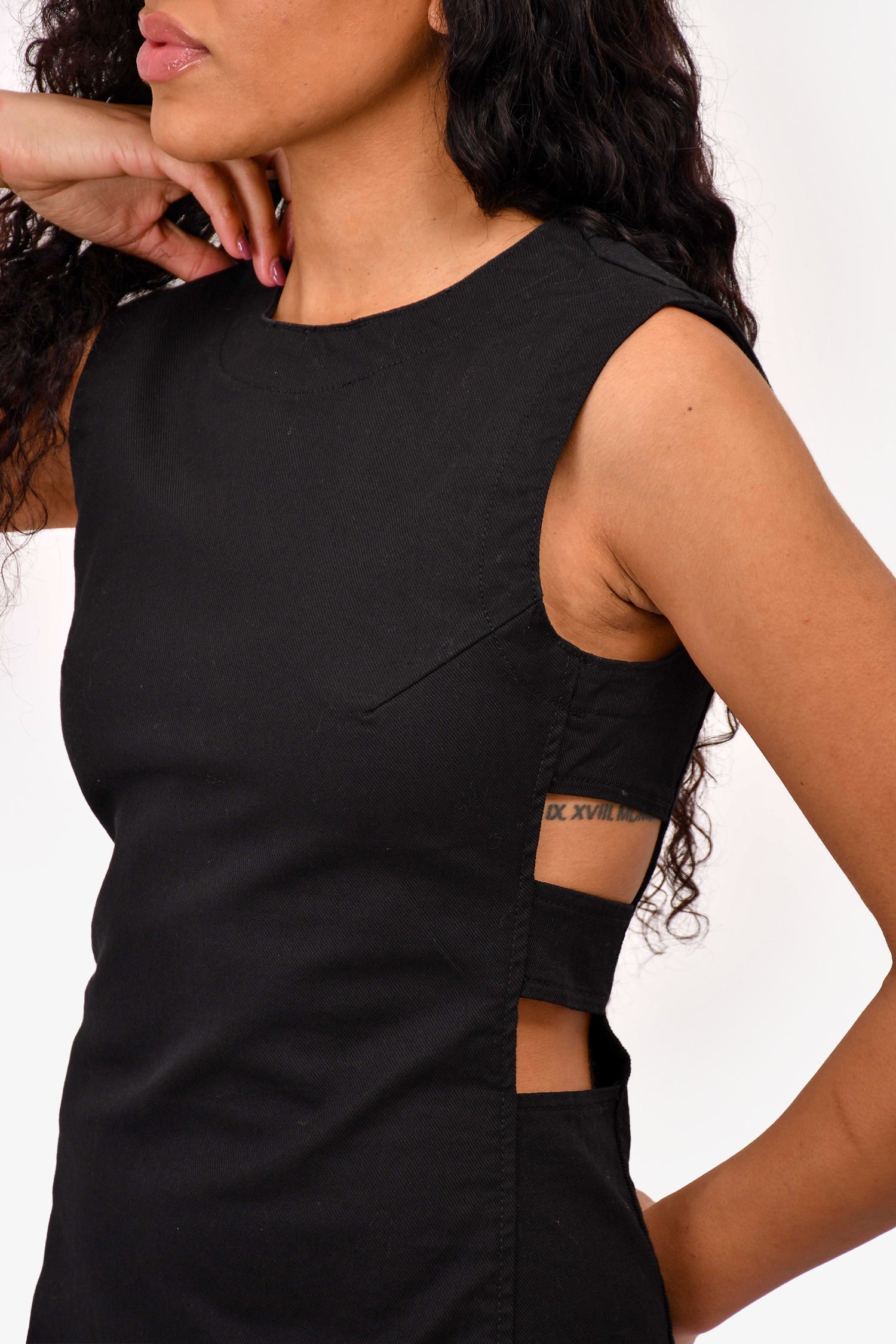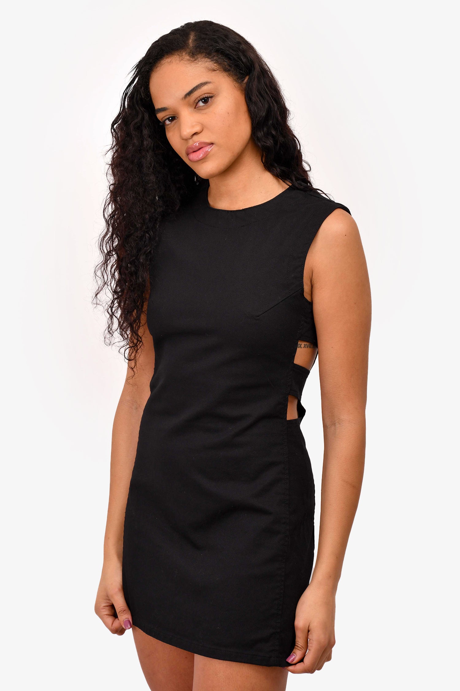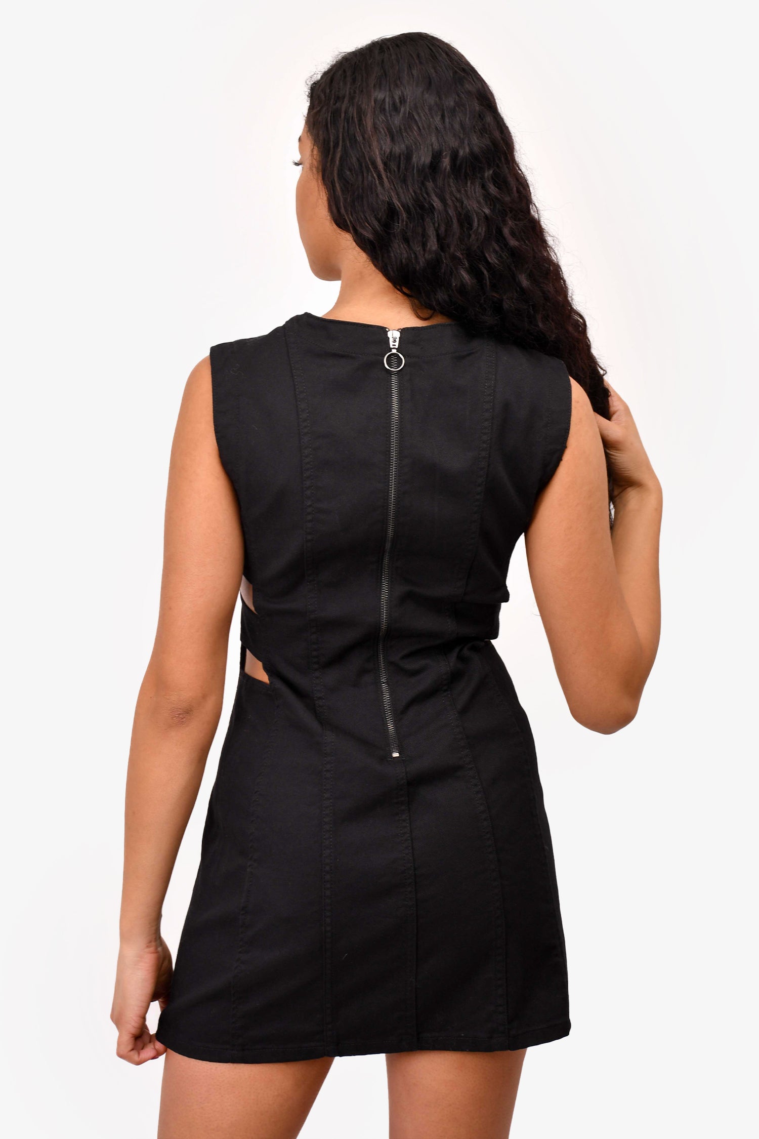 Refresh availabilityMaje Black Denim Cut Out Mini Dress. Back zip closure with pull tab. Tonal stitching.