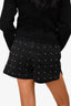 Refresh availabilityMaje Black Denim Studded Short. Elasticized waist with tie-up closure. Front pockets.