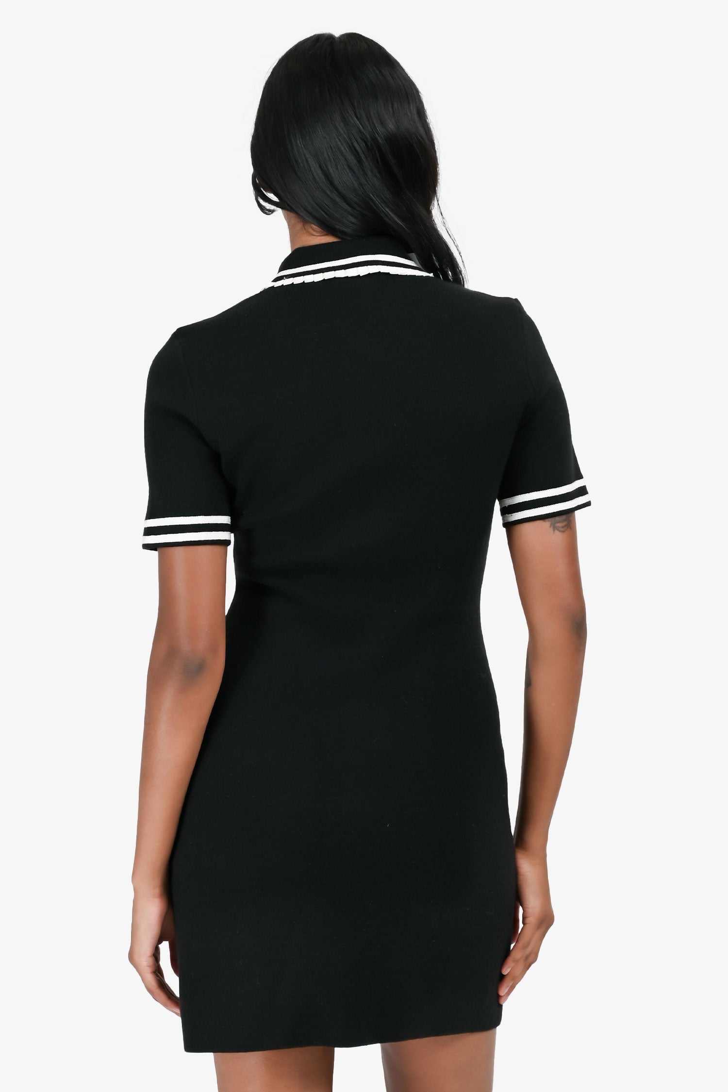Maje Black Knit Faux Pearl Button Up Mini Dress Size 34