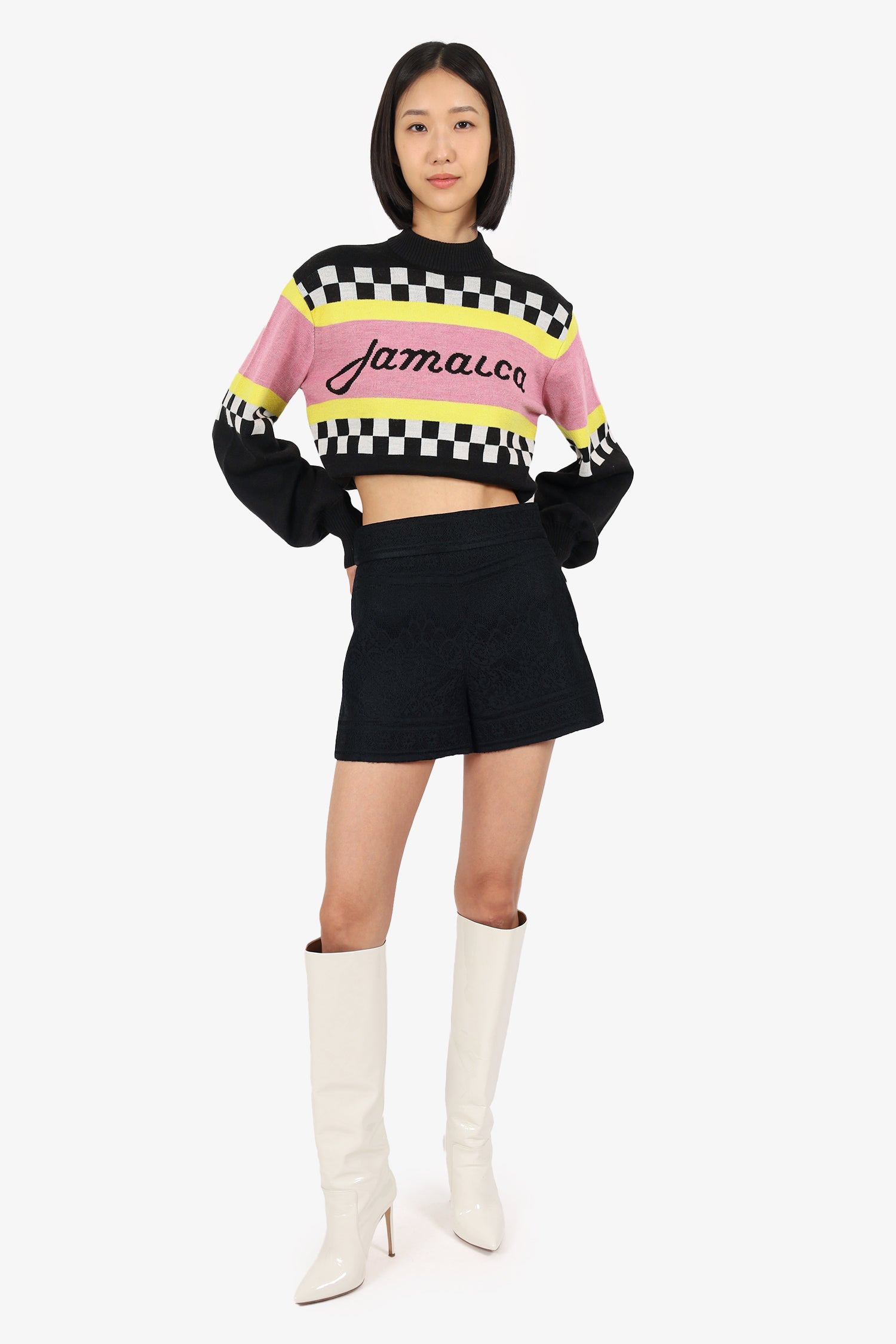 Refresh availabilityMaje Black Lace High Waisted Shorts. Slip-on. Side zip closure. Tonal stitching.