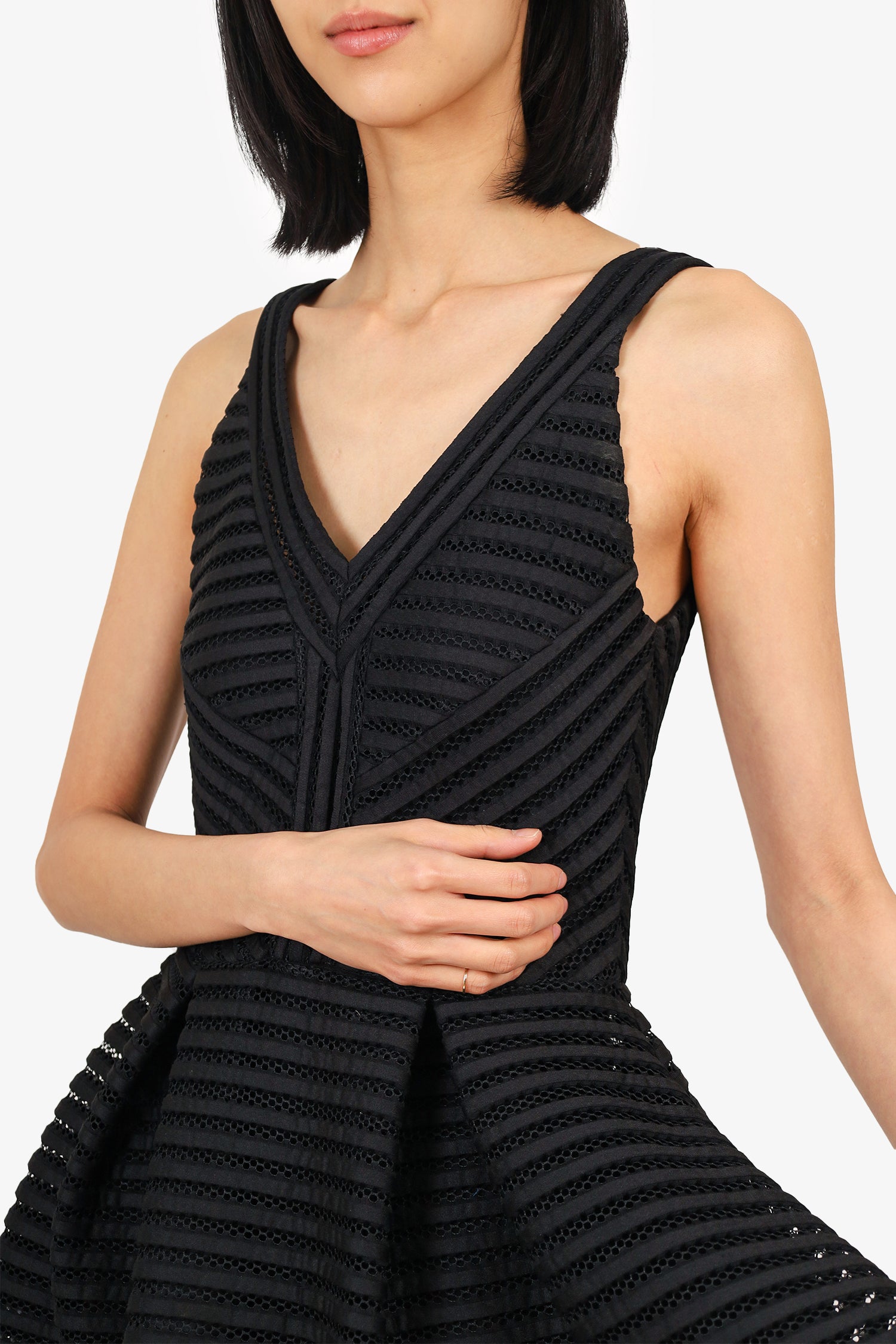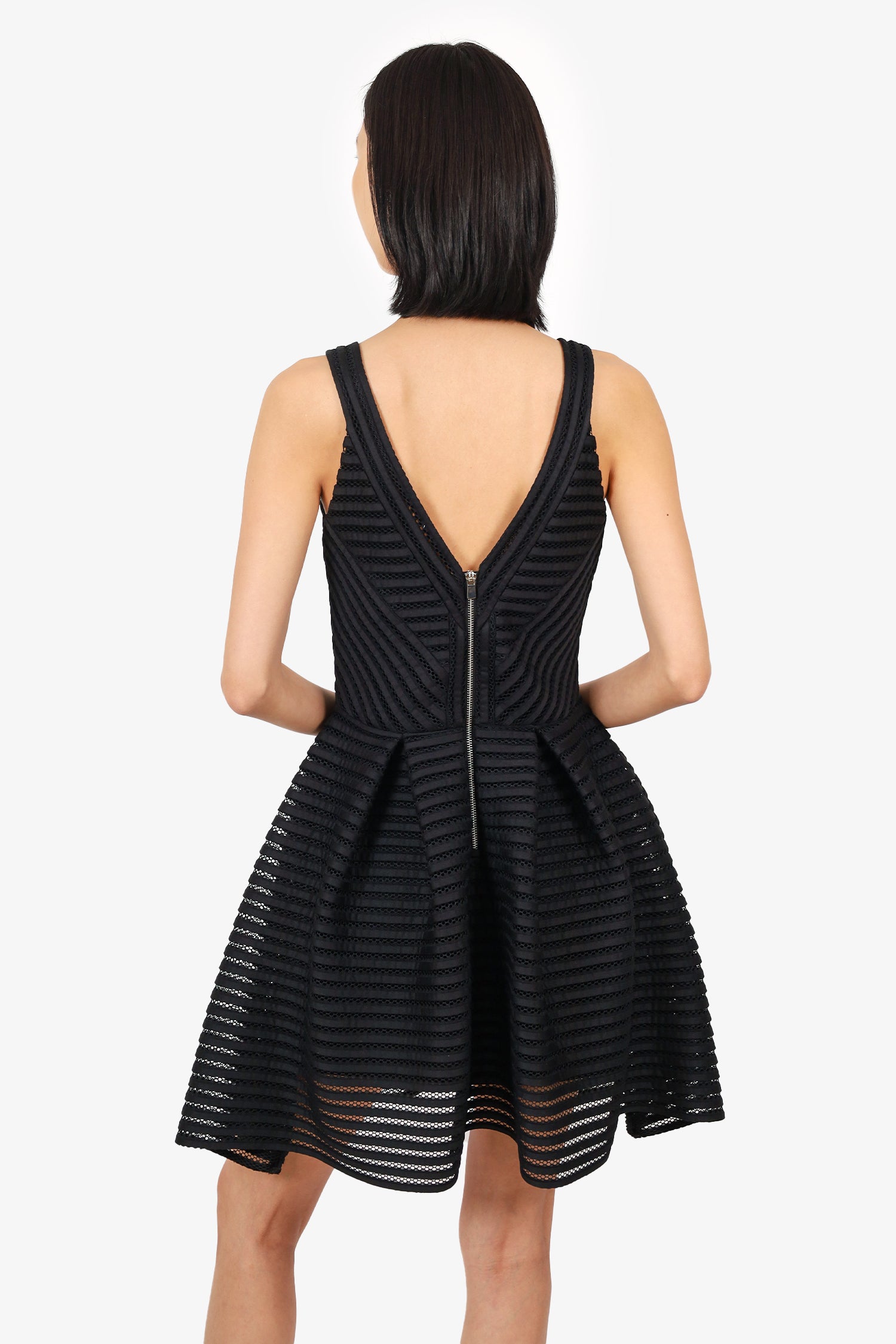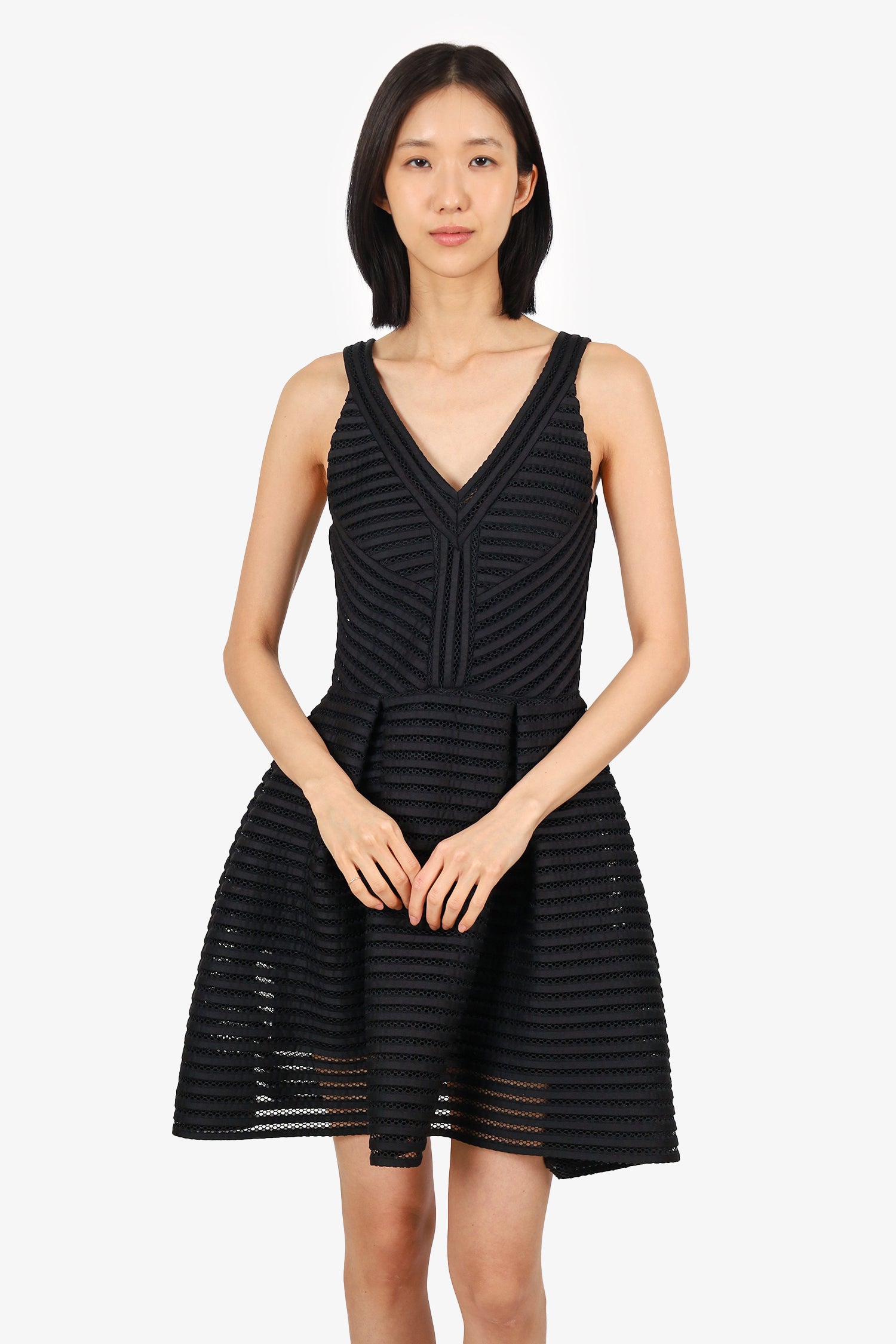 Refresh availabilityMaje Black Lace V-Neck Dress. Sleeve-less. Rear zip closure. Tonal stitching.