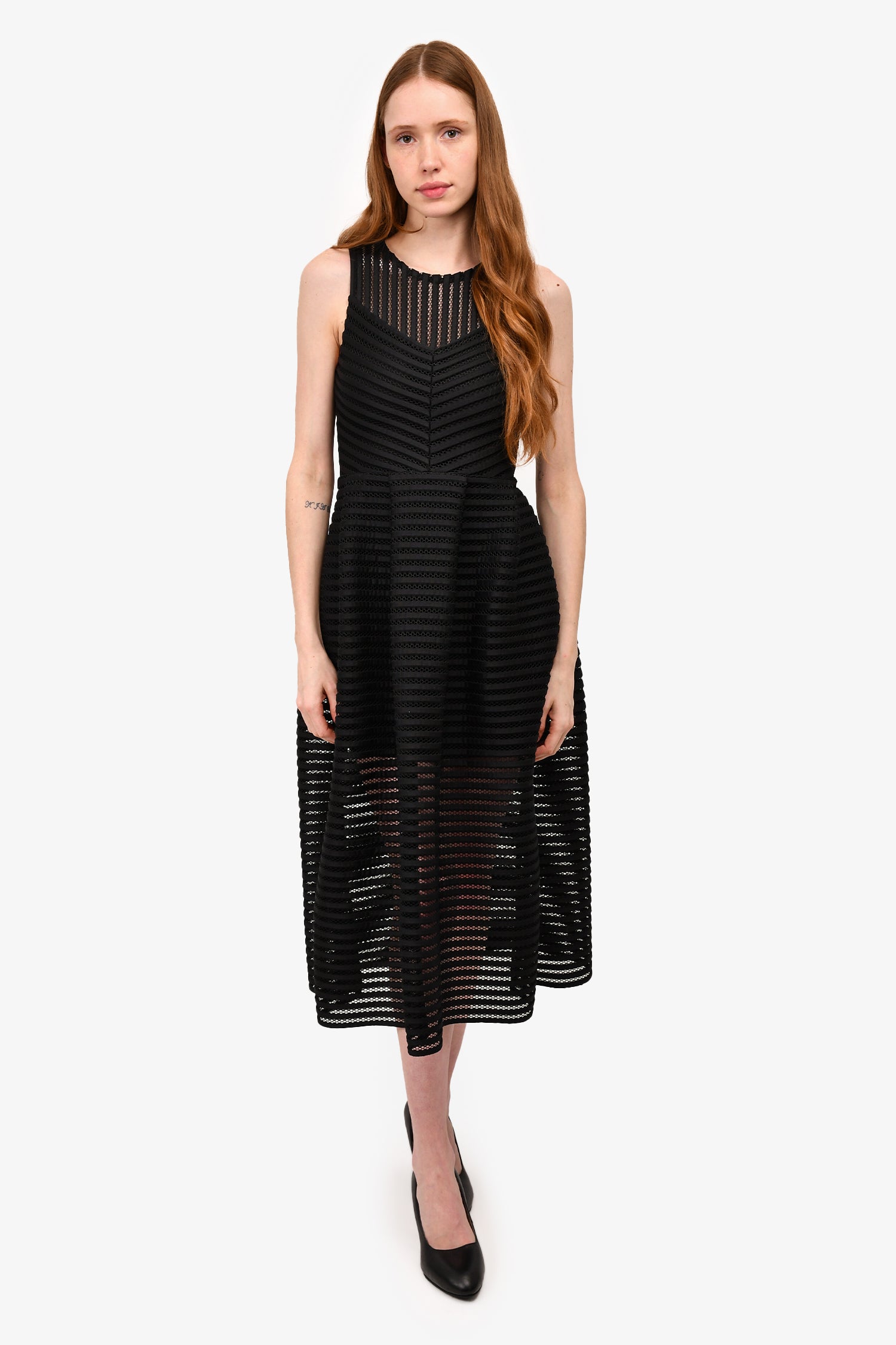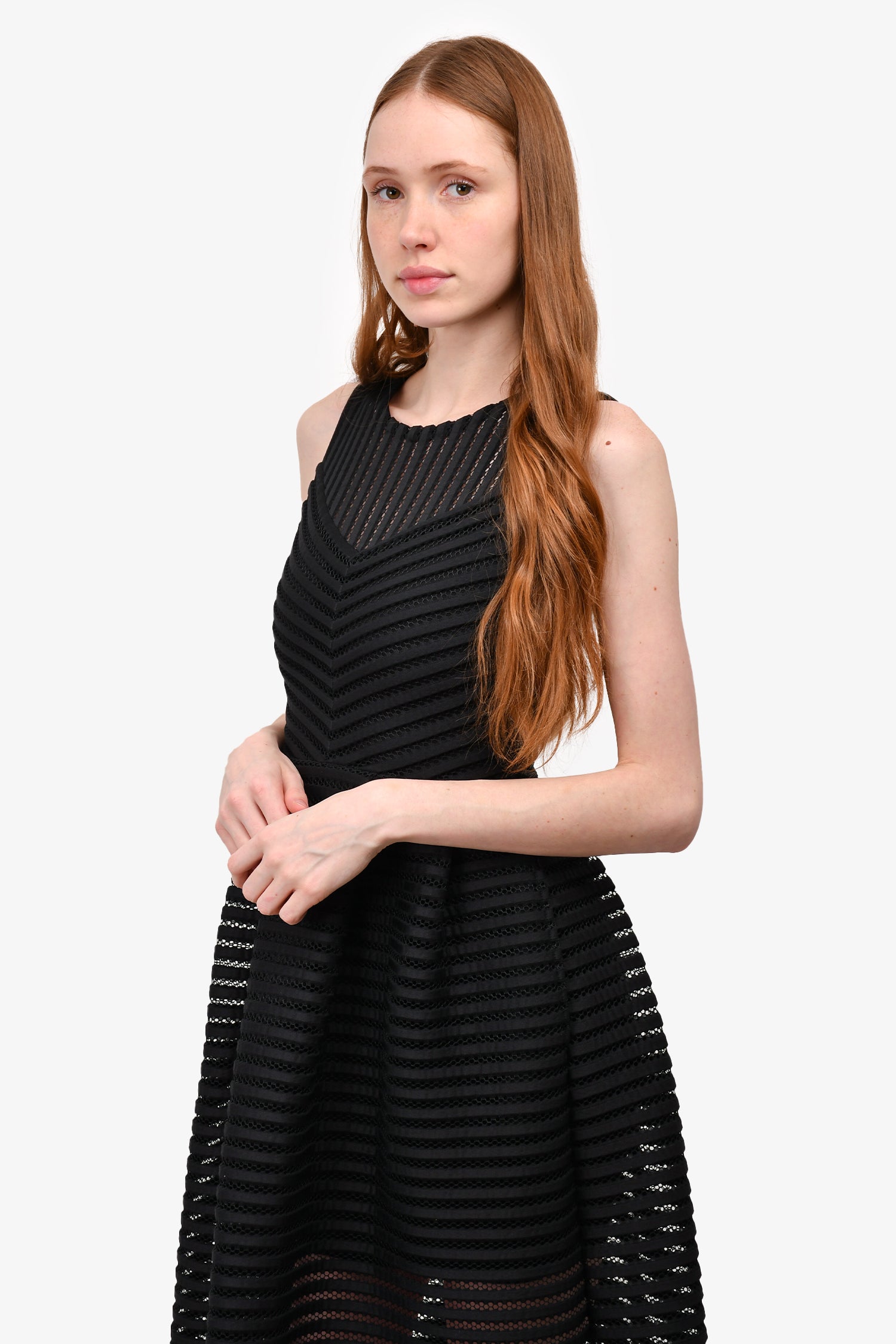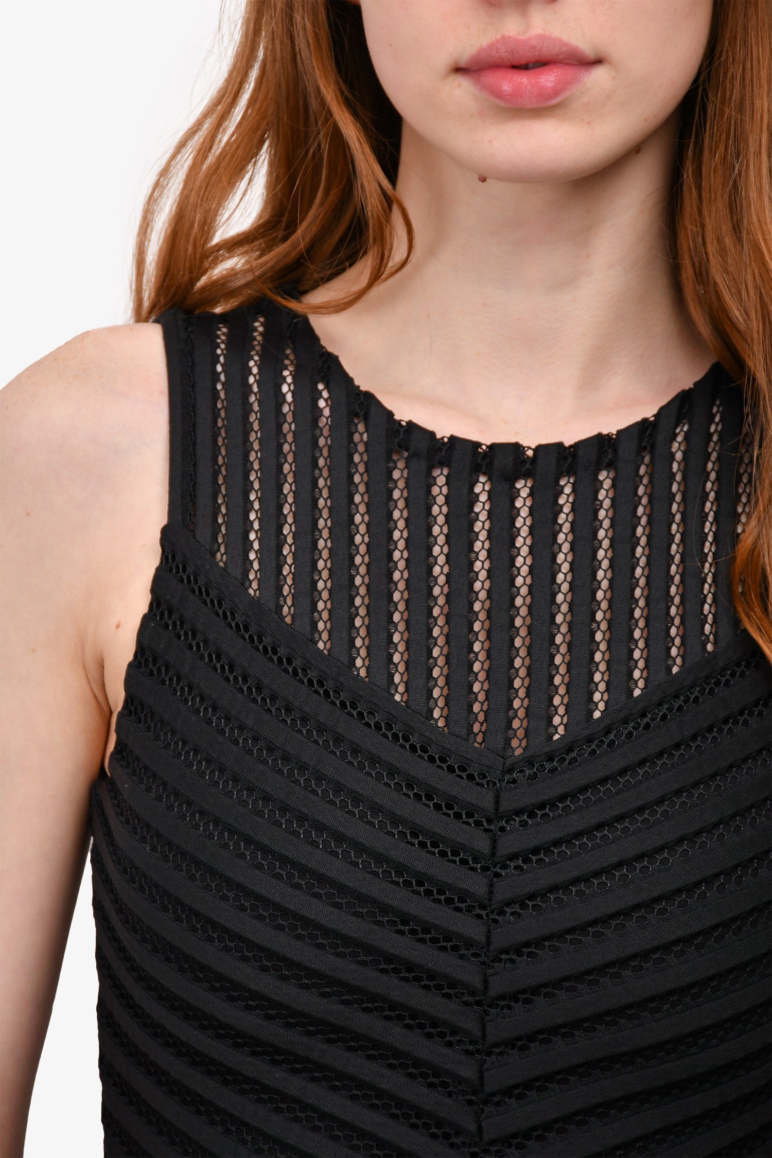 Refresh availabilityMaje Black Lazer-Cut Detail Sleeveless Maxi Dress. Rear zip up closure. Tonal stitching.