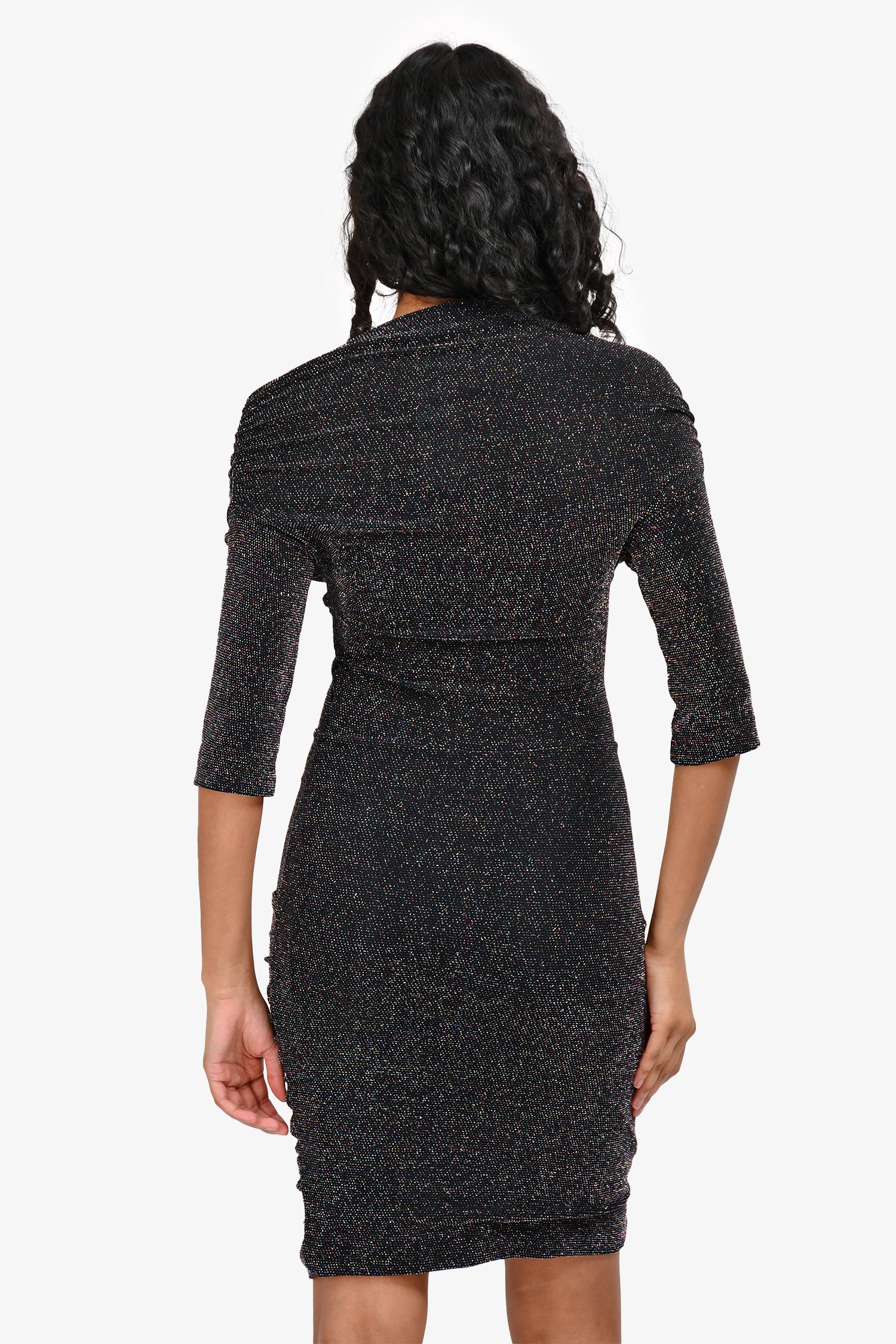 Refresh availabilityMaje Black Metallic Off The Shoulder Dress. Short sleeve design. Fully lined interior. Slip-on. Tonal stitching.