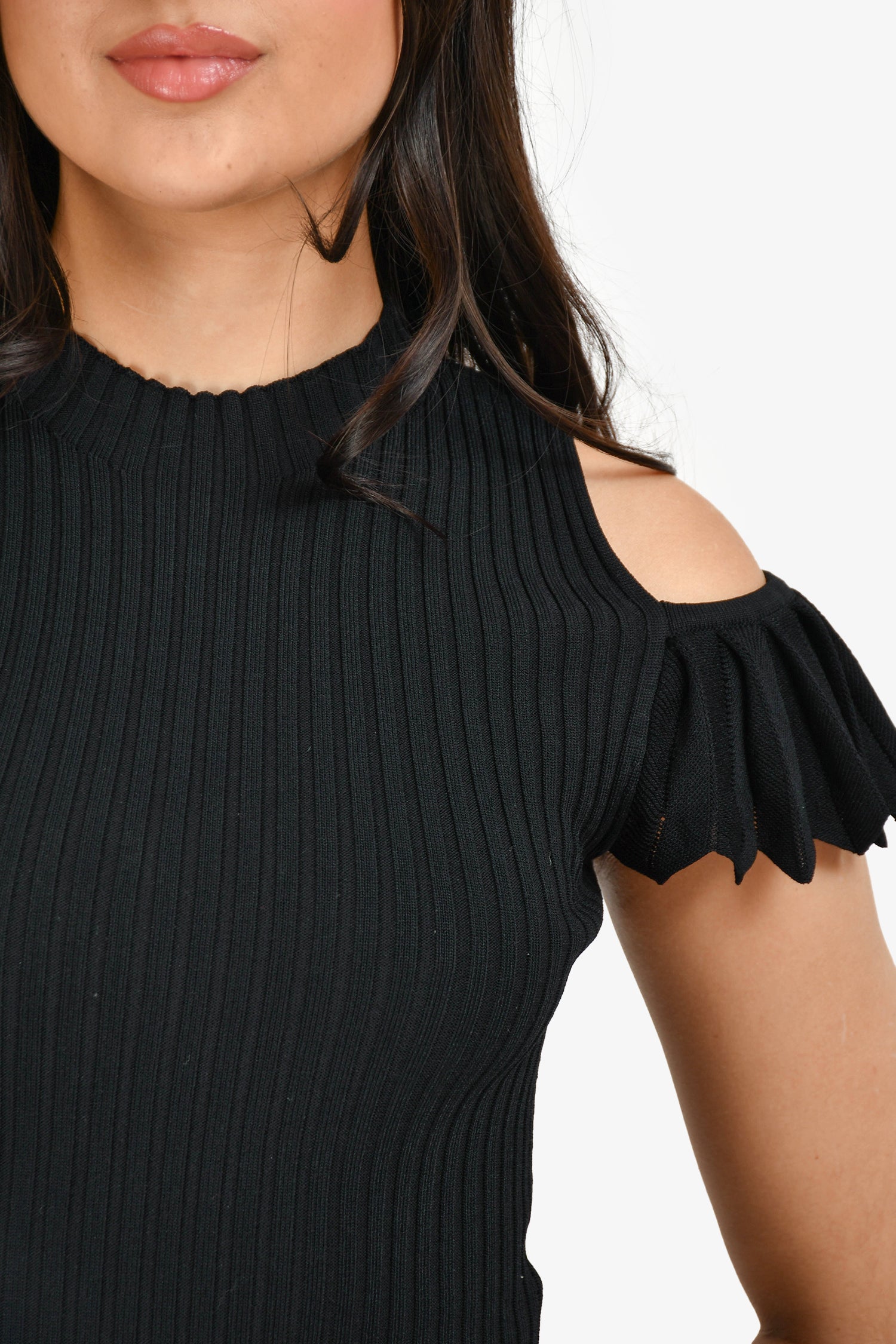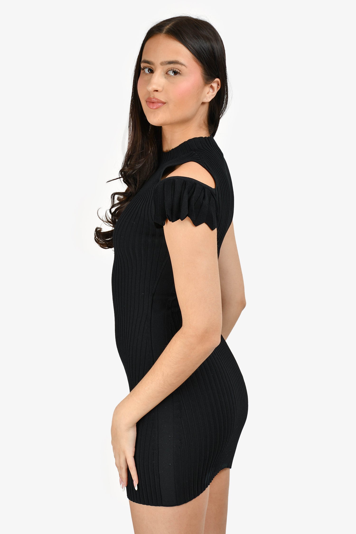 Maje Black Ribbed Knit Off Shoulder Mini Dress Size 1