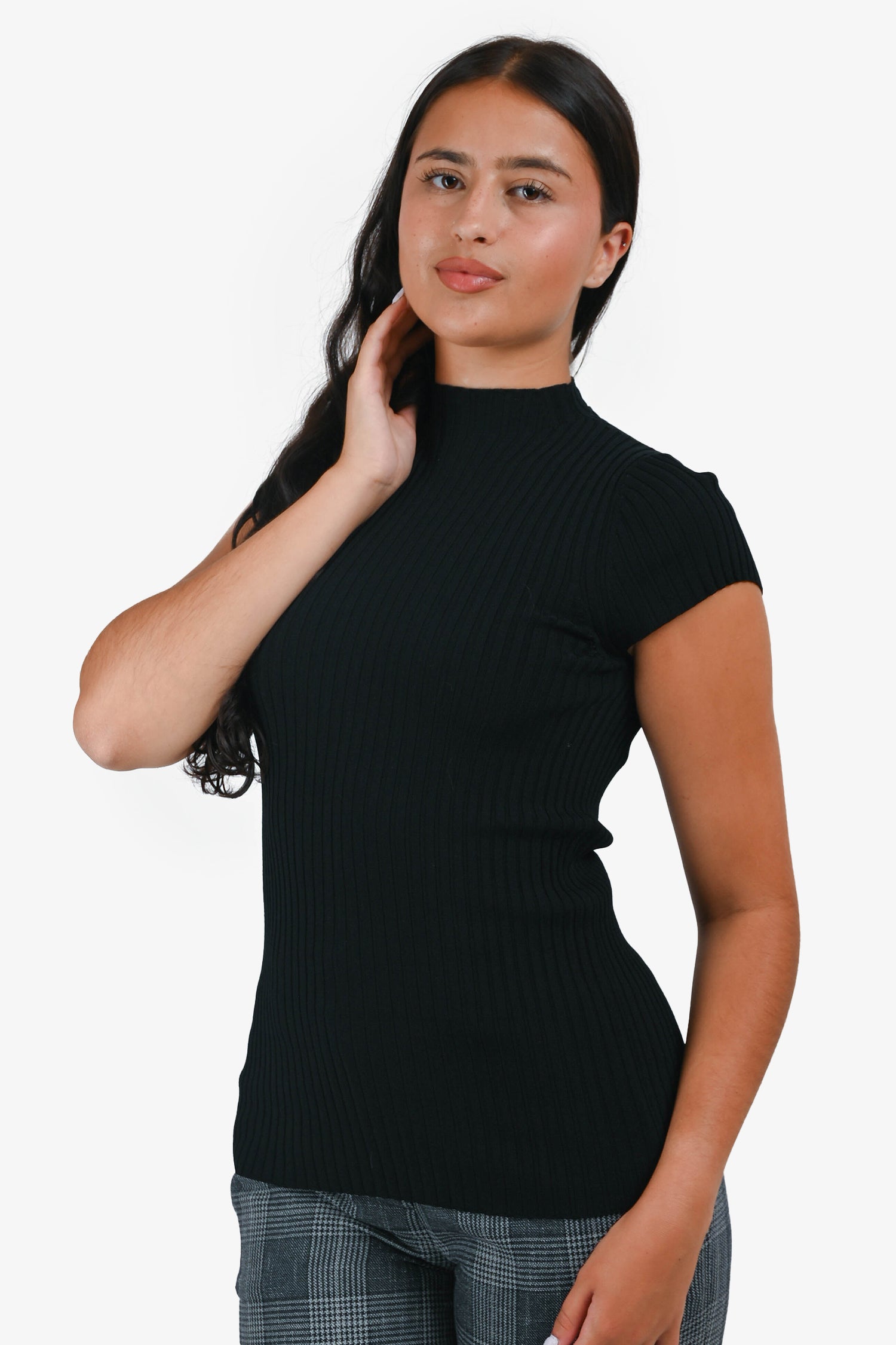 Refresh availabilityMaje Black Ribbed Mock Neck Top. Pull-on.