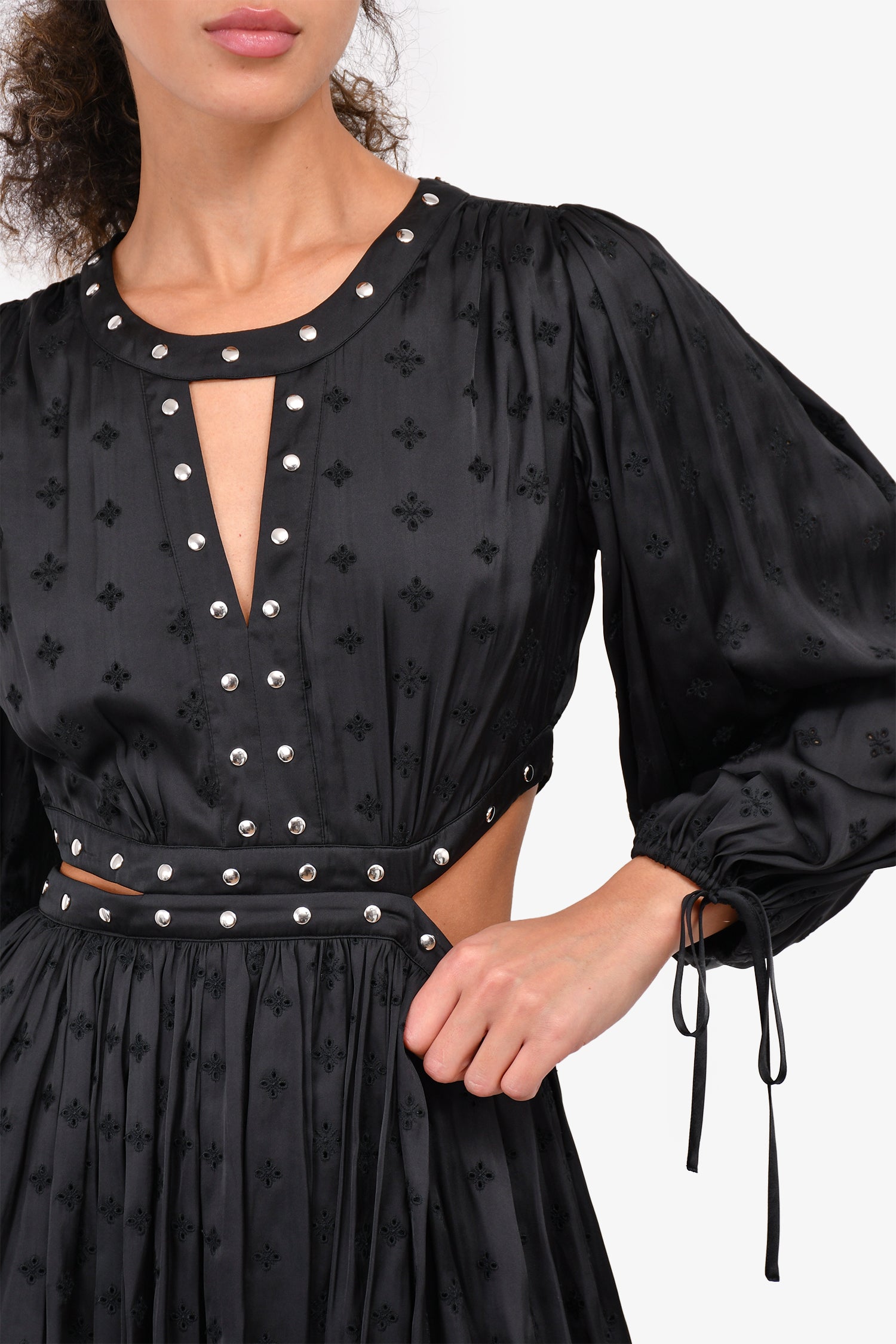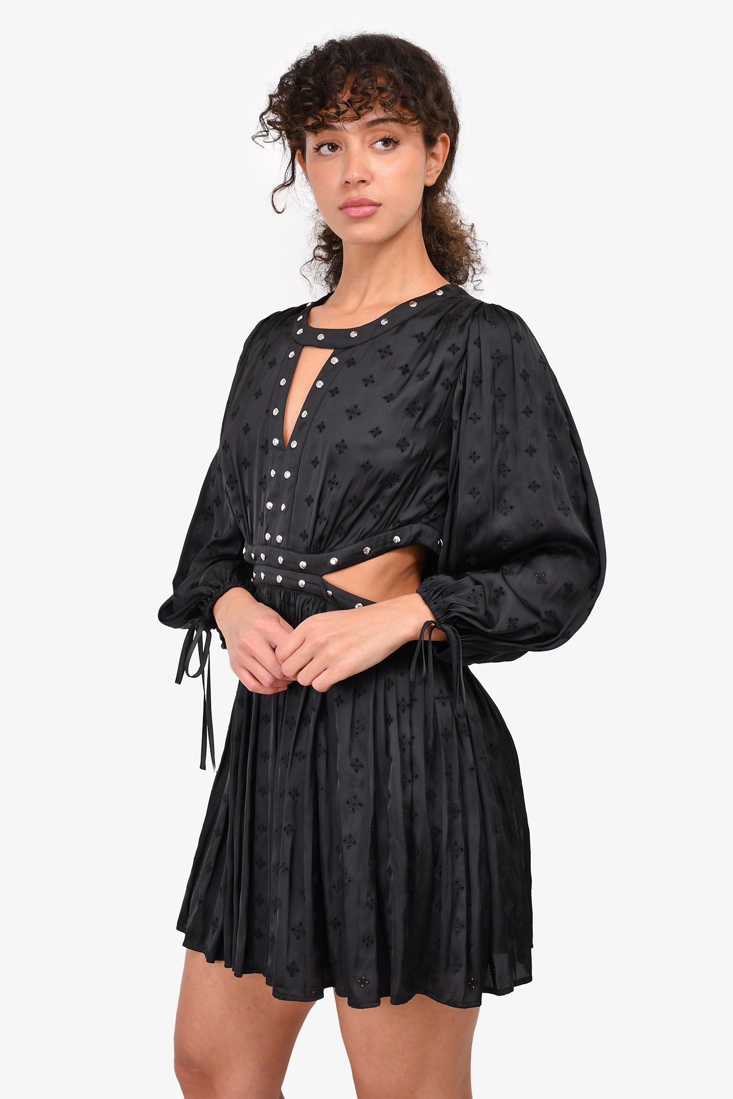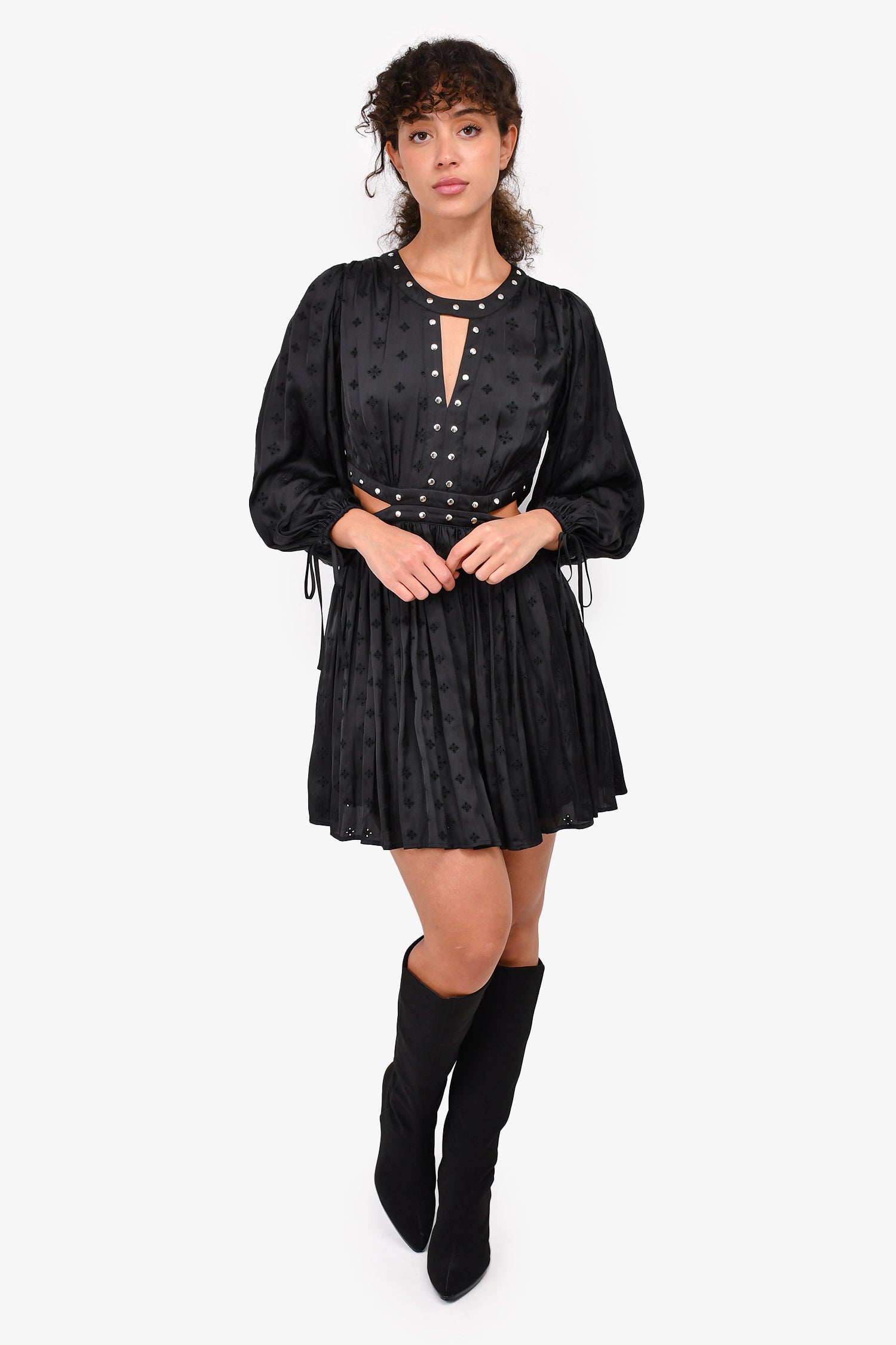 Maje Black Satin Eyelet Studded Cut Out Mini Dress Size 36