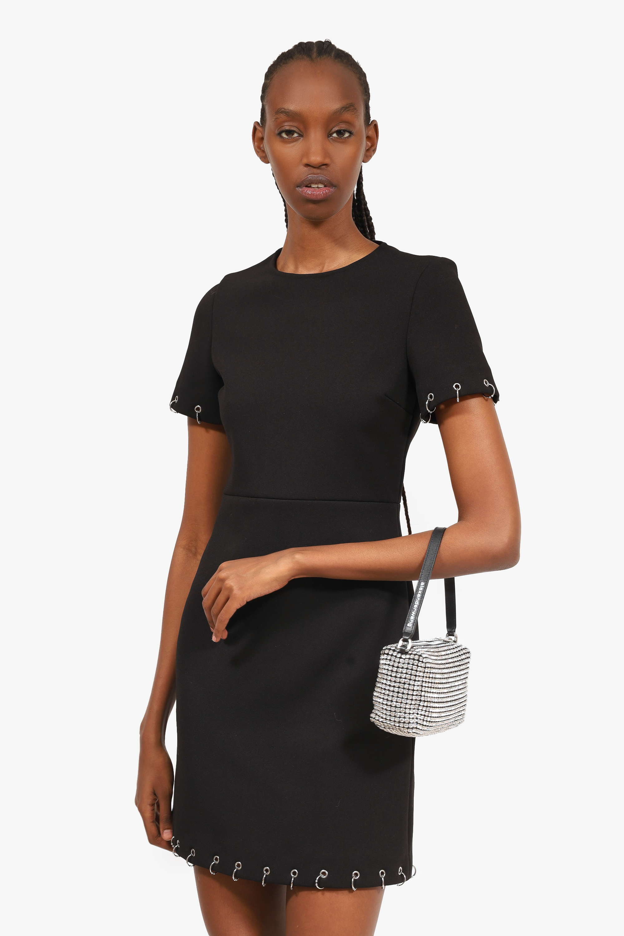 Refresh availabilityMaje Black Sheath Dress With Silver-Toned Ring Embellishment. Back zip closure. Silver-tone hardware. Ring embellishment along sleeve and bottom hems. Unlined. Tonal stitching.