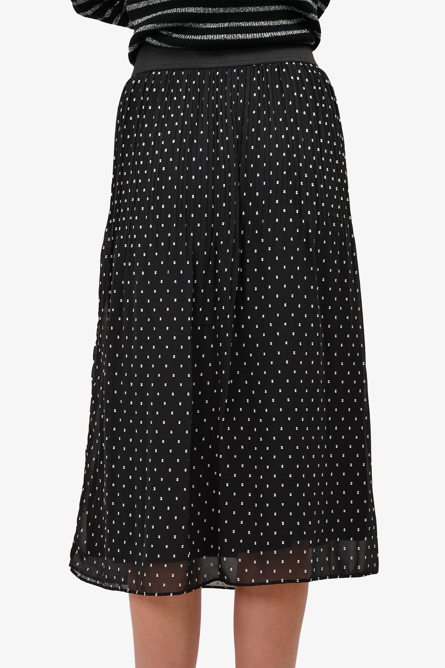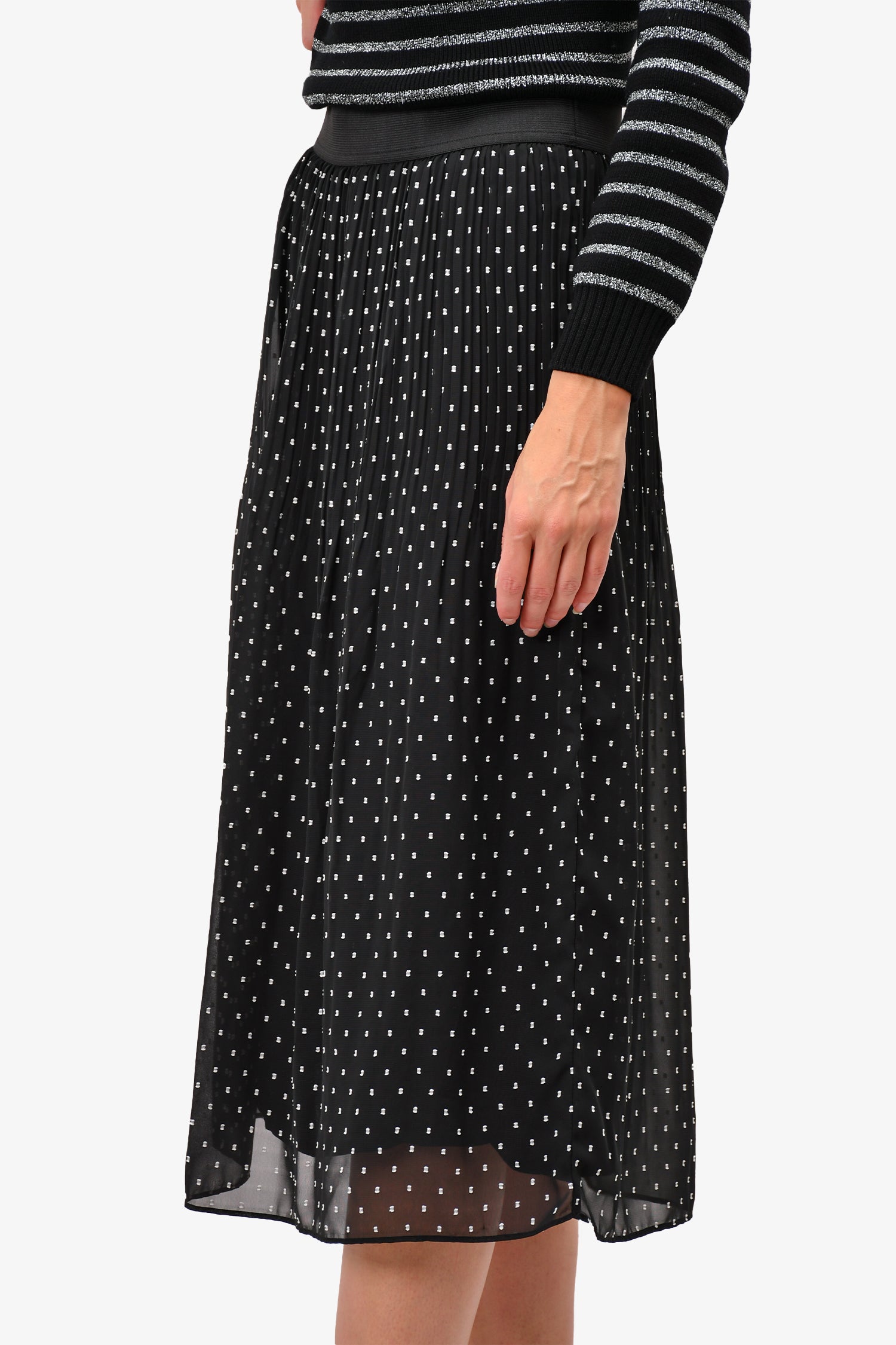 Refresh availabilityMaje Black/White Pleated Midi Skirt. Elastic waistband. Pleated from the waist down. Tonal stitching.