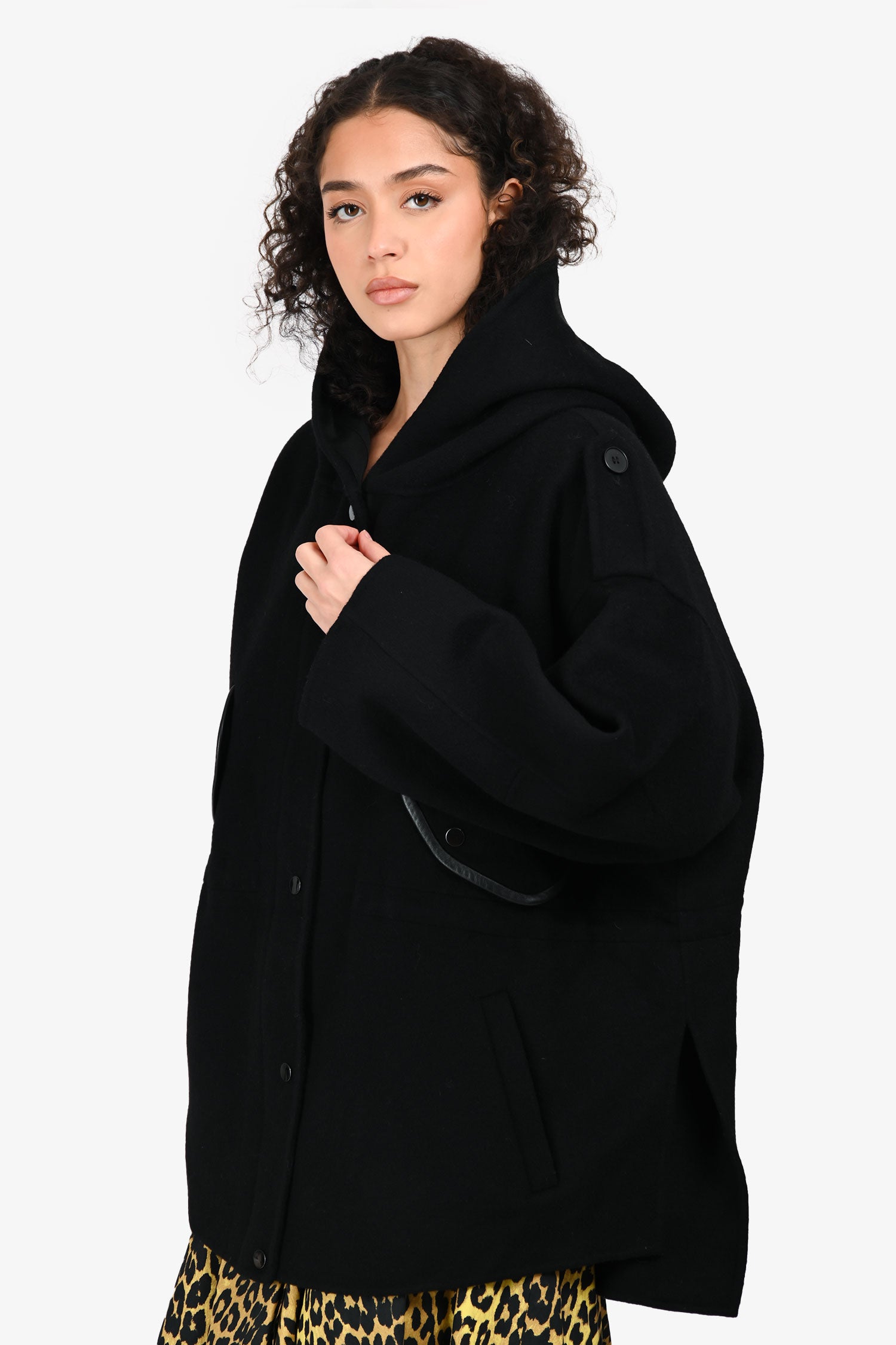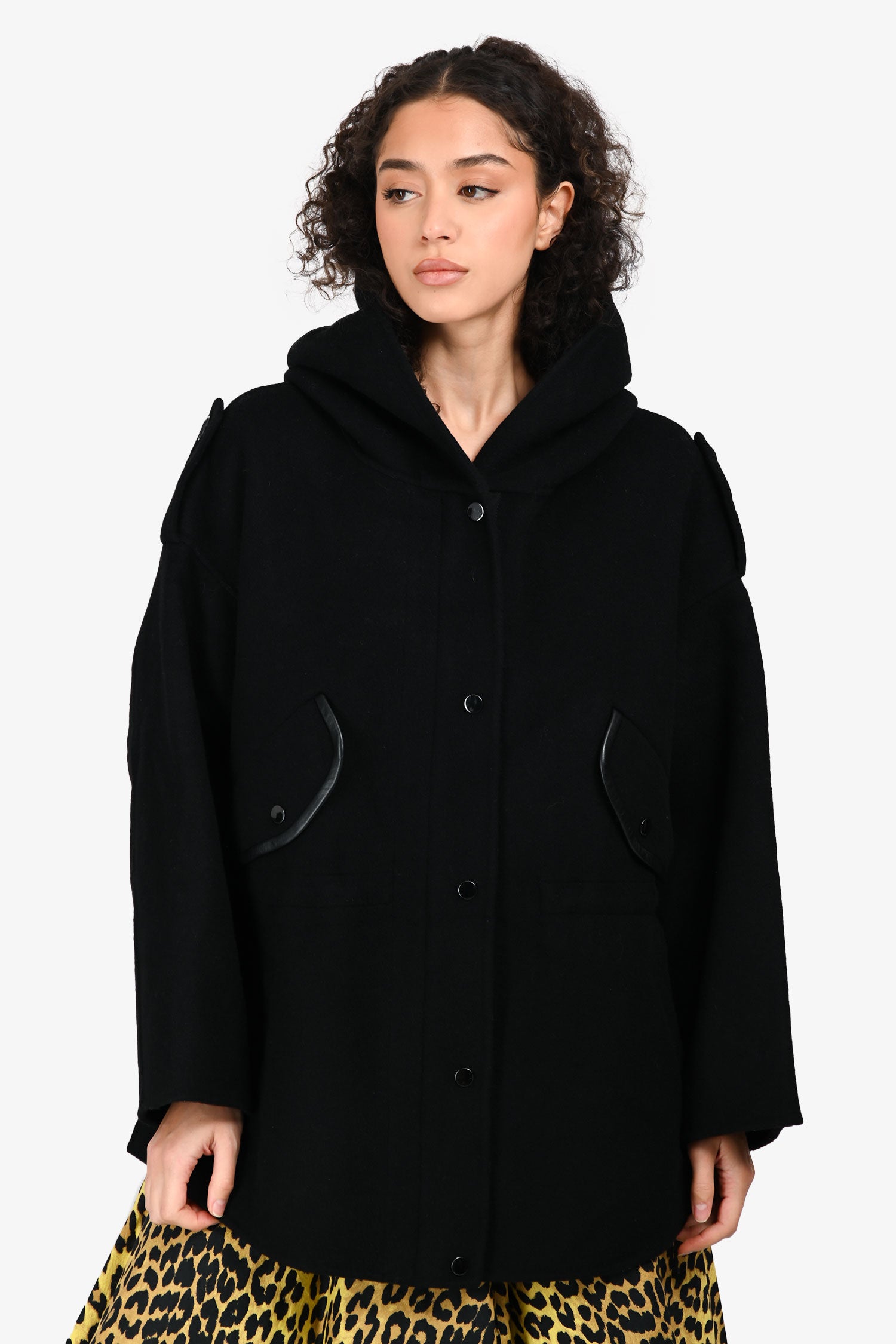 Refresh availabilityMaje Black Wool Blend Zip Closure Jacket. Slip-on. Front zip and snap-button closures. 2 pockets with fold-over flap and snap-button closure. Tonal stitching.