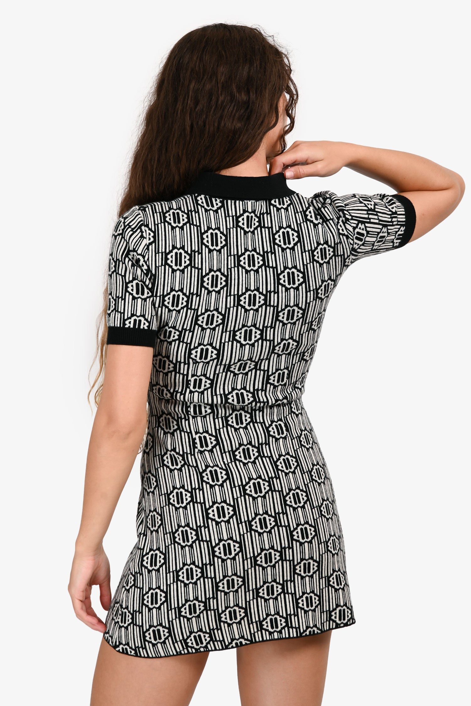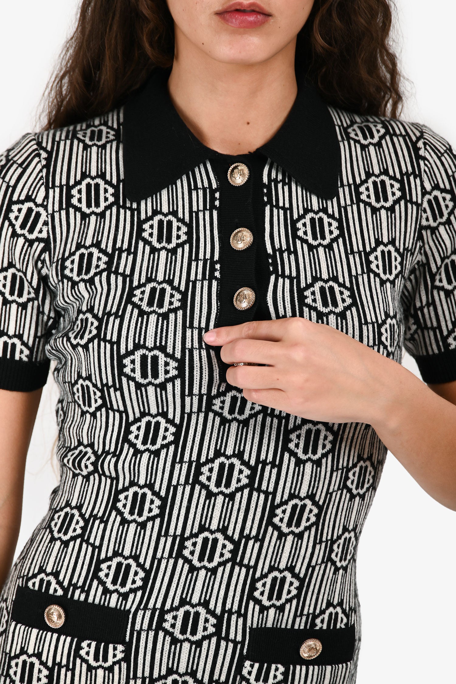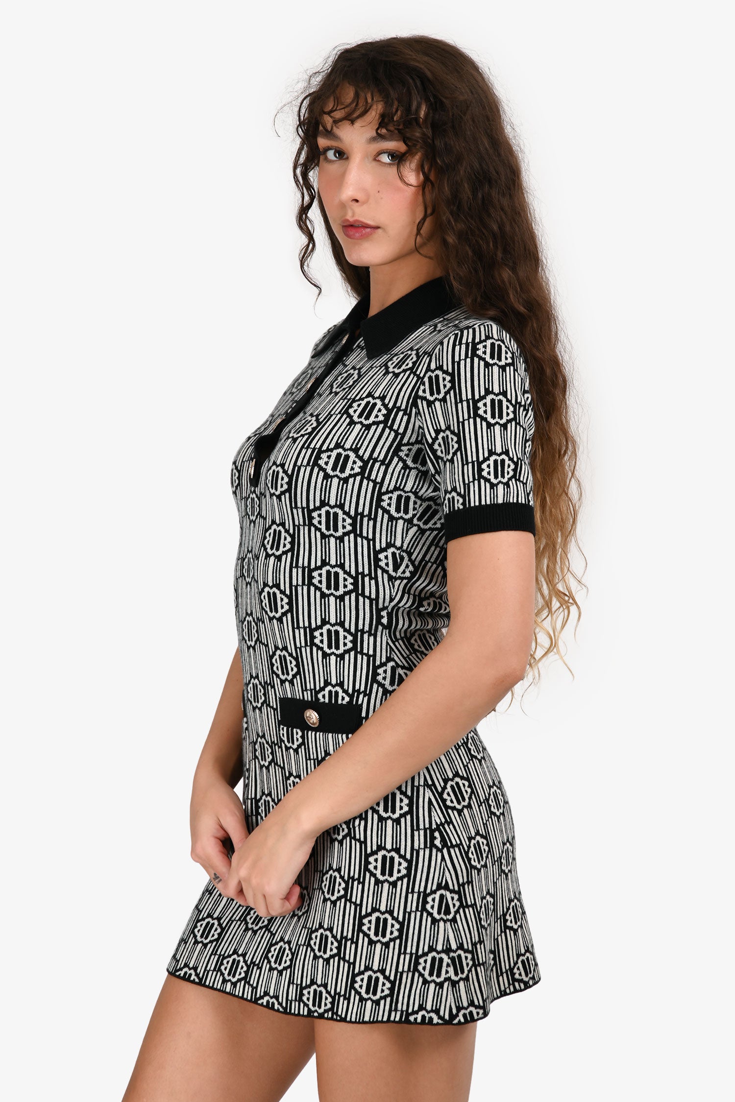 Refresh availabilityMaje Black/White Short Knit Dress. Pull-on. Round neckline. Notch lapels. Half button placket at the front. 2 exterior slip pockets with button closure. Gold-tone hardware. Tonal stitching.
