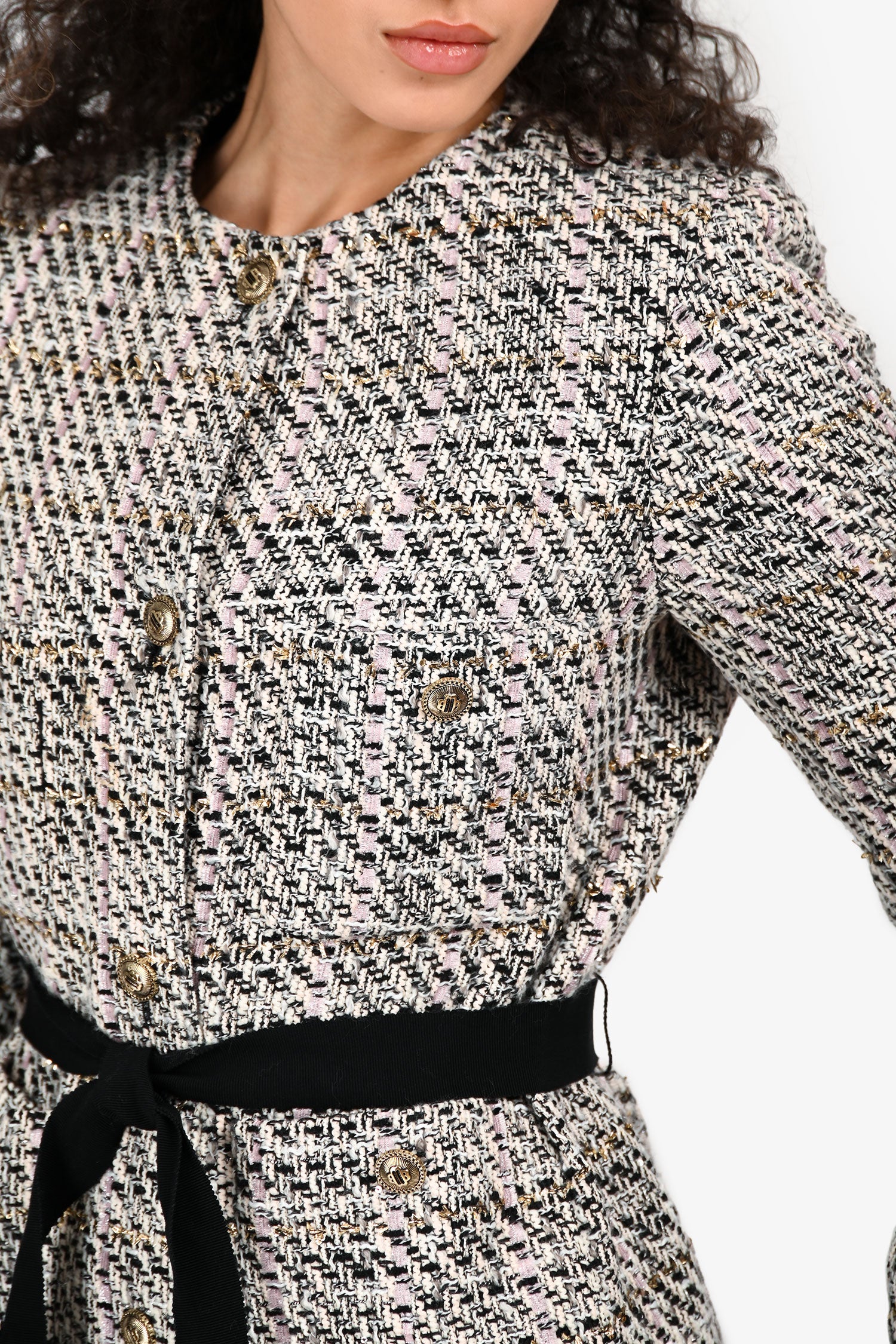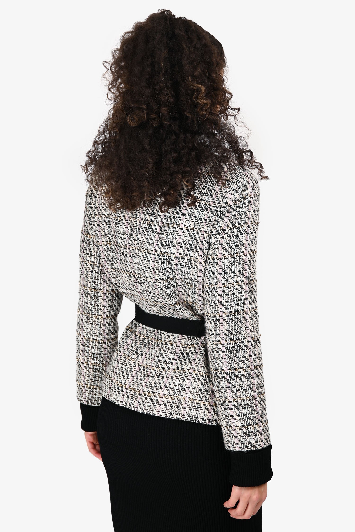Maje Black/White/Pink Belted Tweed Jacket Size 36