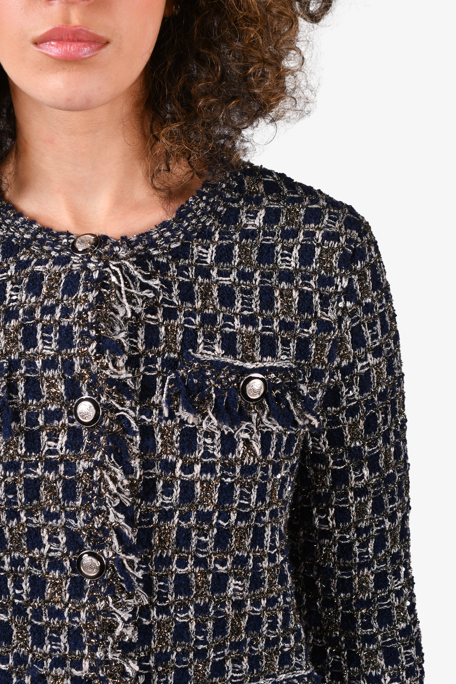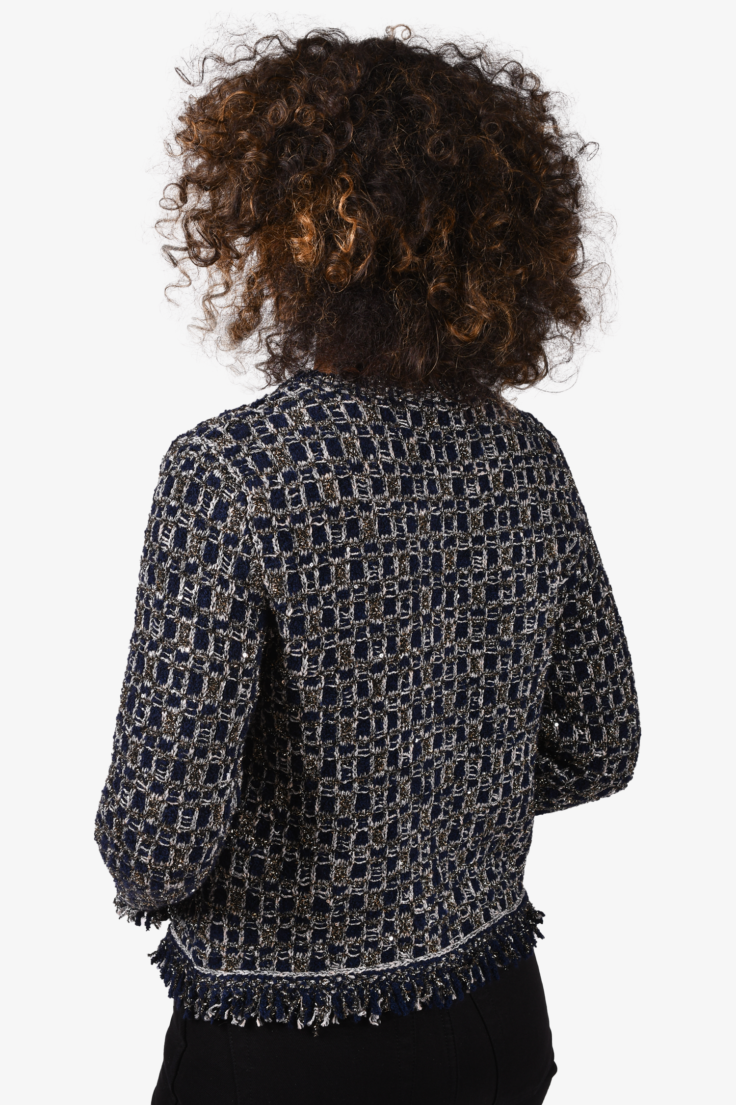 Maje Blue/Black Metallic Tweed Jacket Size 1