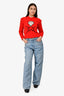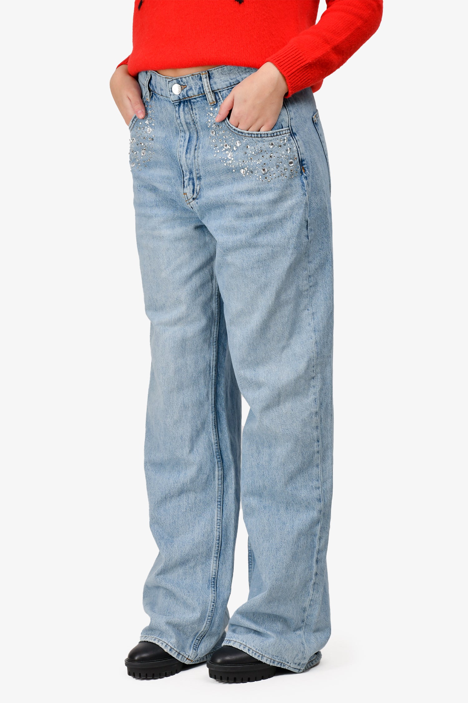 Maje Blue Denim Crystal Embellished Wide Leg Jeans Size 42
