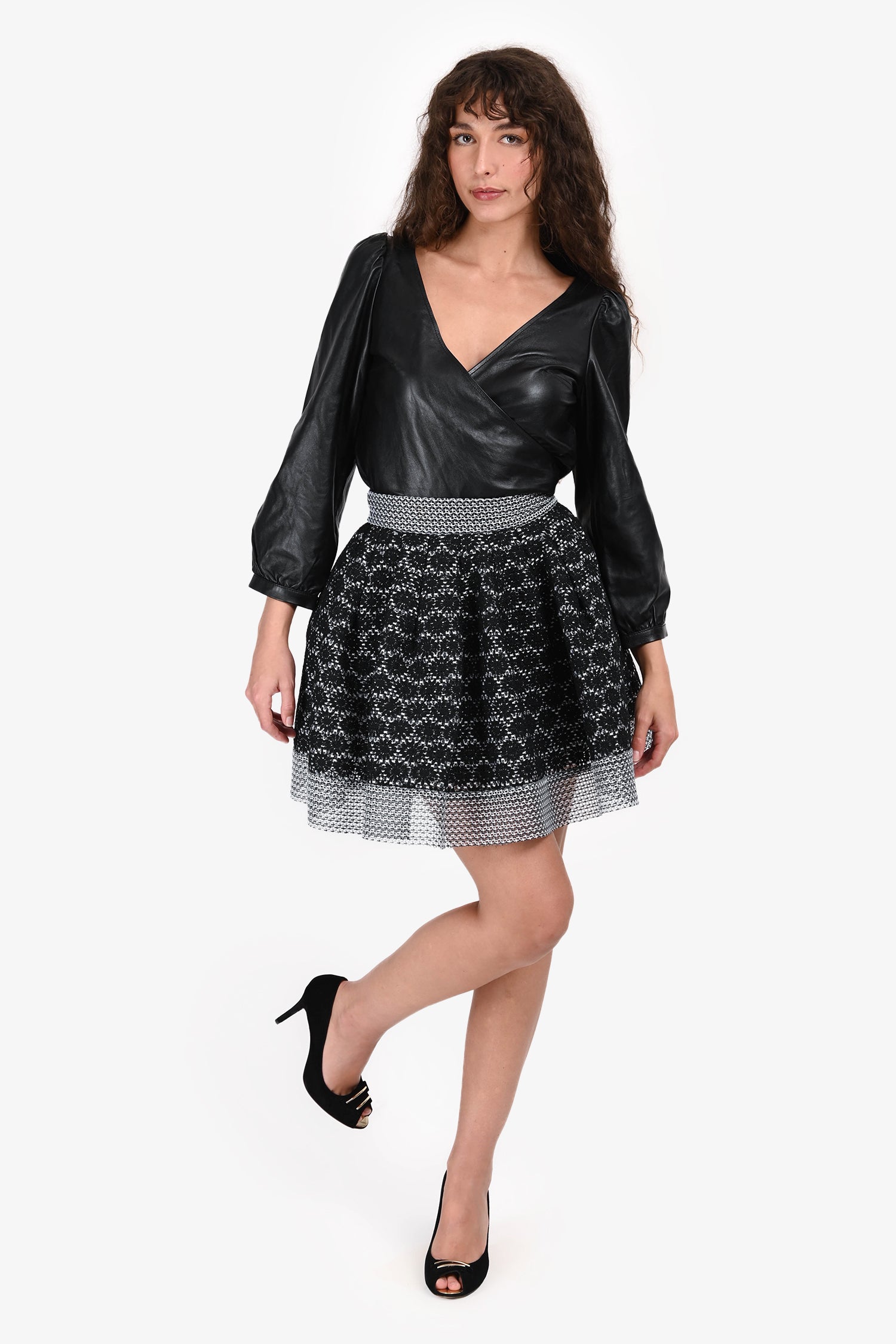 Maje Blue Tweed Perforated A-Line Puff Skirt Size 1