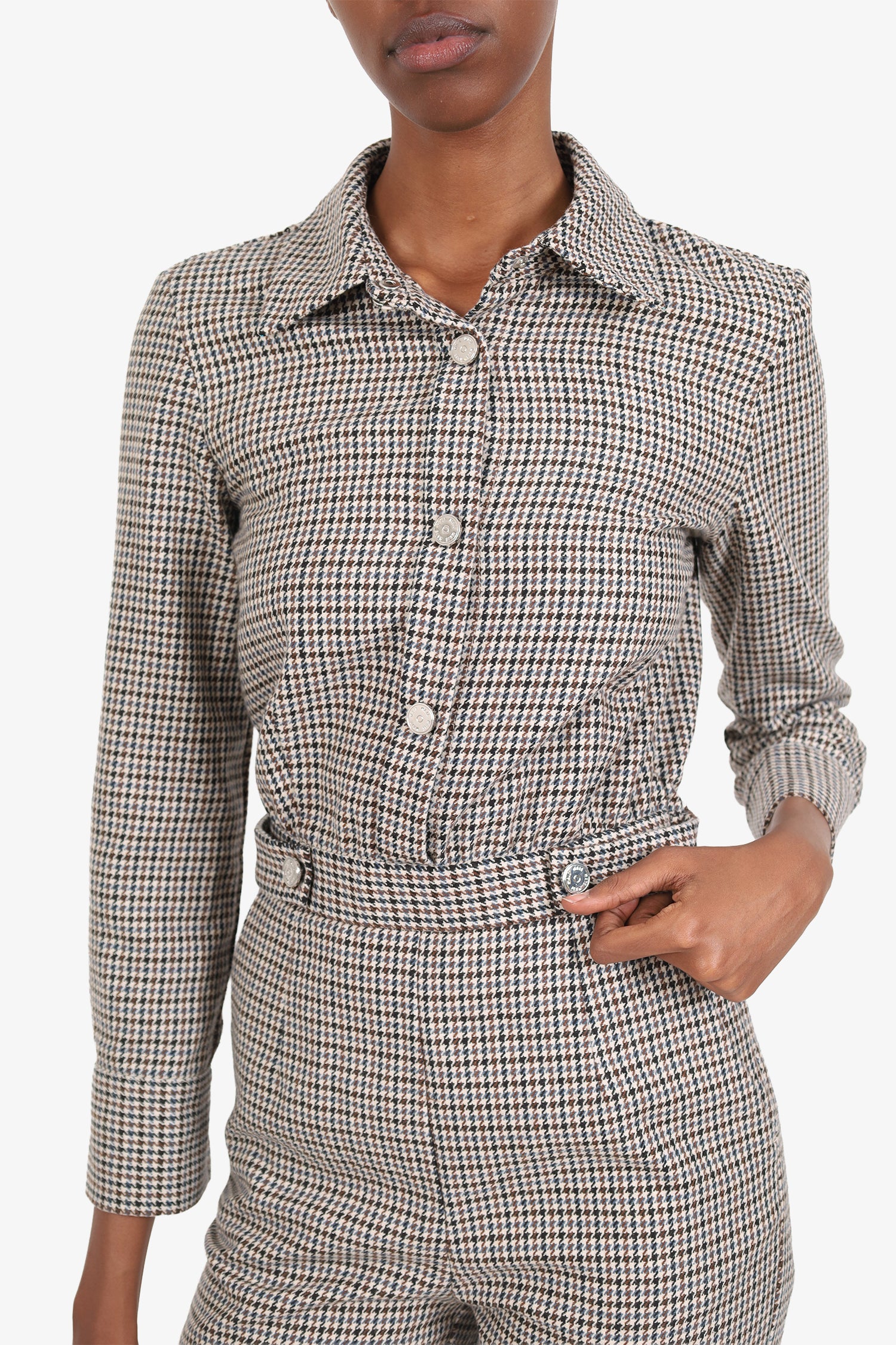 Maje Brown/White Houndstooth Jumpsuit Size 34