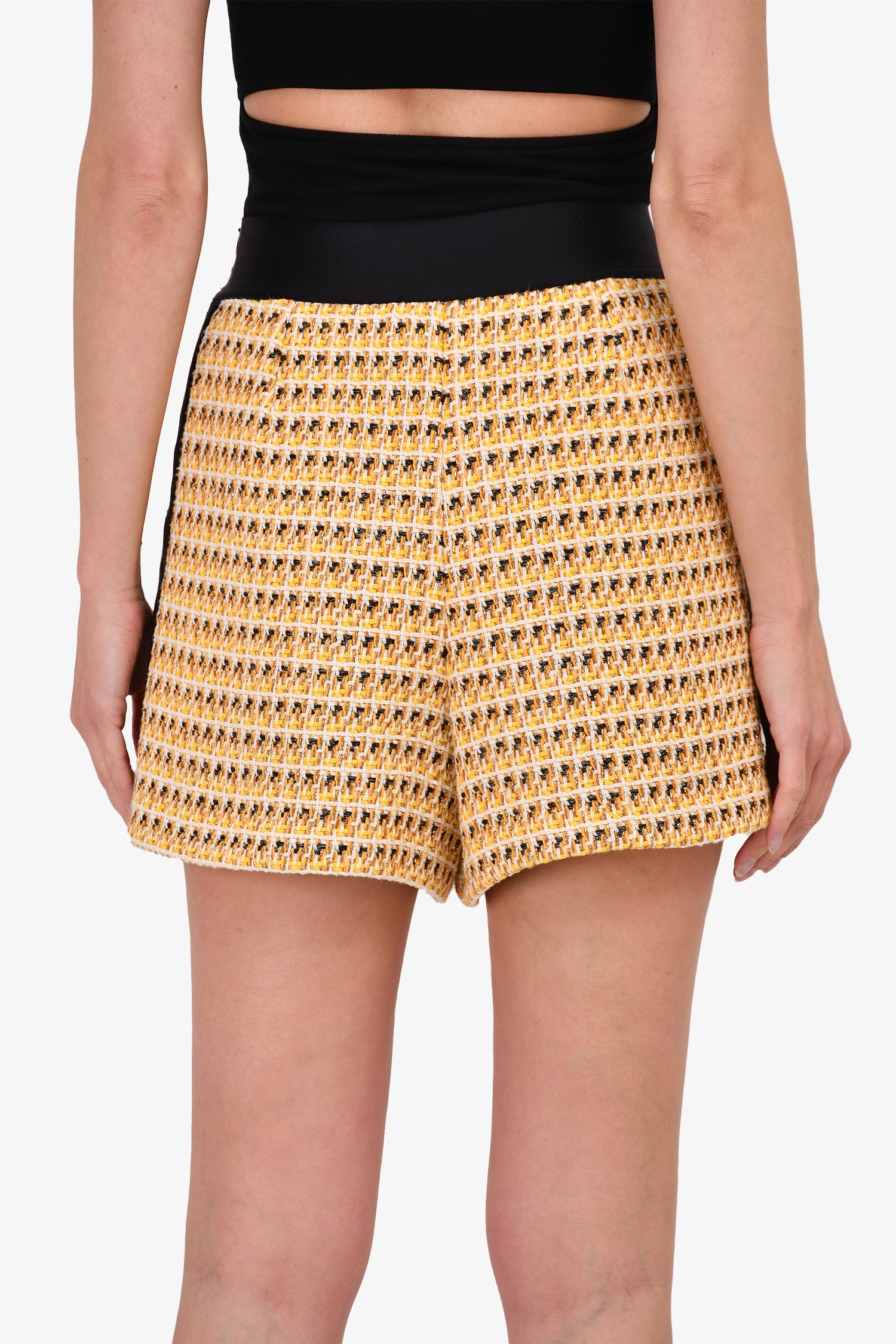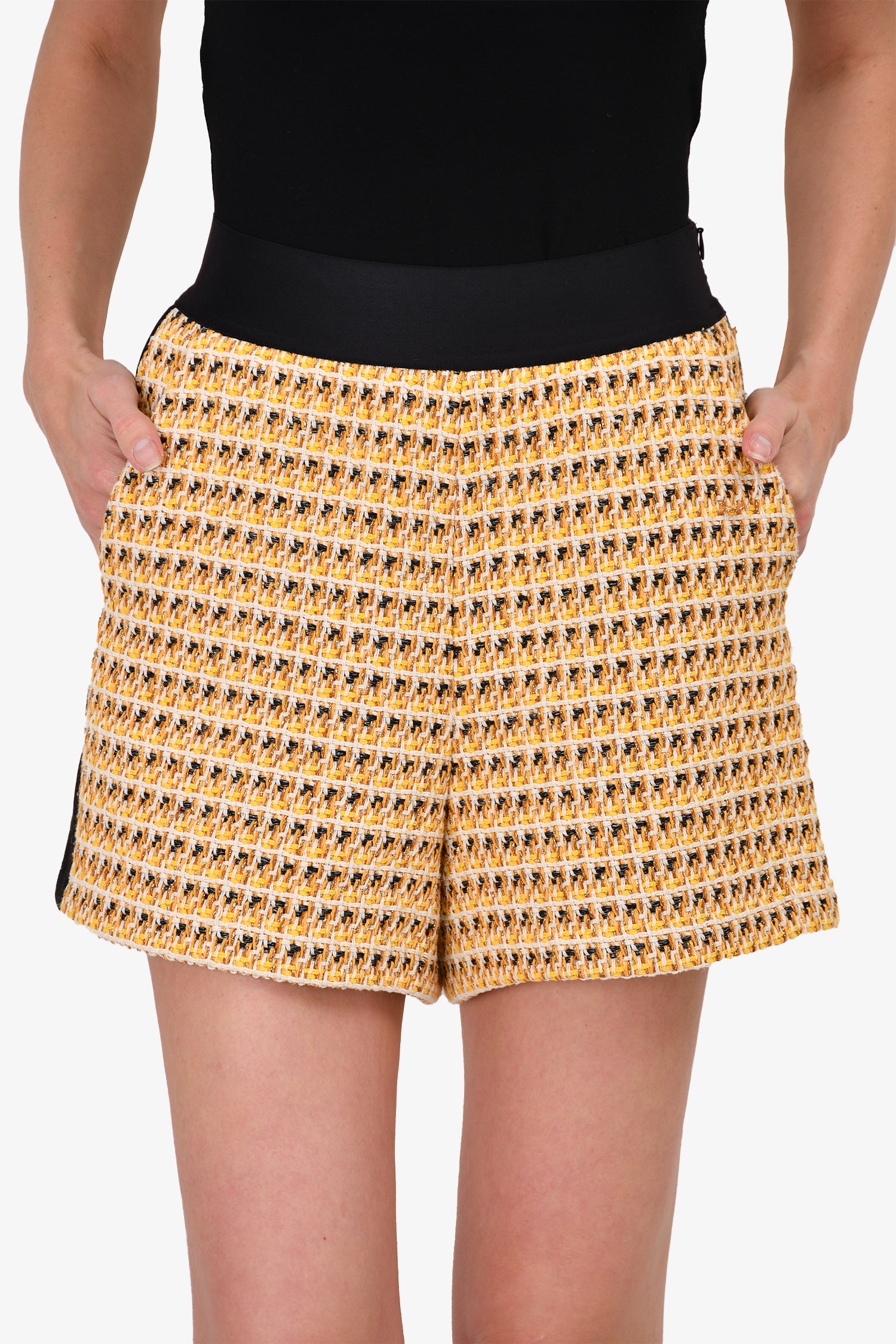 Refresh availabilityMaje Gold Metallic Tweed Shorts. Slip on. 2 front slip pockets. Unlined. Tonal stitching.
